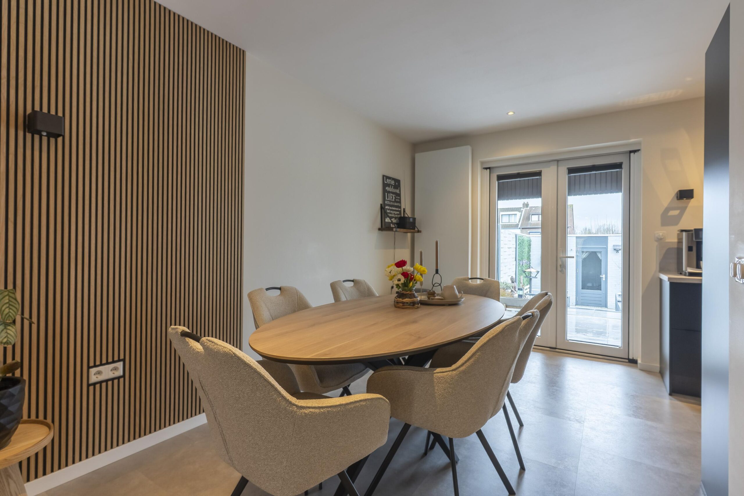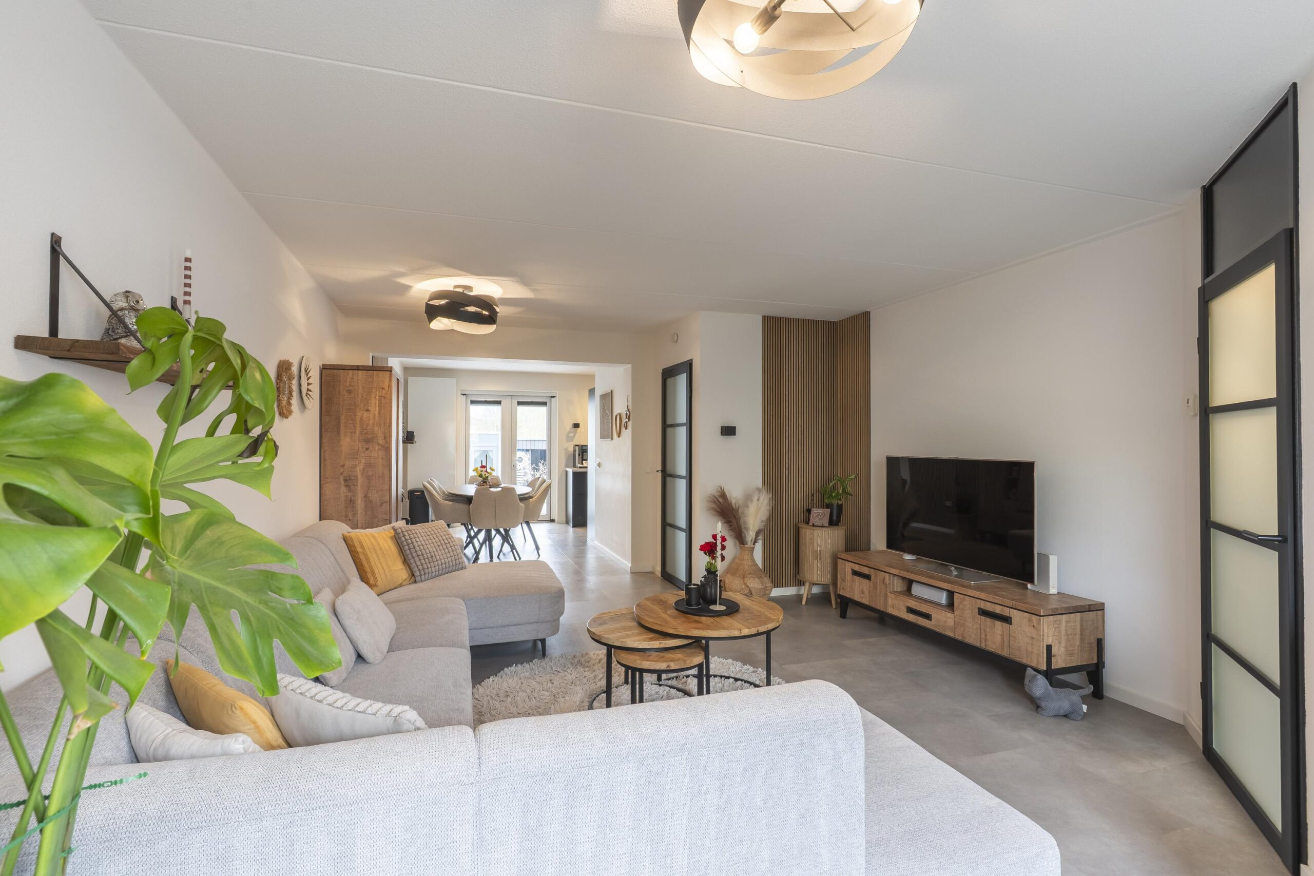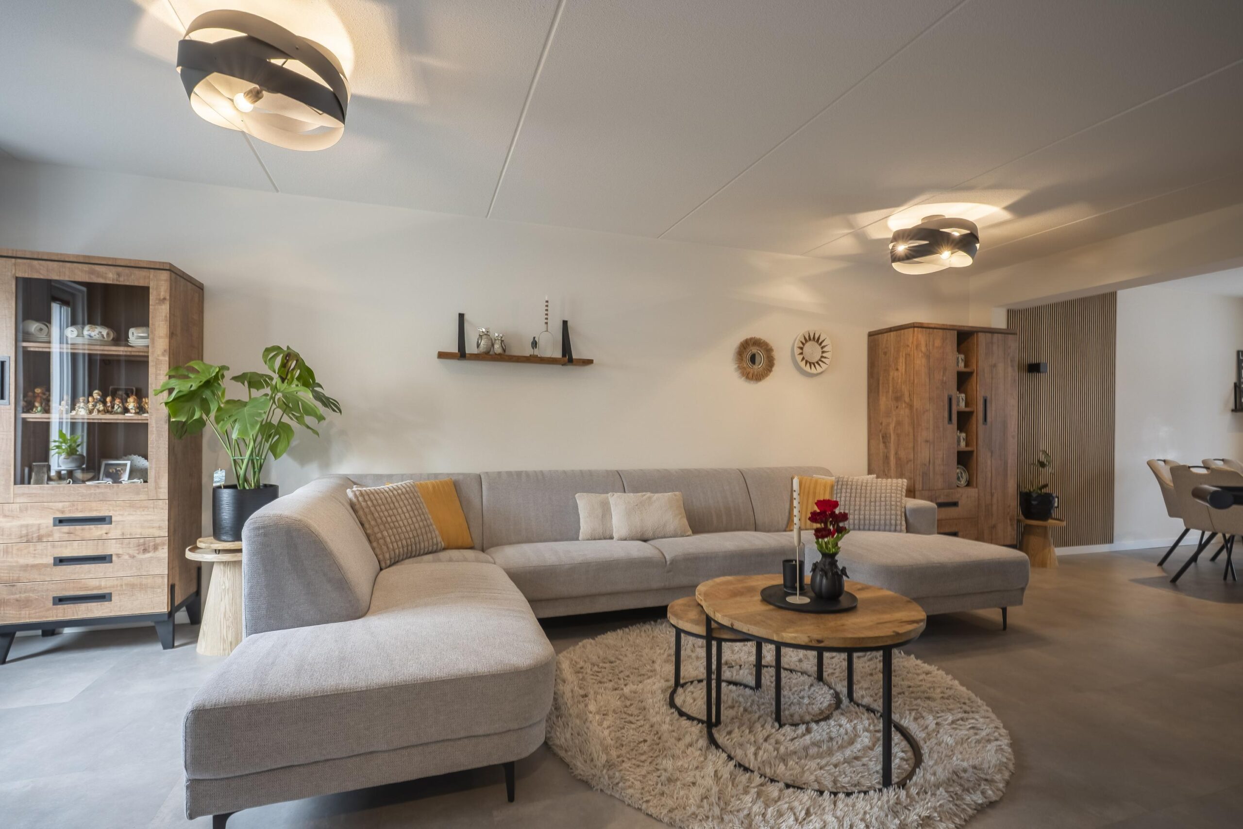 De gehele living is voorzien van een moderne pvc-vloer.