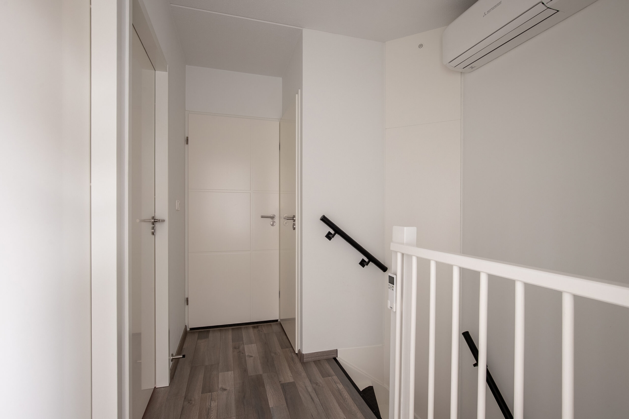 Op de overloop bevindt zich airconditioning en heb je toegang tot drie goed afgewerkte slaapkamers van respectievelijk: