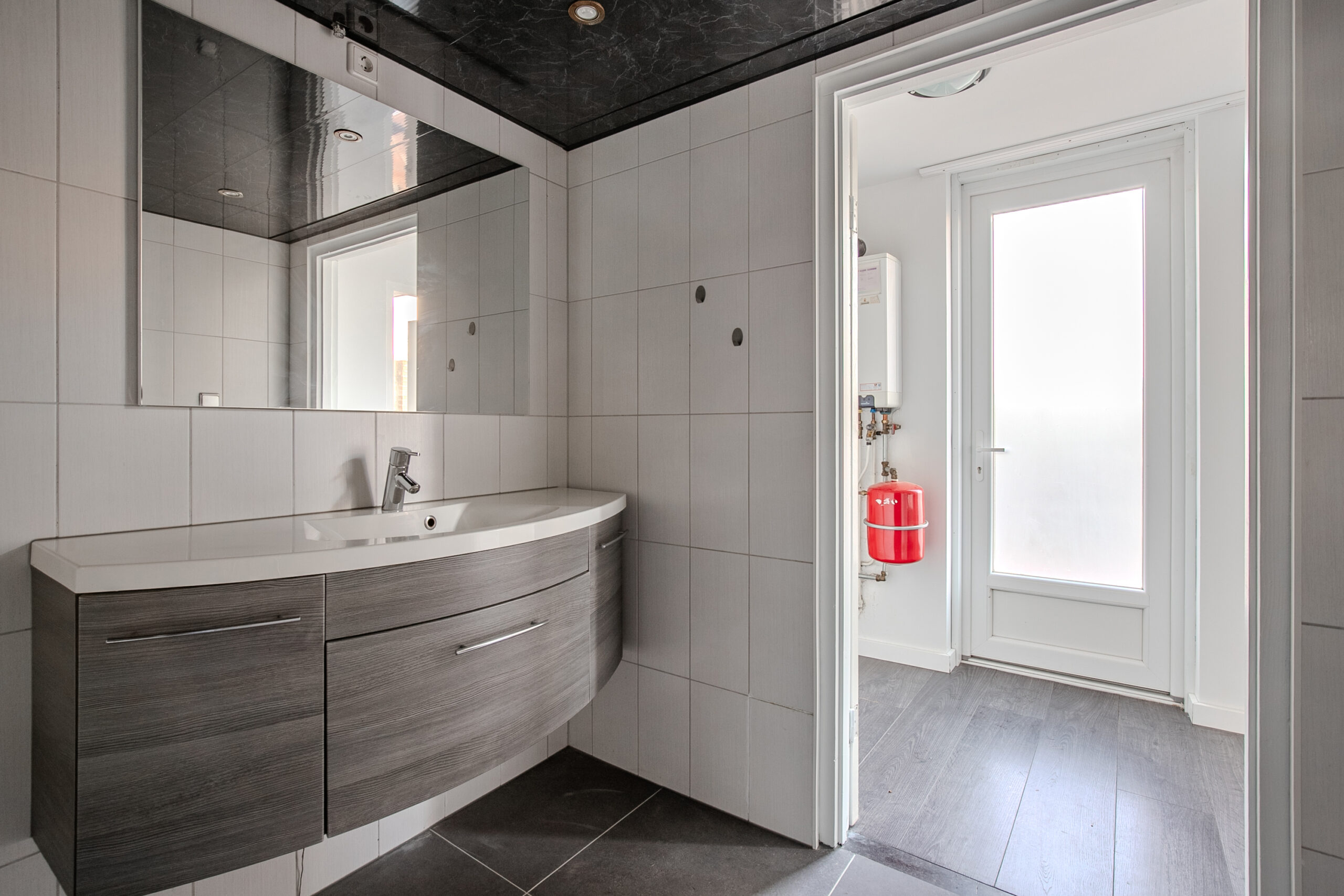 Aansluitend aan de keuken ligt de praktische bijkeuken/wasruimte, met aansluitpunten voor witgoedapparatuur en de huur-cv-ketel (Intergas, bwj. 2011). Vanuit deze ruimte is tevens de tuin bereikbaar middels een aparte loopdeur.
