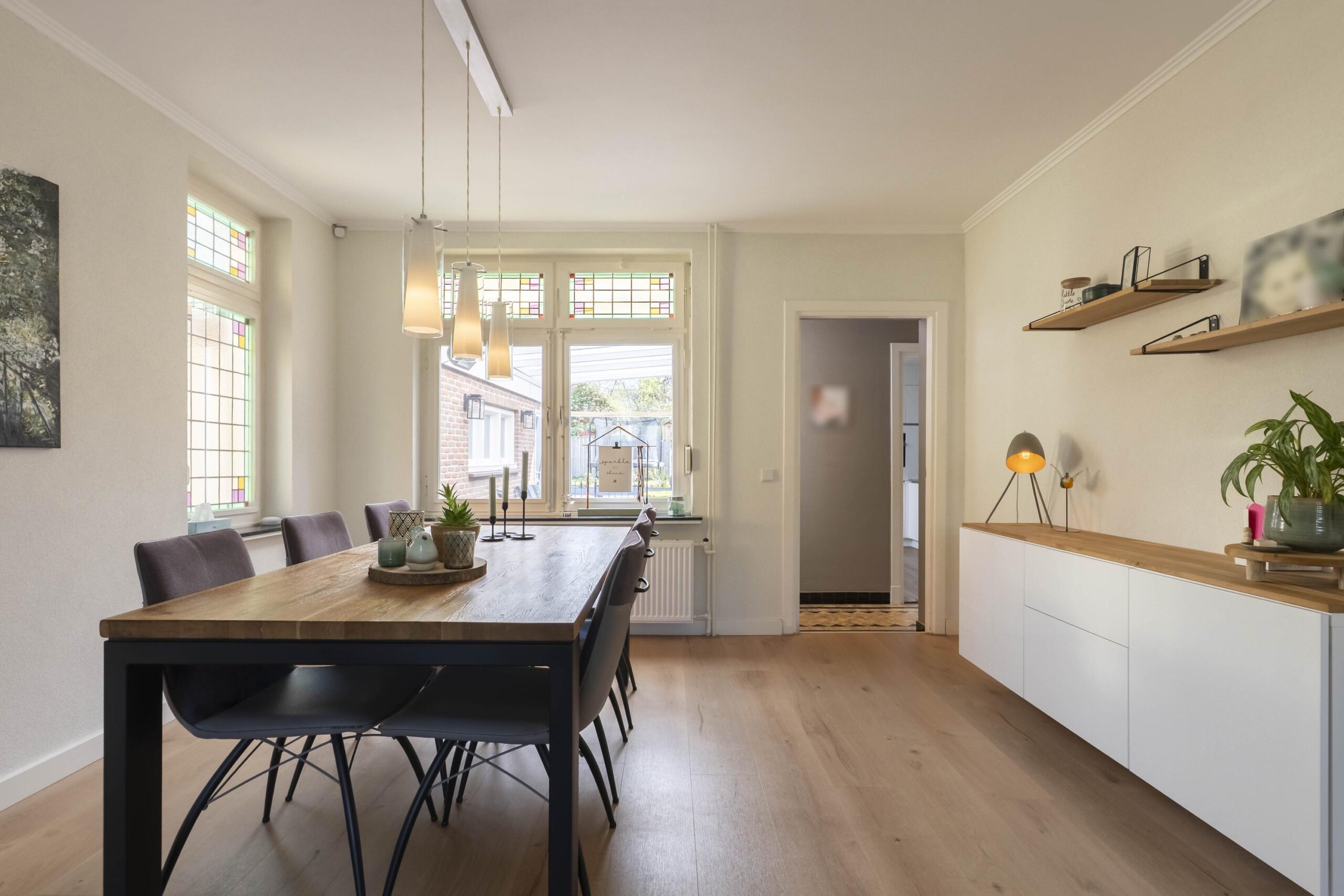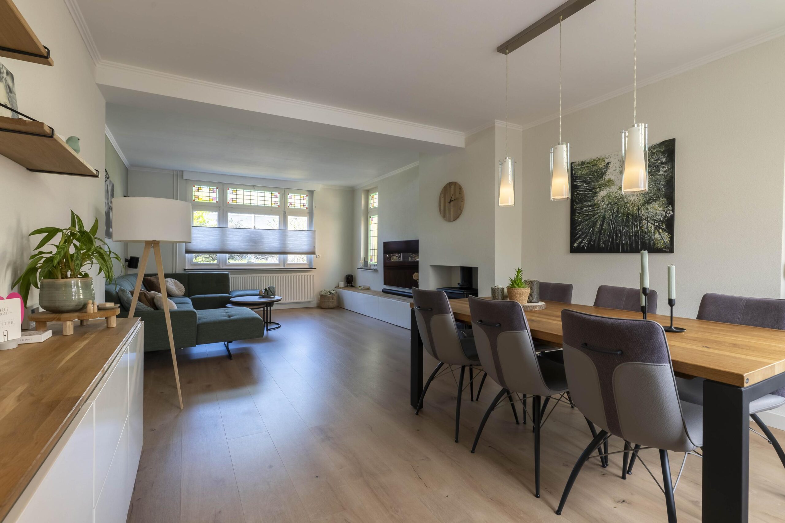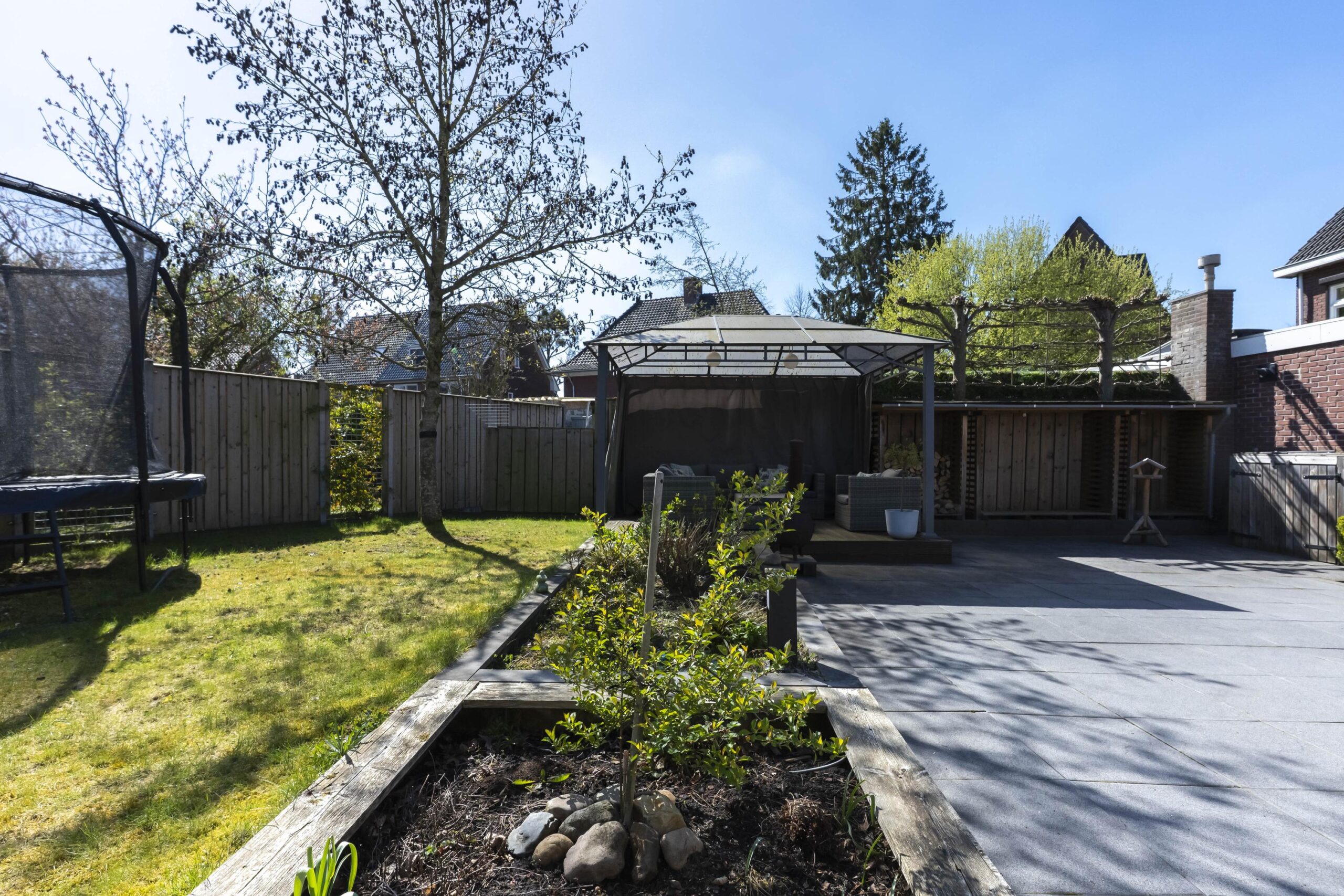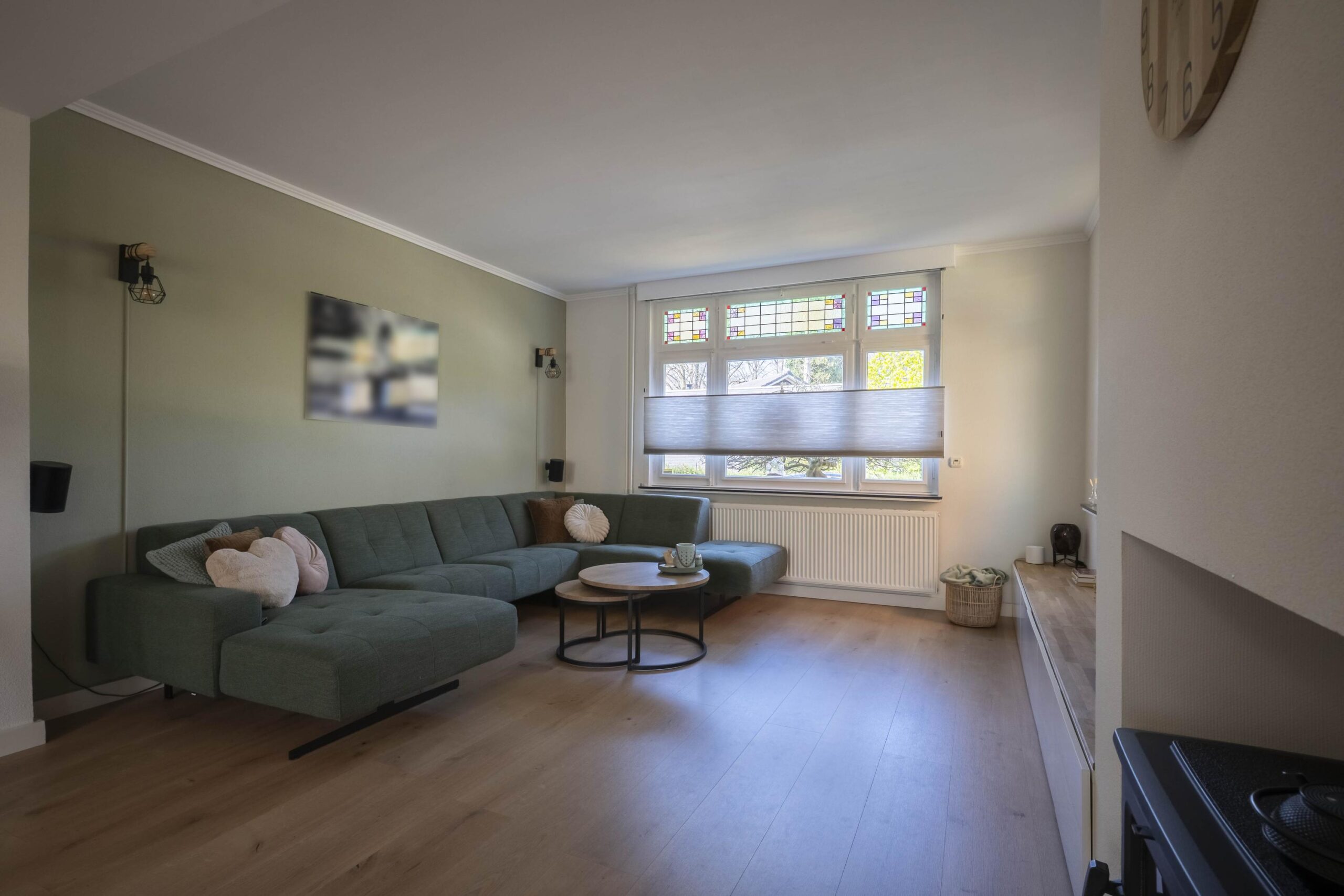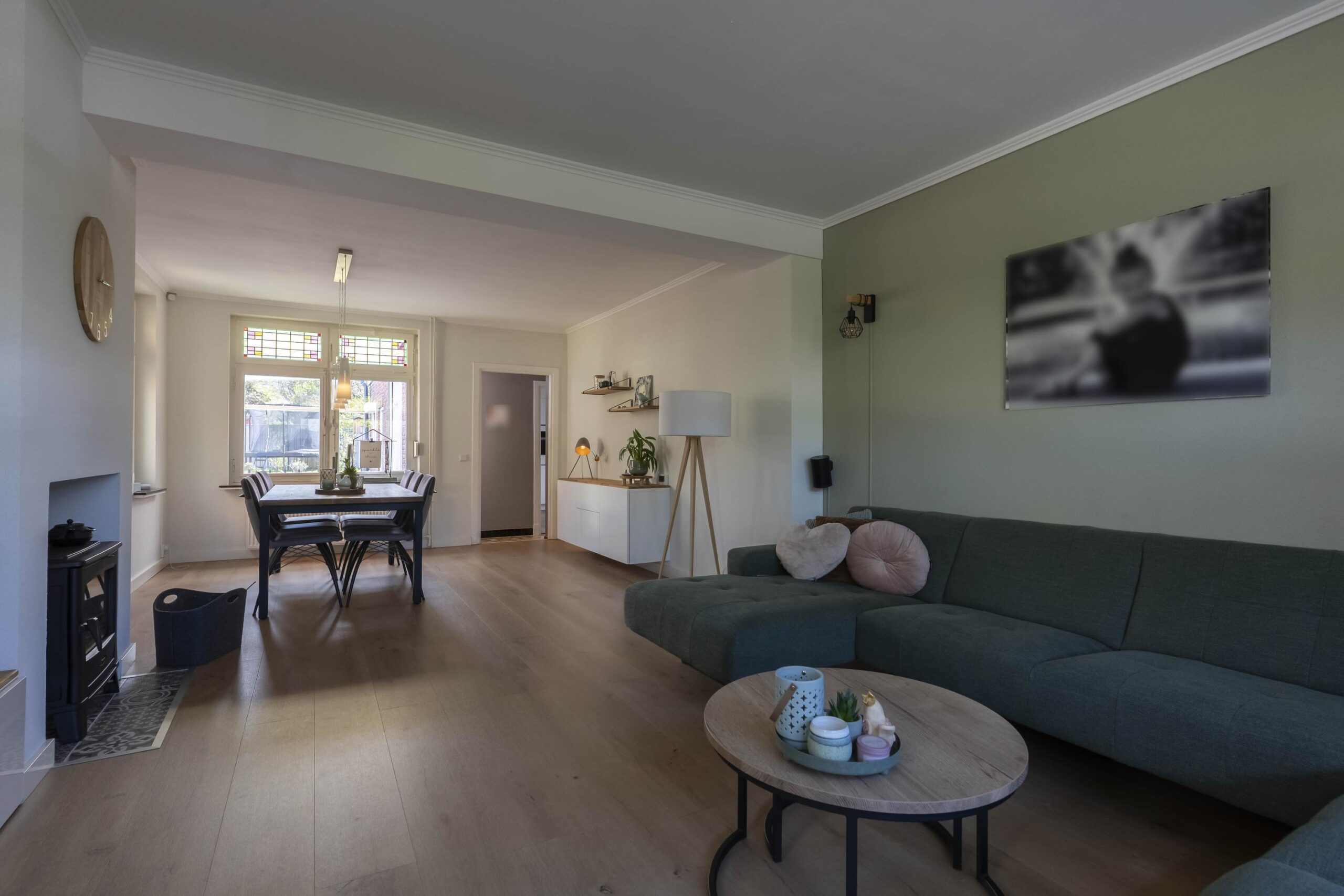 Voortuin, oprit, entree, hal met authentieke vloer, stijlvol trappenhuis en garderobekast. De woonkamer (8,2 x 4,0m) is ruim met mogelijkheid tot een zit- en eetgedeelte en tevens een schouw met kachel, een fraaie laminaatvloer en glas-in-lood raampartijen. In de aanbouw ligt de gesloten leefkeuken (3,4 x 3,1 m) met PVC-vloer en deze is ingericht met een moderne keukeninstallatie (bj. 2022) voorzien van de navolgende apparatuur; inductie-kookplaat, een downdraft-afzuigsysteem, een combi-oven/magnetron, koelkast, vaatwasser en quoocker. Vanuit de keuken is de bijkeuken te bereiken (3,3 x 2,2m) met een kastenwand op maat en C.V.-installatie. Tevens is hier de in 2022 gerealiseerde toiletruimte gelegen met zwevend toilet en fonteintje. De zonnige tuin is geheel omsloten met schuttingen en biedt optimale privacy door middel van veel groen, gazon en bestrating. De tuin heeft meerdere overdekte terrassen waaronder een leuke loungehoek en is kindvriendelijk aangelegd. De vrijstaande garage (6,5 x 3,6m) heeft een electrisch bedienbare sectionaal poort. De oprit is recentelijk nieuw bestraat.