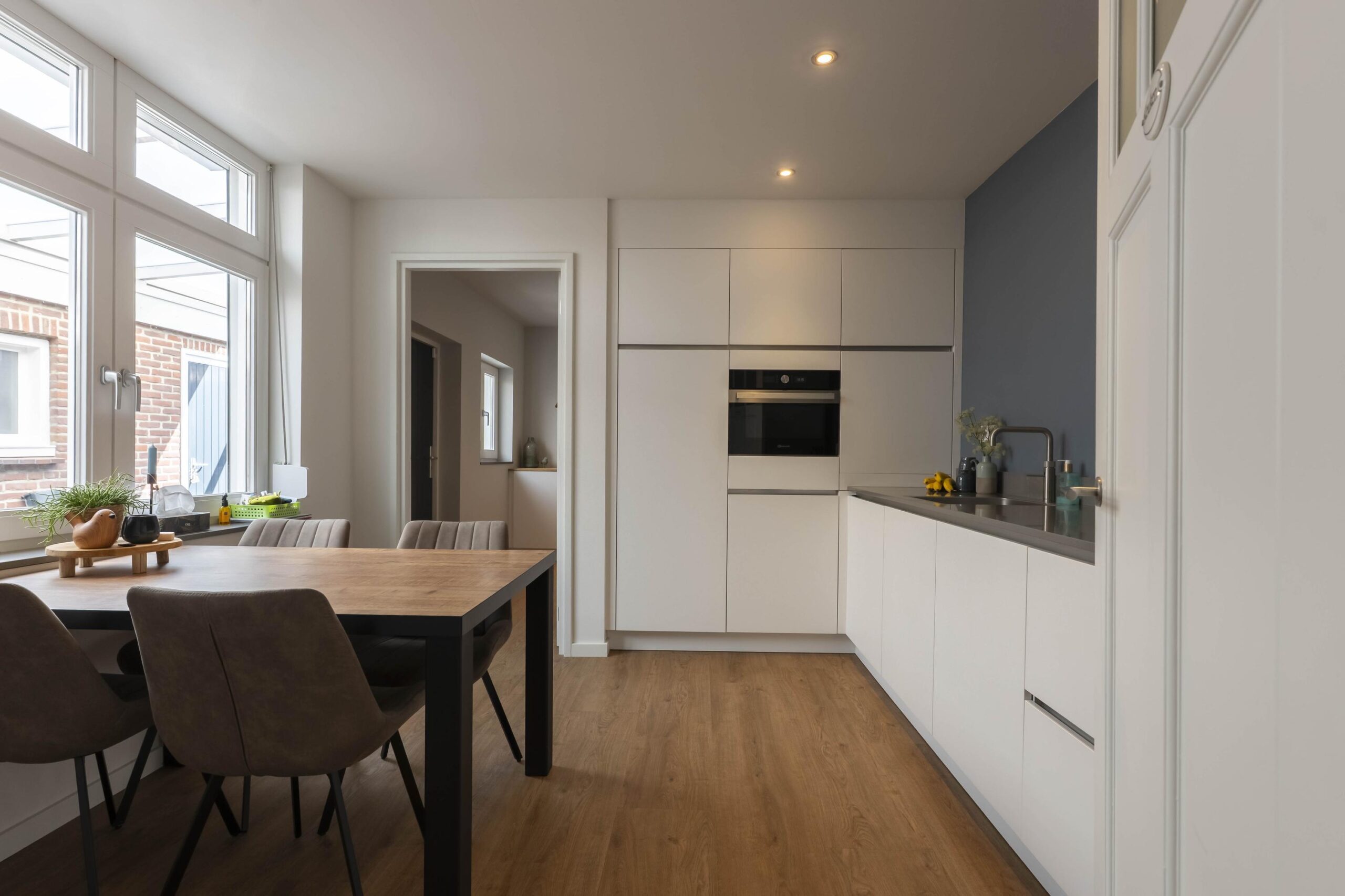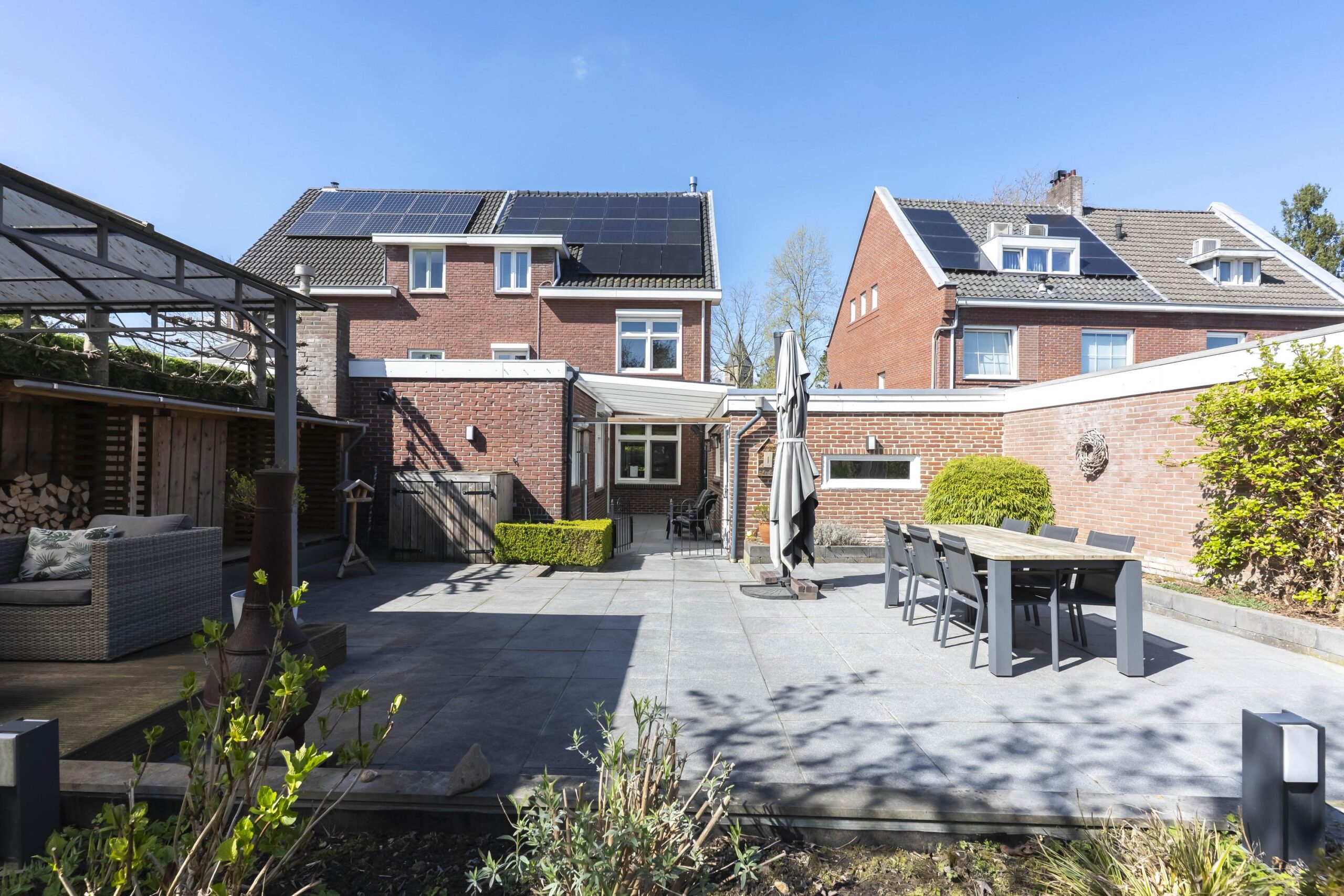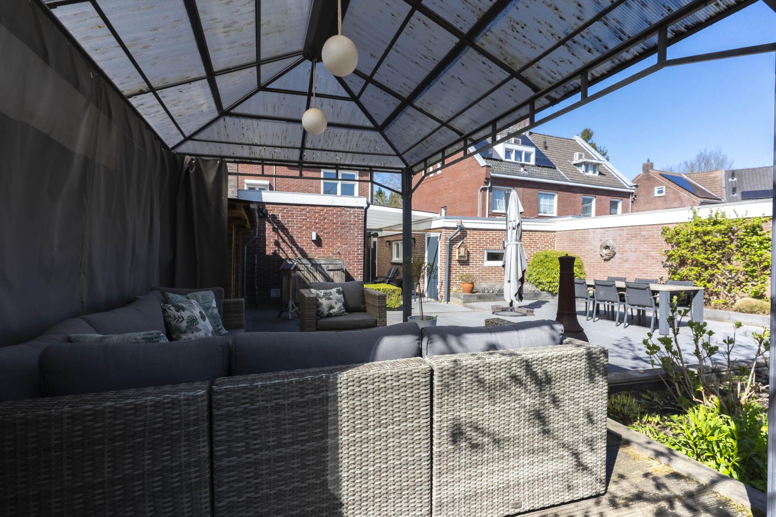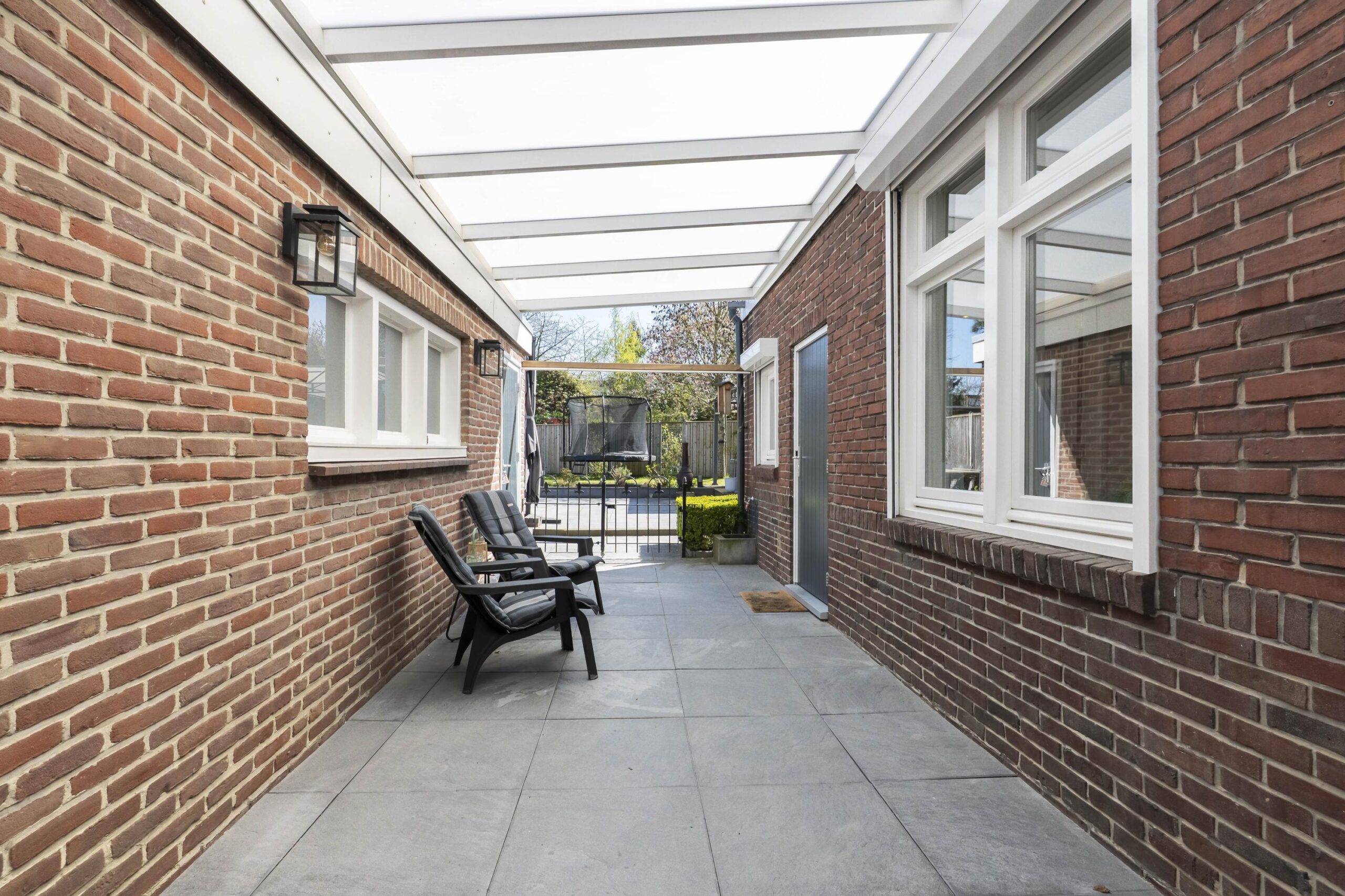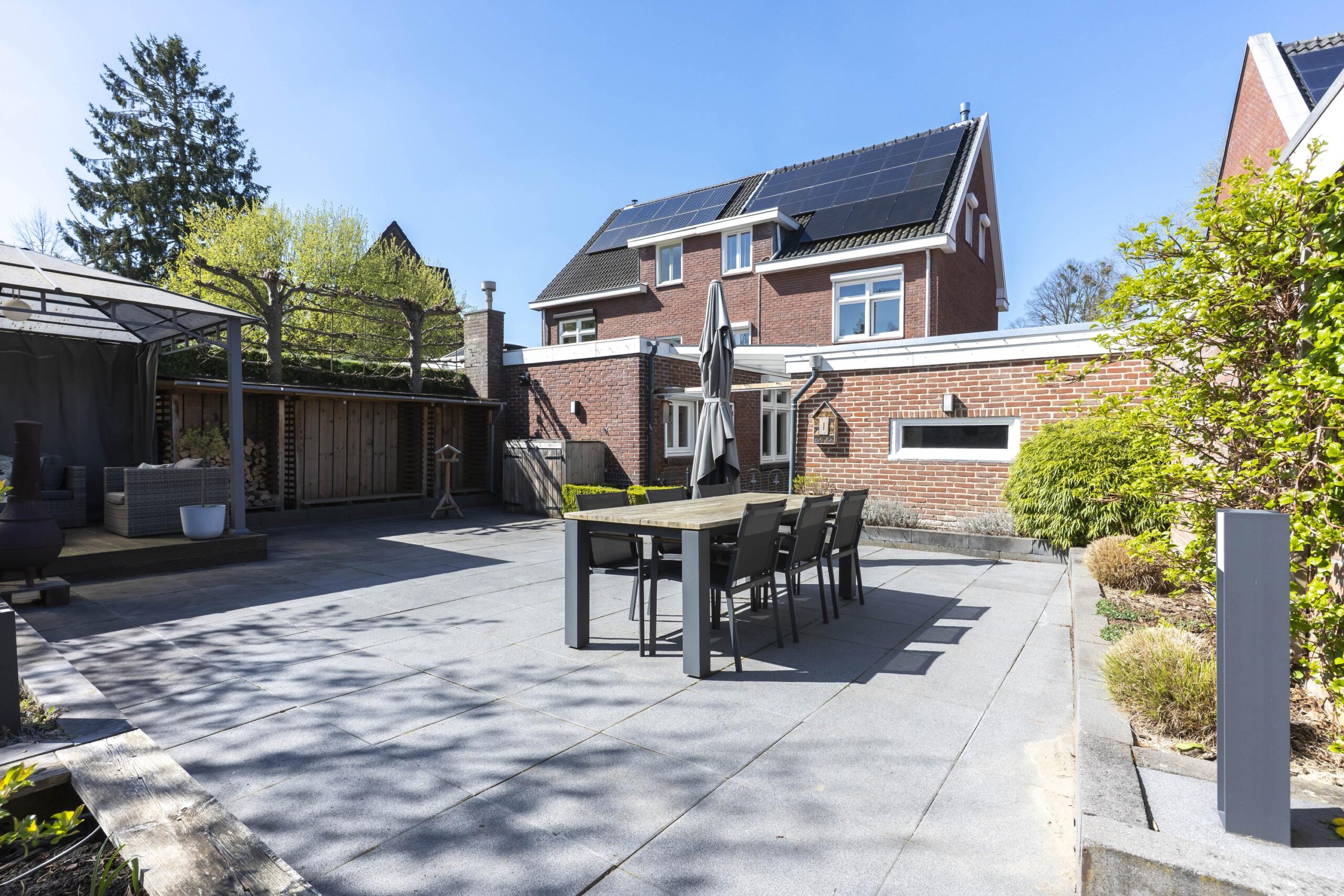Voortuin, oprit, entree, hal met authentieke vloer, stijlvol trappenhuis en garderobekast. De woonkamer (8,2 x 4,0m) is ruim met mogelijkheid tot een zit- en eetgedeelte en tevens een schouw met kachel, een fraaie laminaatvloer en glas-in-lood raampartijen. In de aanbouw ligt de gesloten leefkeuken (3,4 x 3,1 m) met PVC-vloer en deze is ingericht met een moderne keukeninstallatie (bj. 2022) voorzien van de navolgende apparatuur; inductie-kookplaat, een downdraft-afzuigsysteem, een combi-oven/magnetron, koelkast, vaatwasser en quoocker. Vanuit de keuken is de bijkeuken te bereiken (3,3 x 2,2m) met een kastenwand op maat en C.V.-installatie. Tevens is hier de in 2022 gerealiseerde toiletruimte gelegen met zwevend toilet en fonteintje. De zonnige tuin is geheel omsloten met schuttingen en biedt optimale privacy door middel van veel groen, gazon en bestrating. De tuin heeft meerdere overdekte terrassen waaronder een leuke loungehoek en is kindvriendelijk aangelegd. De vrijstaande garage (6,5 x 3,6m) heeft een electrisch bedienbare sectionaal poort. De oprit is recentelijk nieuw bestraat.