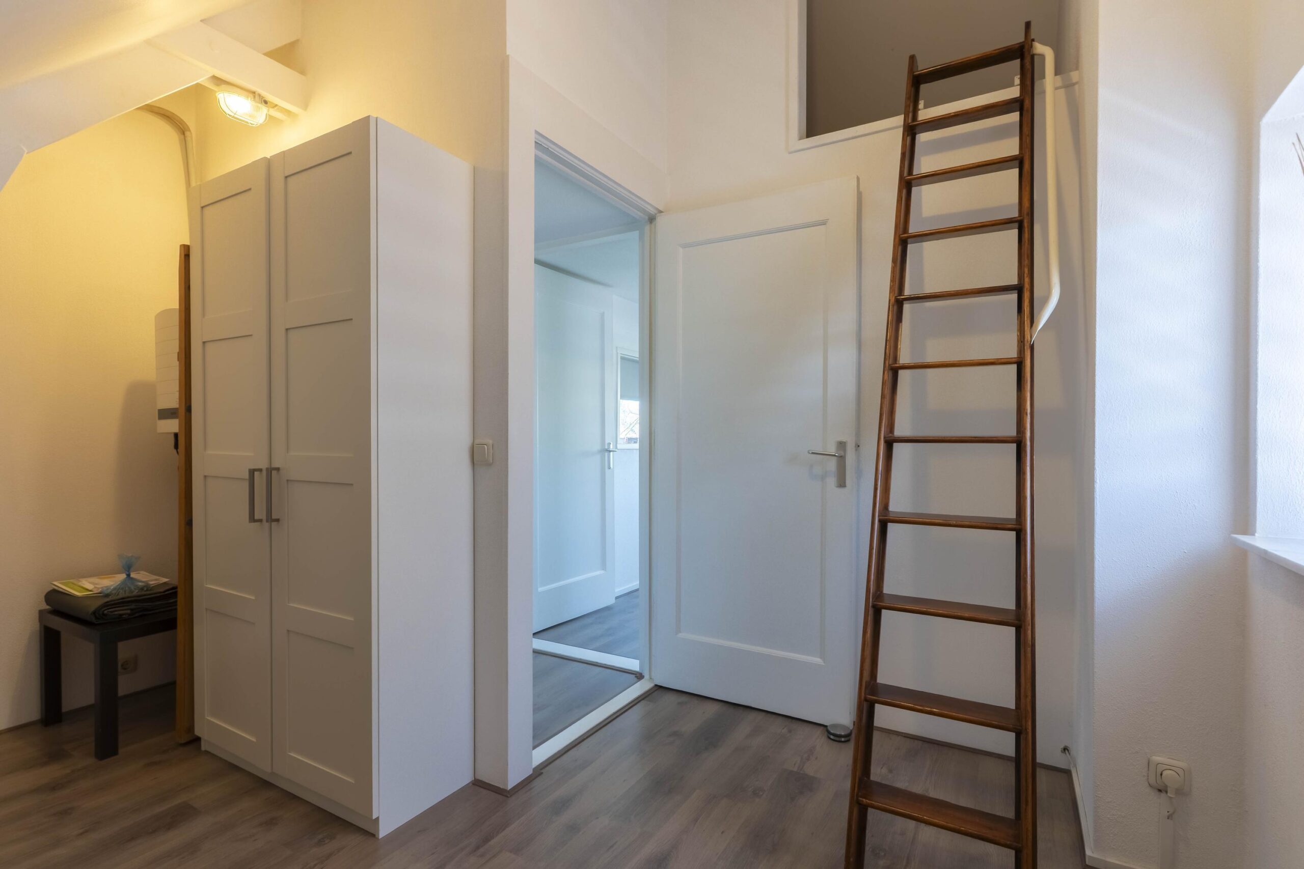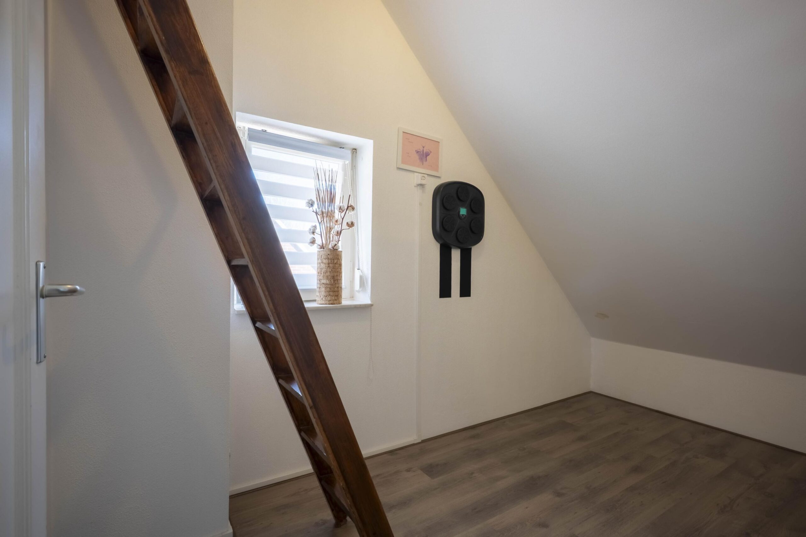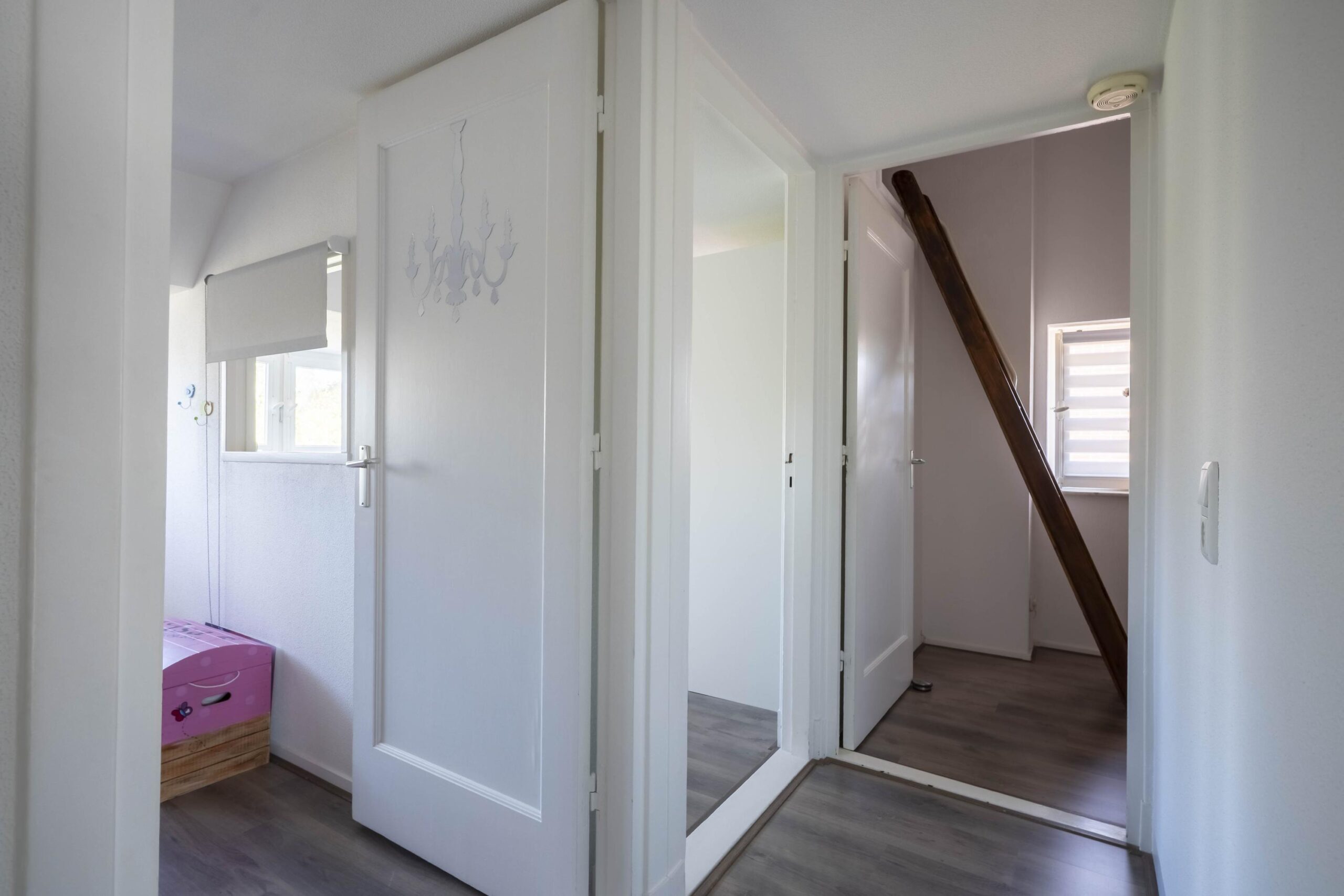 Doorlopend trappenhuis, overloop met toegang tot de slaapkamers uitgebouwd met dakkapel (3,3 x 3,0 m en 3,3 x 3,0 m) en de derde slaapkamer (3,2 x 3,8m), allen met laminaatvloer. De goed afgewerkte vliering/ bergzolder/ vide (ca. 13 m2 vloeropp.) is middels trapladder vanuit de derde slaapkamer te bereiken.