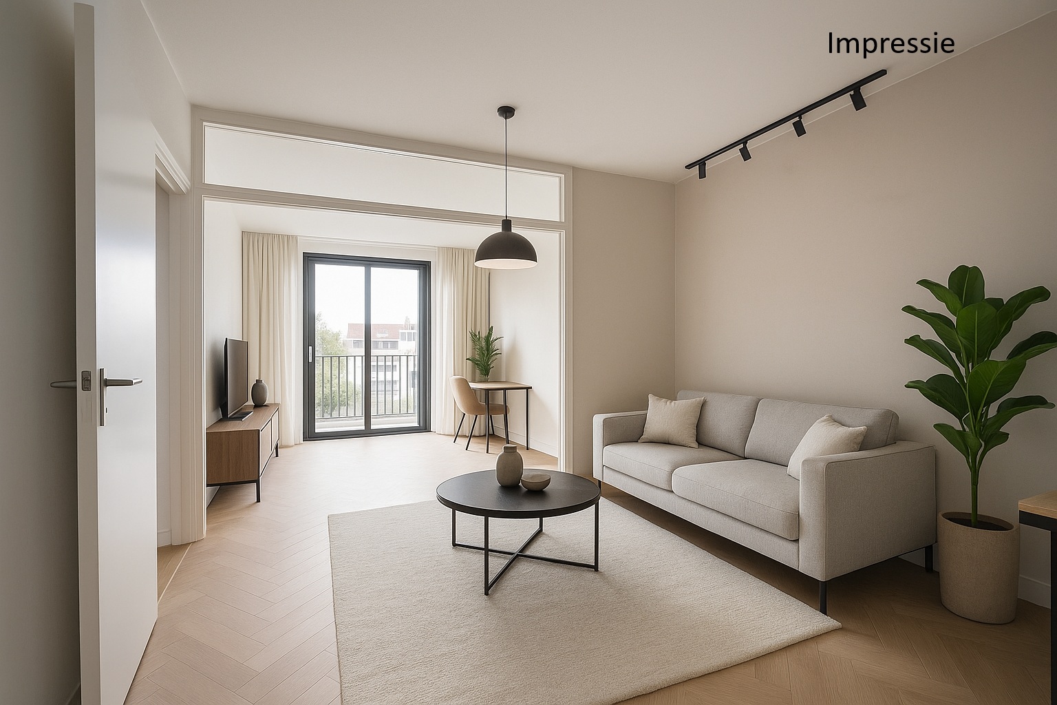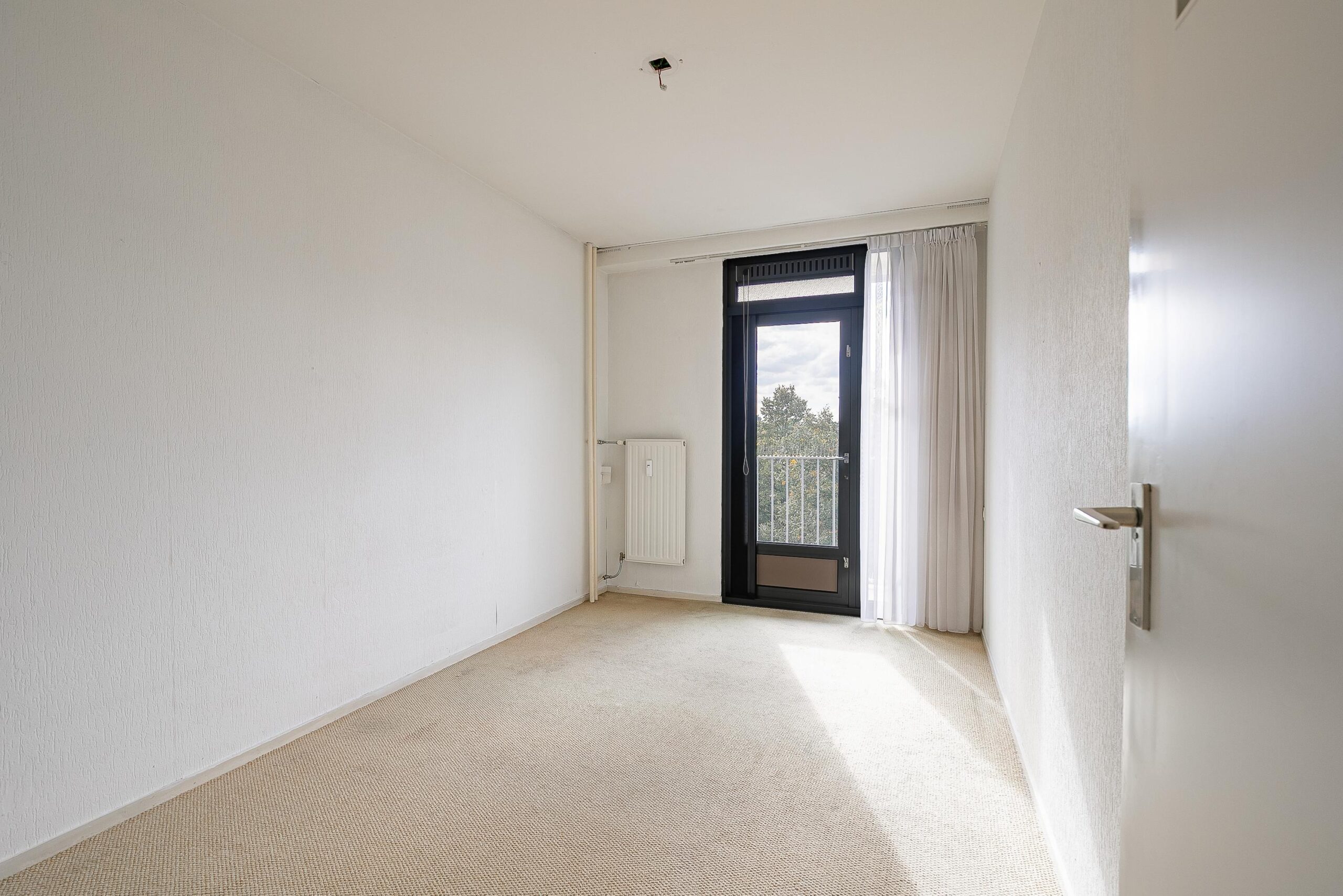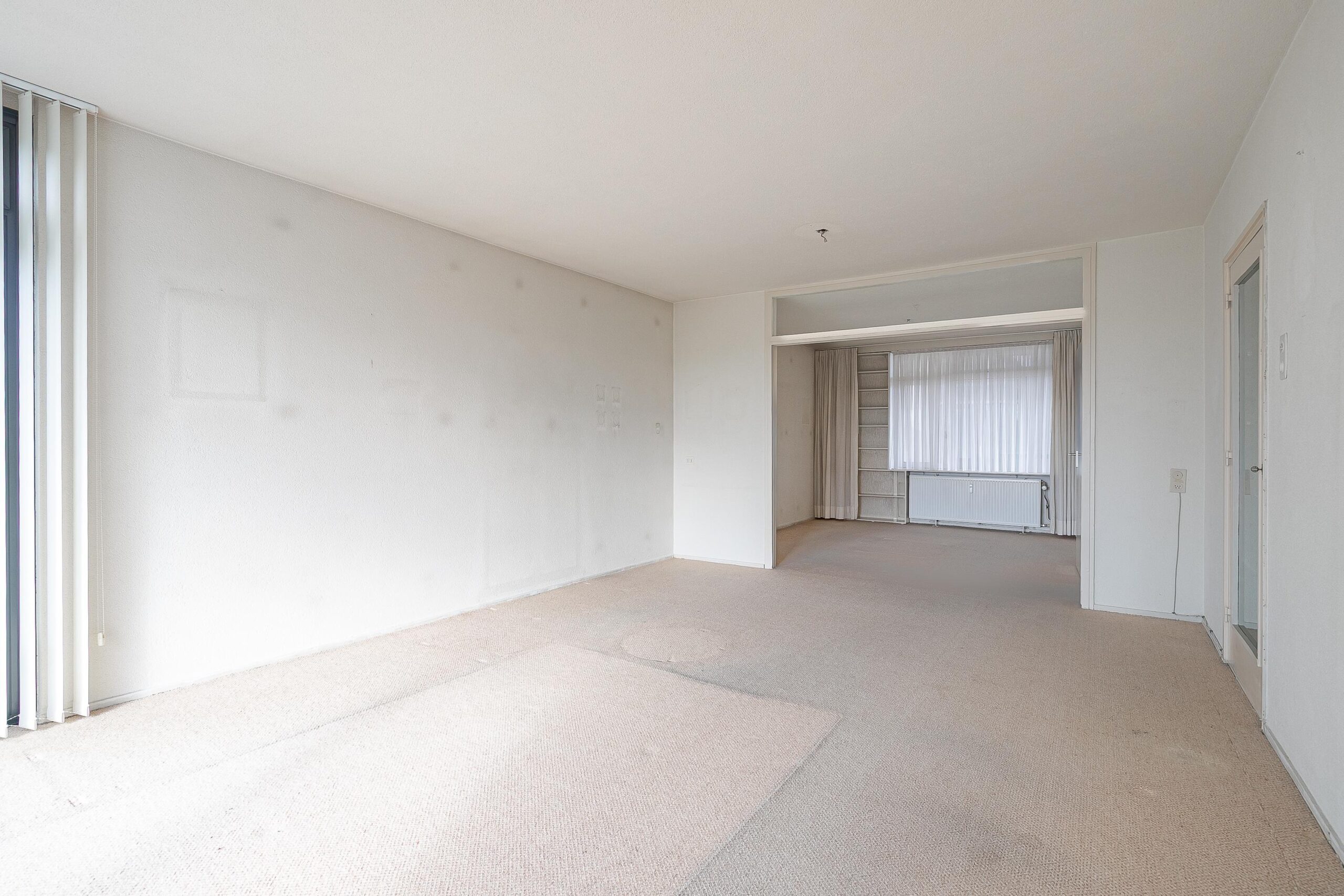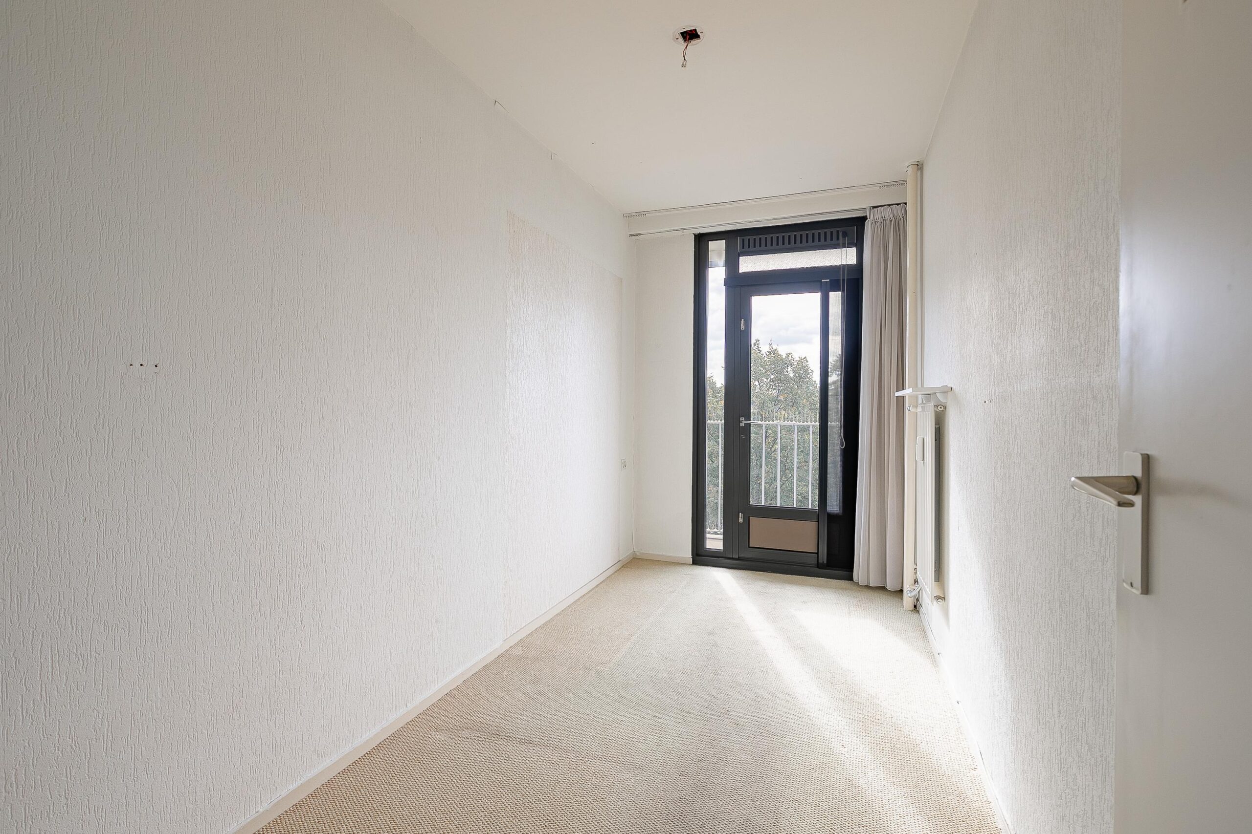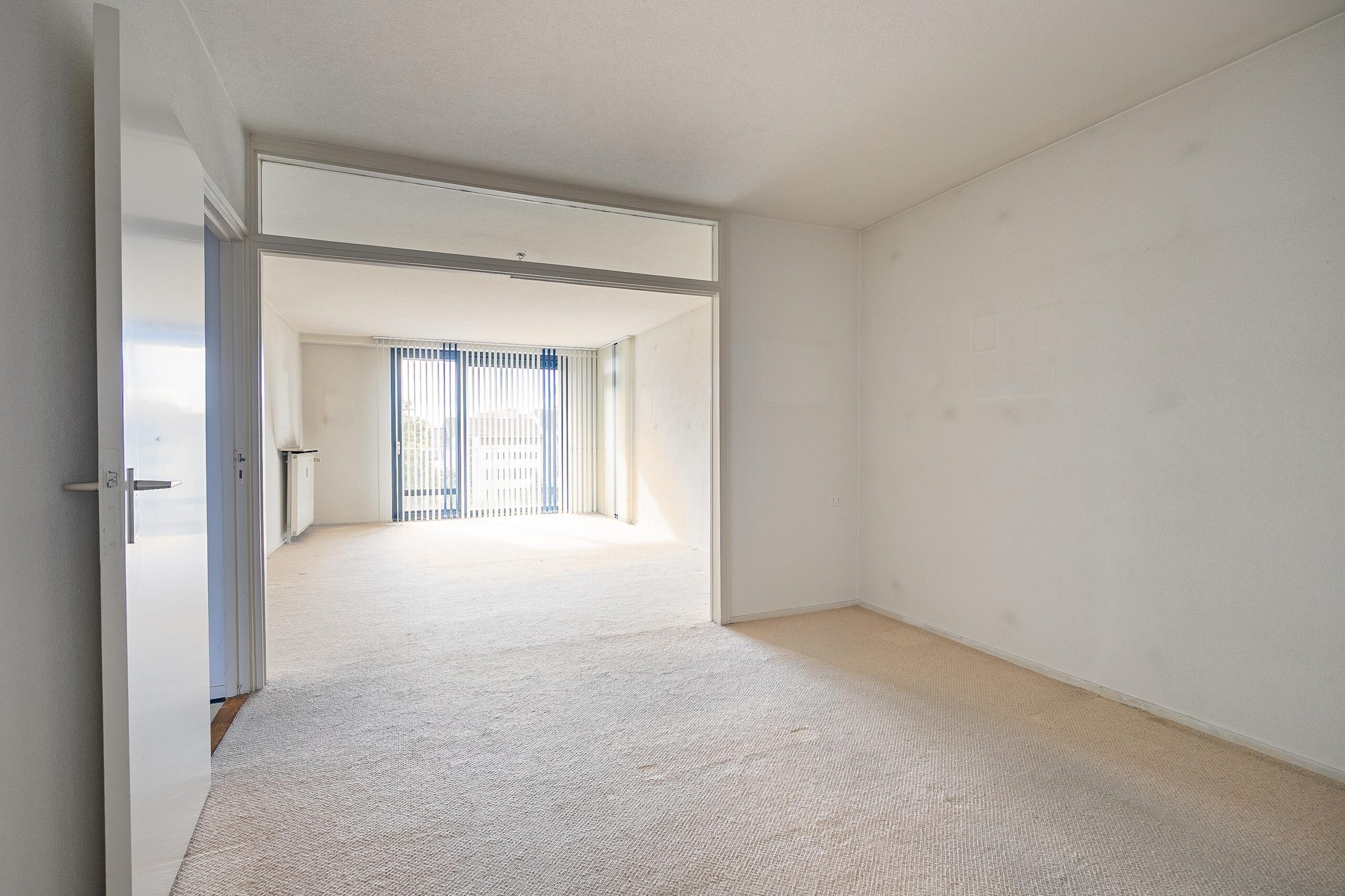 Entree/hal met toegang tot de vertrekken. Ruime woonkamer (totaal ca. 39m²), voorzien van veel lichtinval door de grote raampartijen en toegang tot het grote balkon (ca. 9m²) met zonwering. Vanaf het balkon, gesitueerd op het westen, heeft men een fantastisch vrij uitzicht en ultieme privacy.