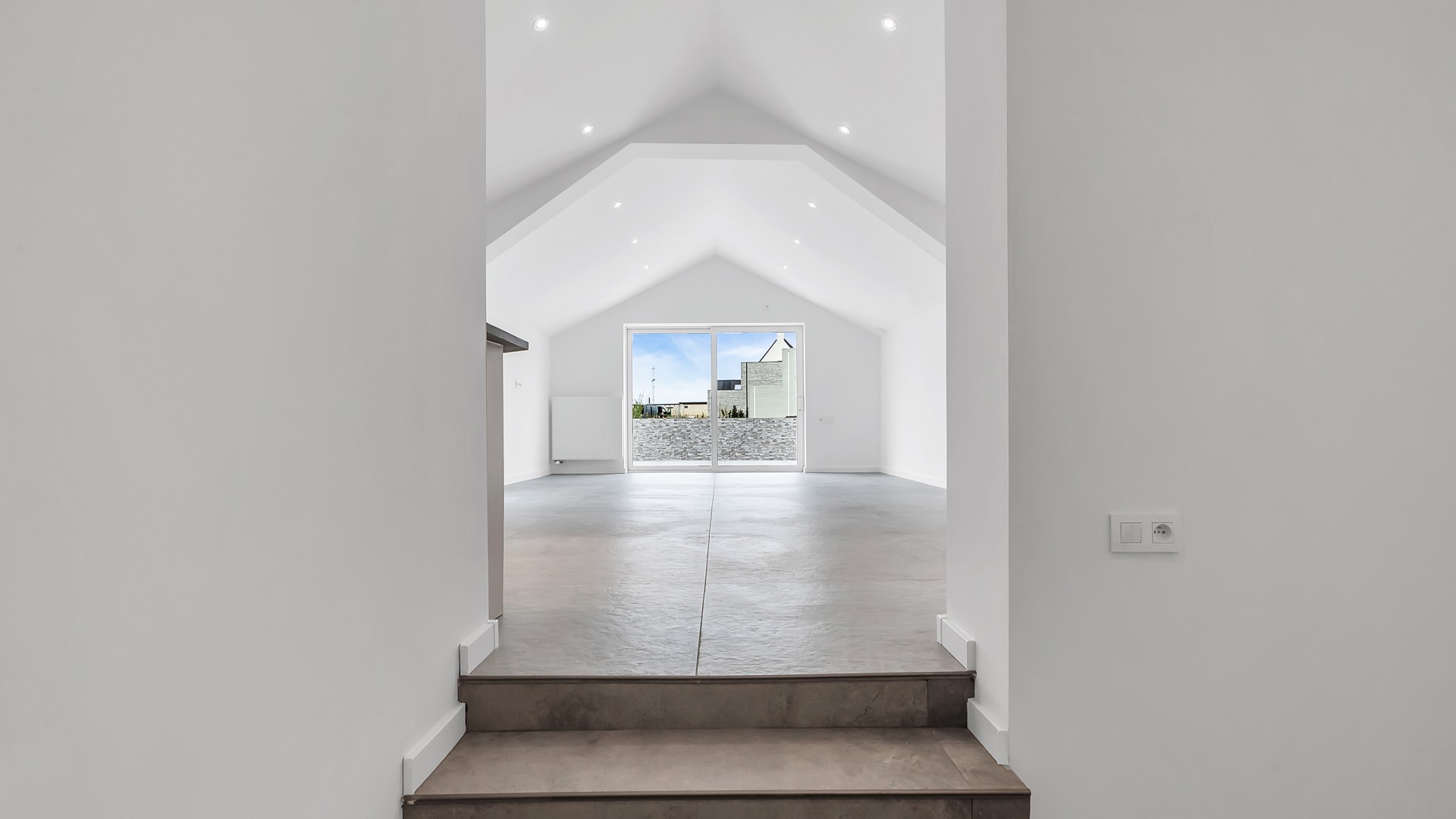 Bij aankomst wordt u verwelkomd door een verzorgde uitstraling en een praktische, overdekte carport. Bij het betreden van de woning komt u terecht in een ruime inkomhal die meteen een gevoel van openheid en licht creëert. Via de trap bereikt u de bovenverdieping, waar een royale overloop toegang biedt tot de verschillende leefruimtes.