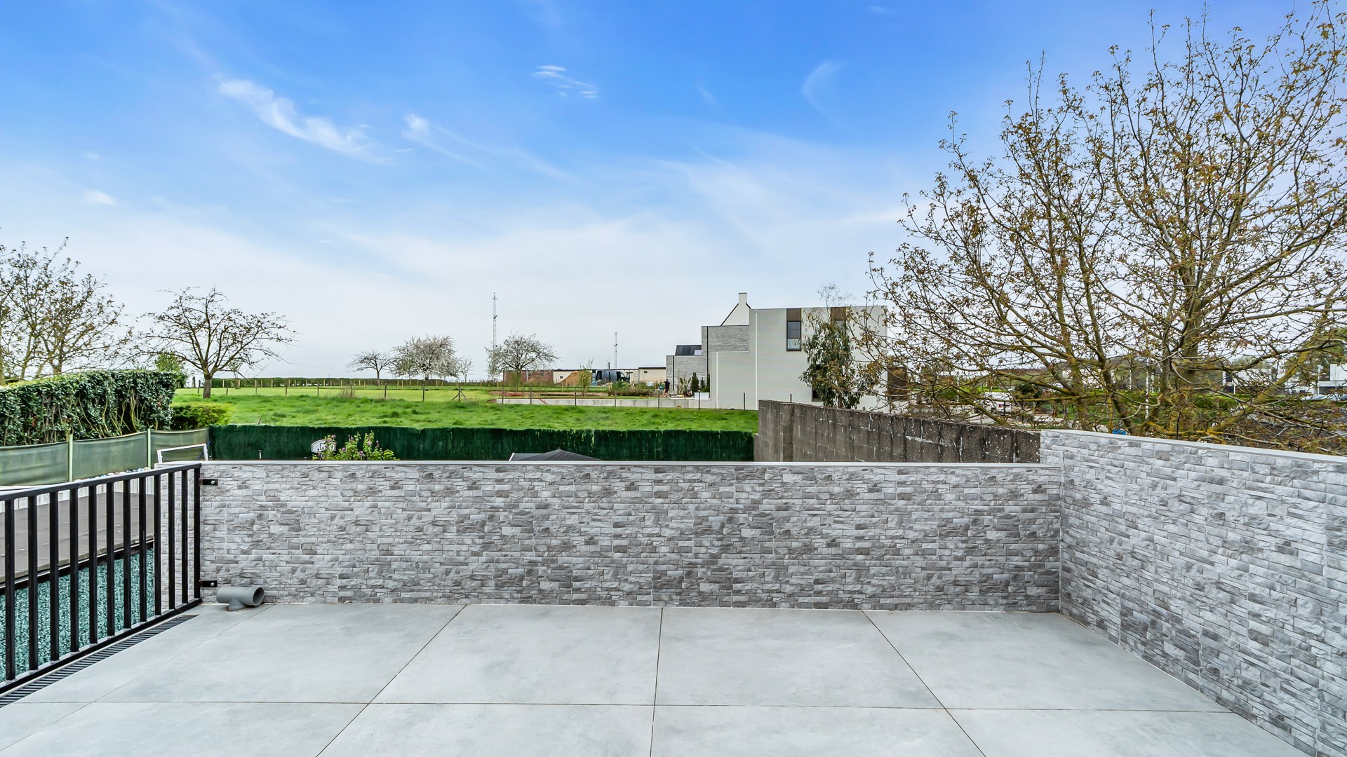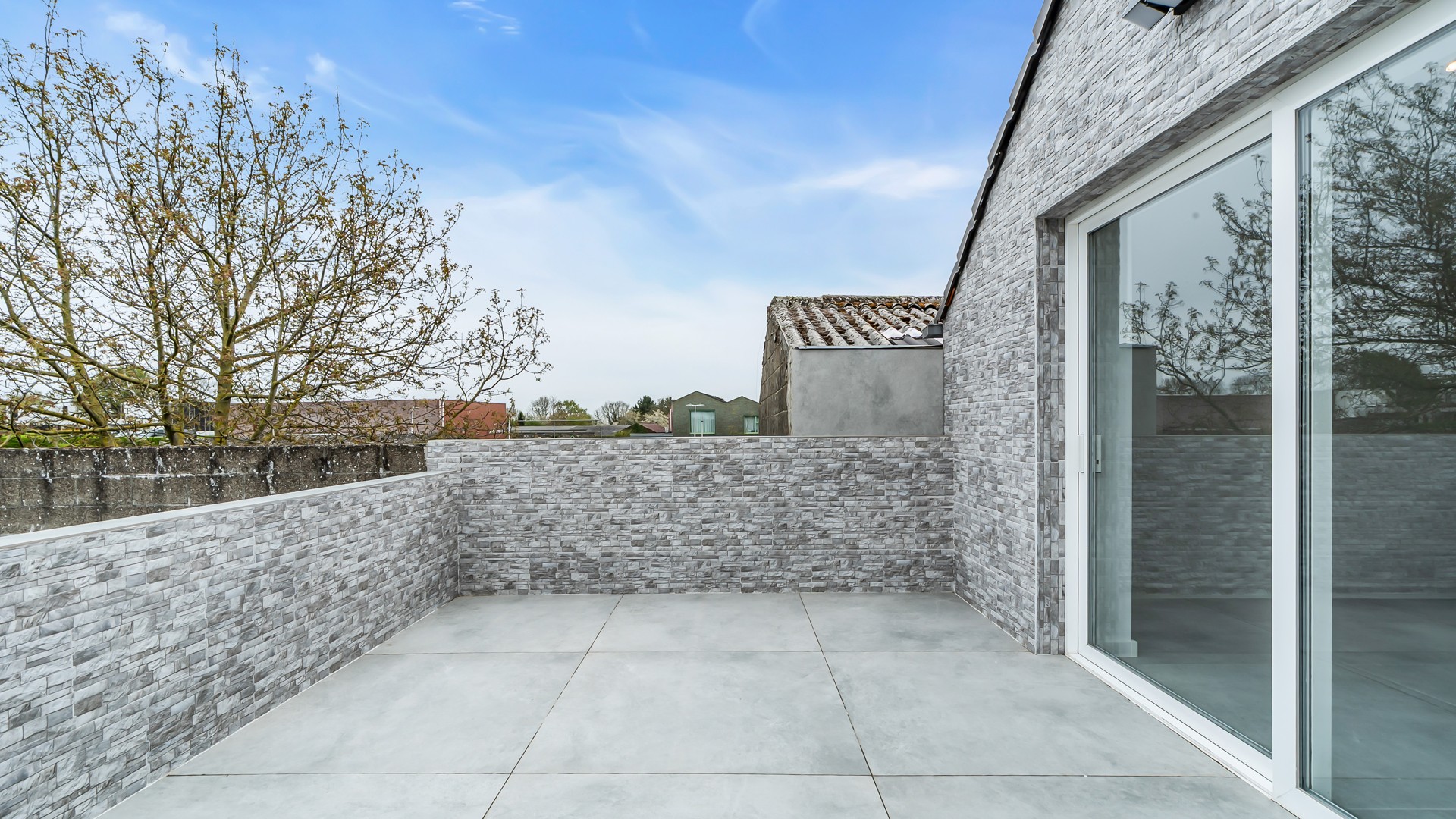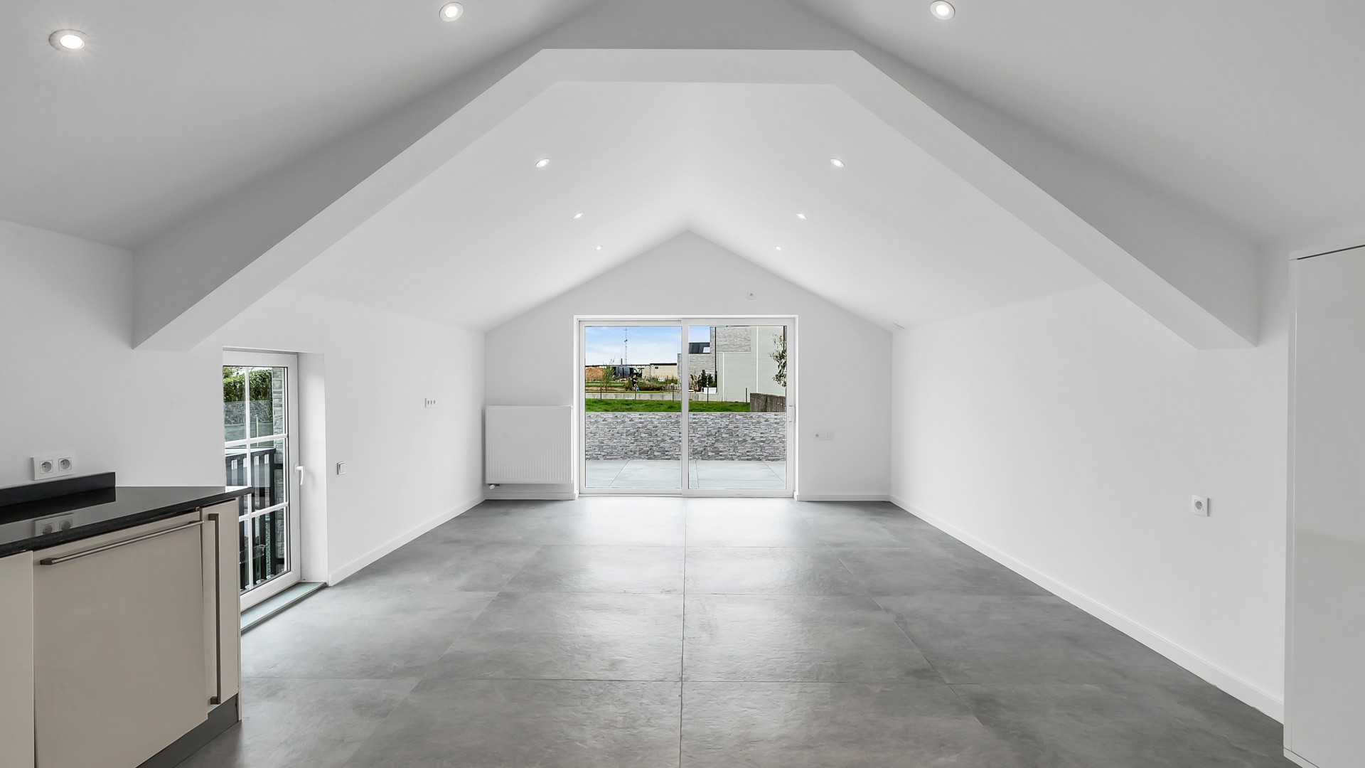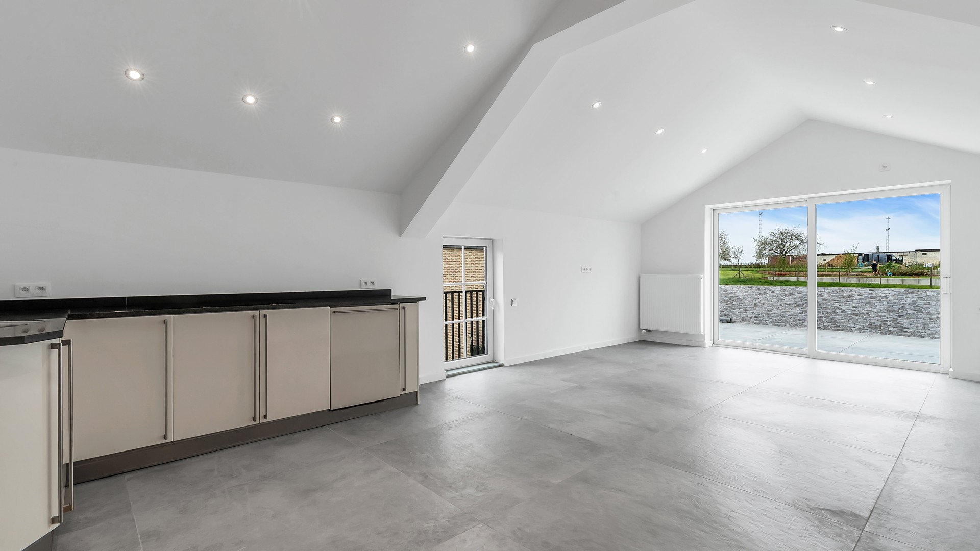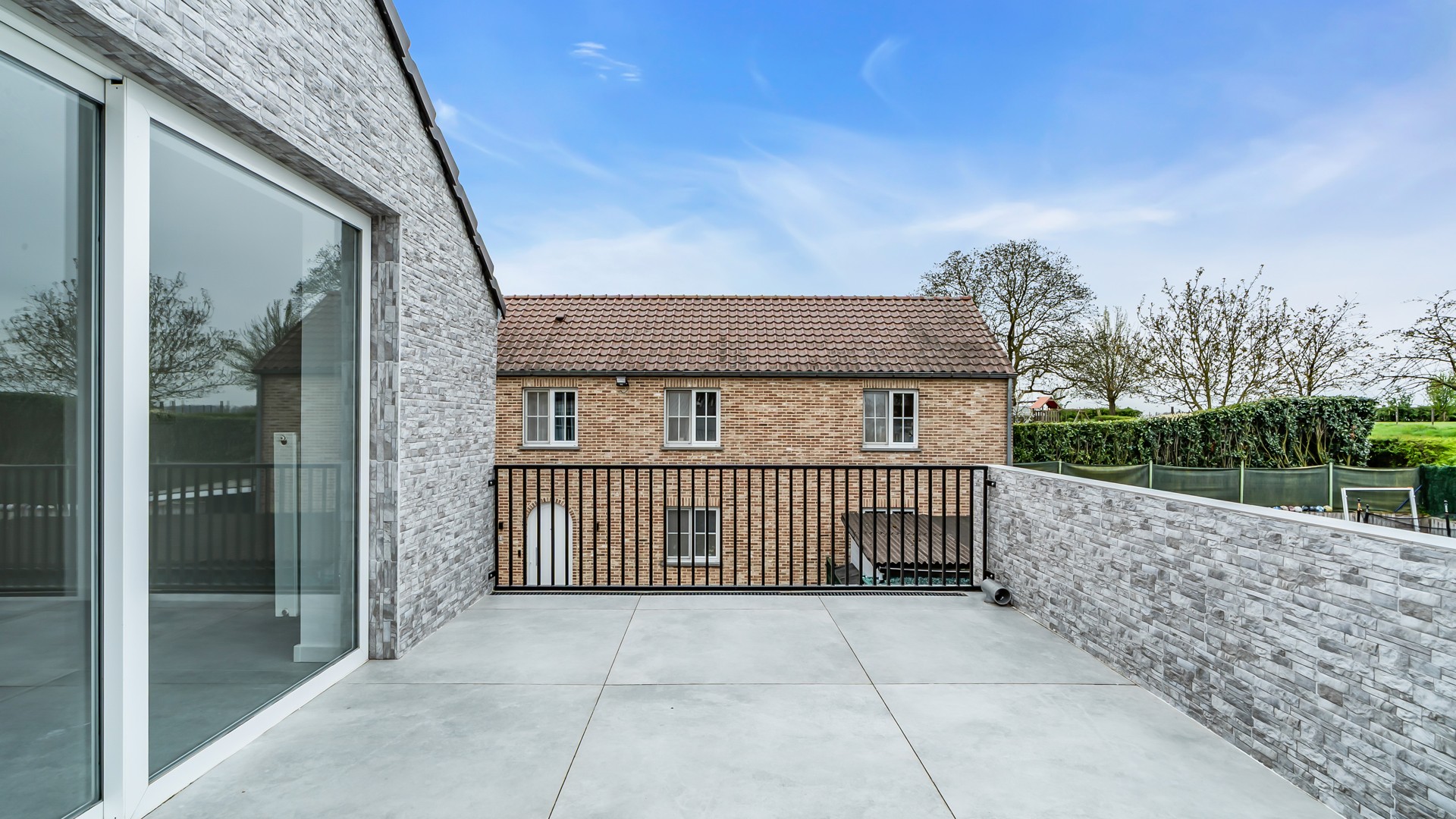 De bovenruimte is bijzonder aangenaam ingericht met een open keuken die naadloos overgaat in de lichtrijke woonkamer. Grote raampartijen zorgen voor een prachtig, rustgevend uitzicht op de omliggende groene velden – een echte meerwaarde voor wie houdt van ruimte en natuur. Aansluitend bevindt zich een gezellig terras waar u in alle rust kan genieten van zonnige dagen en lange avonden. Verder beschikt deze verdieping over een comfortabele slaapkamer en een modern afgewerkte badkamer met douche en toilet, volledig in lijn met de hedendaagse woonstandaarden.