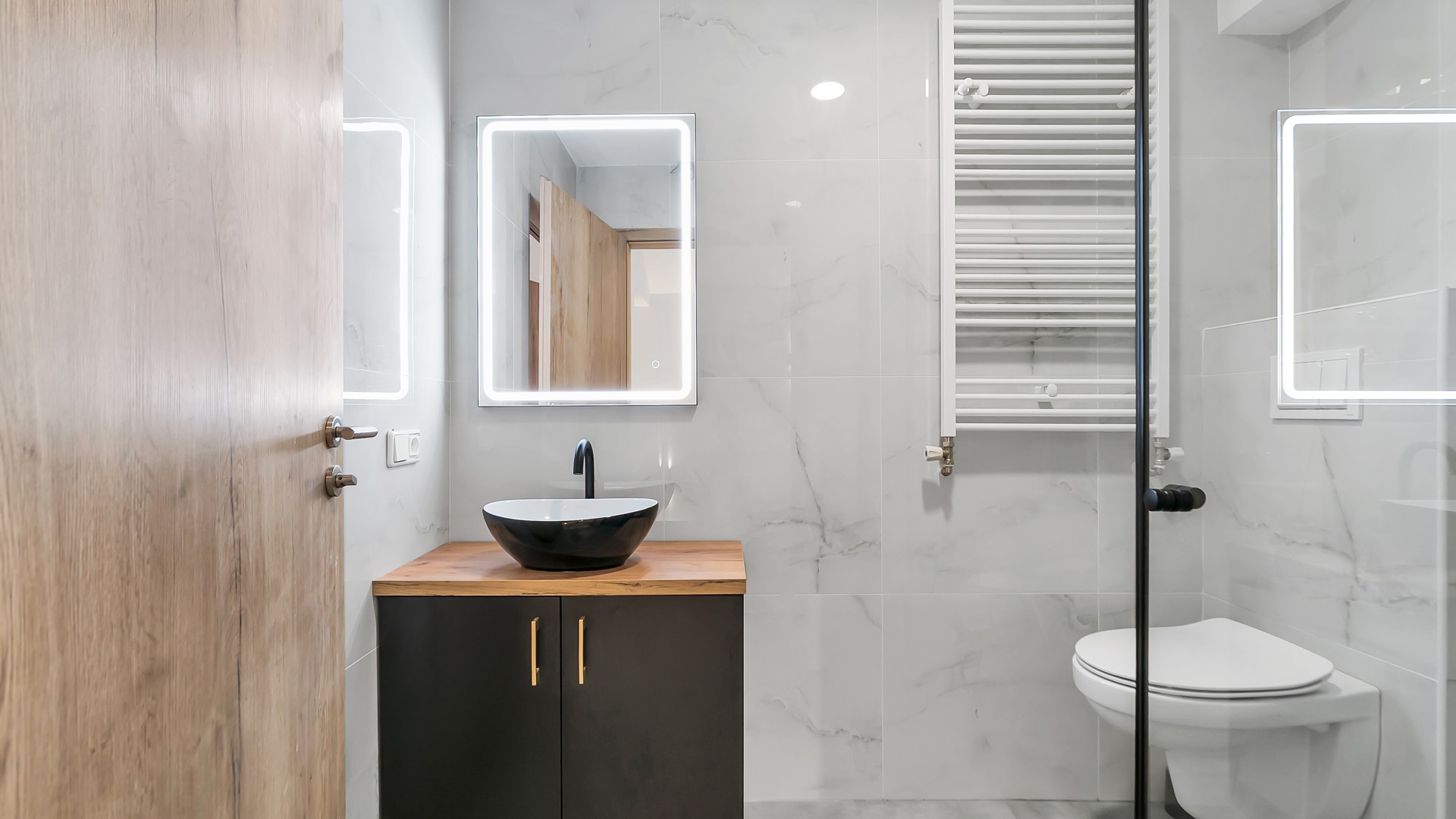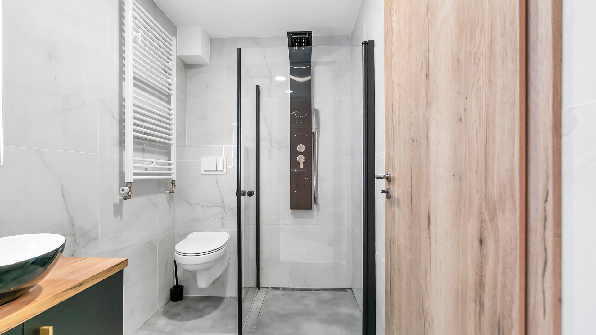 - Badkamervoorzieningen Toilet, douche, wastafel, wastafelmeubel