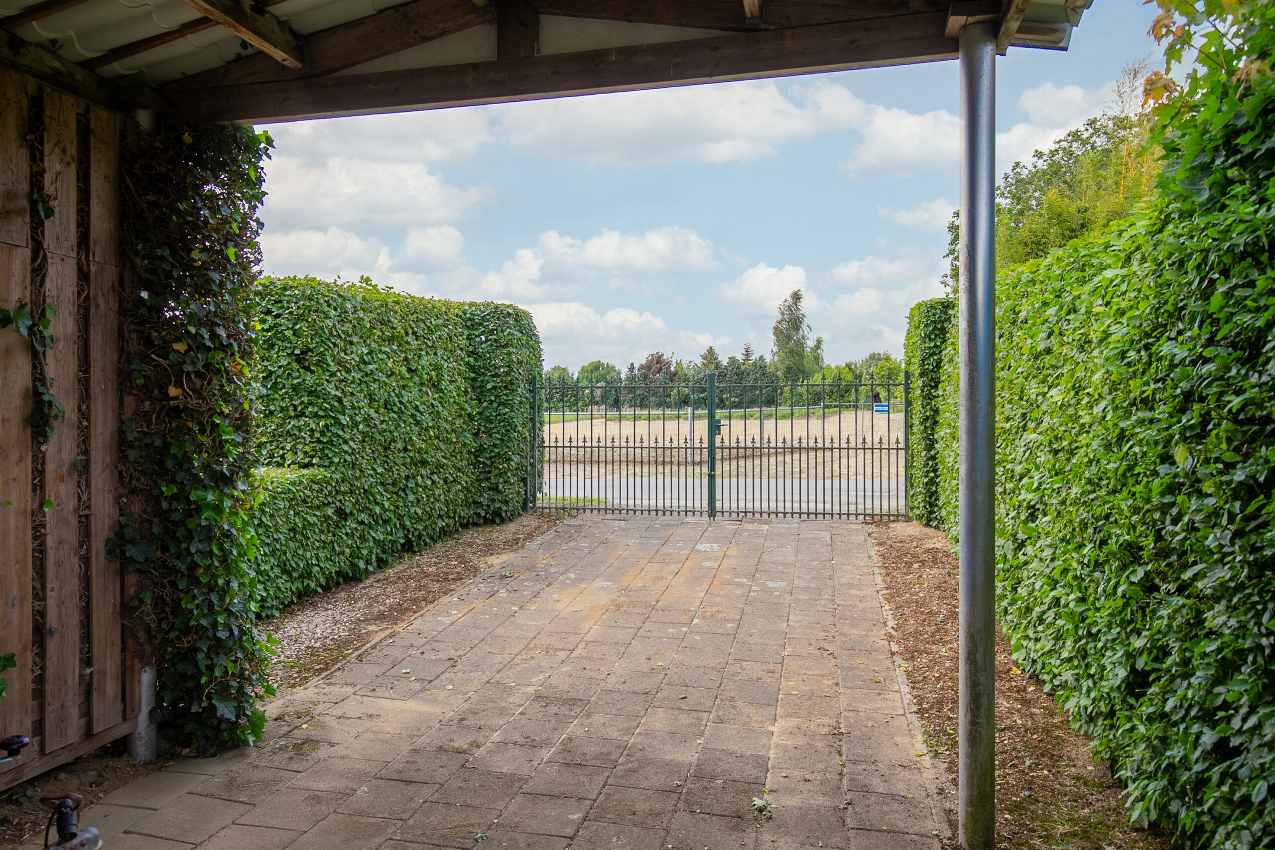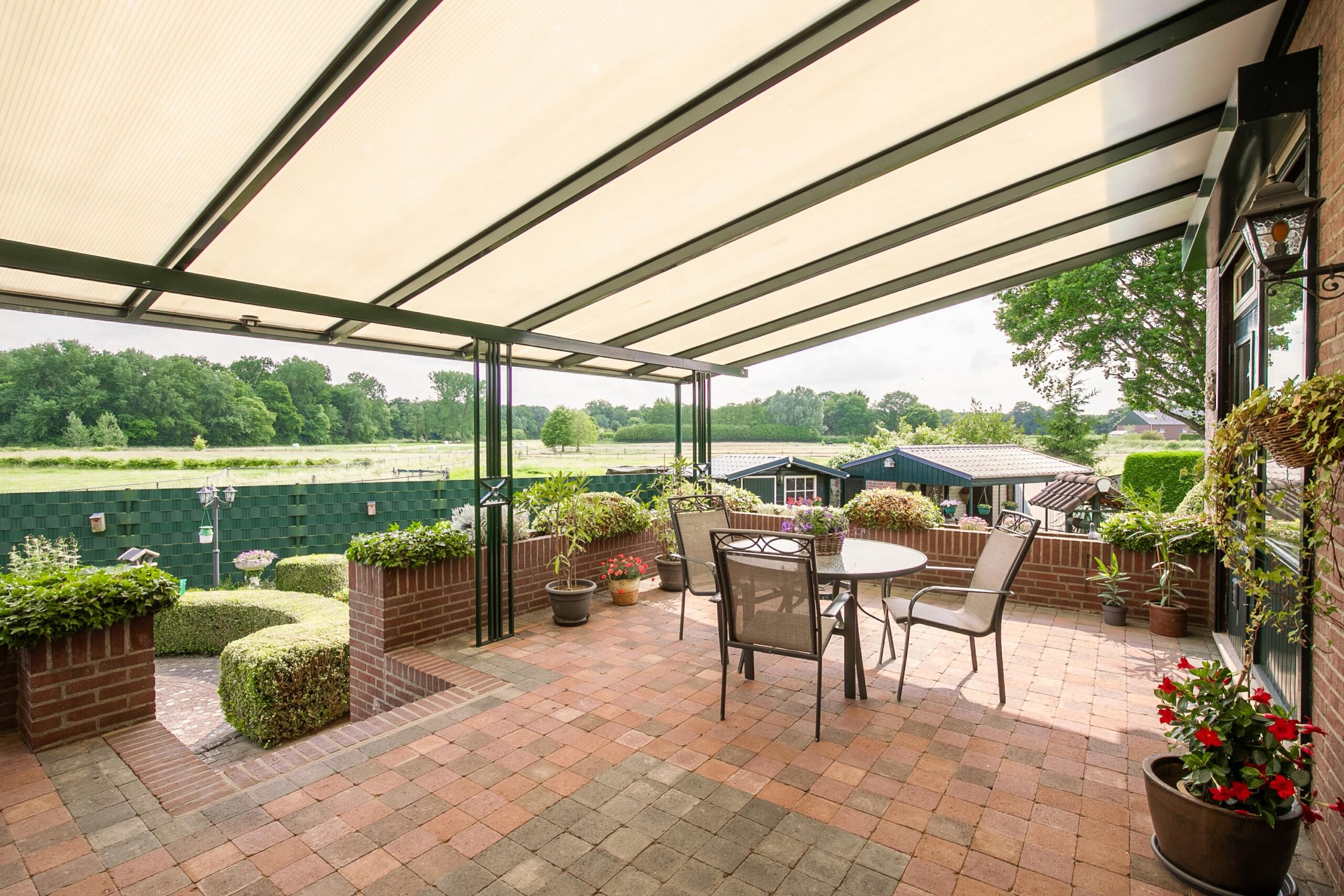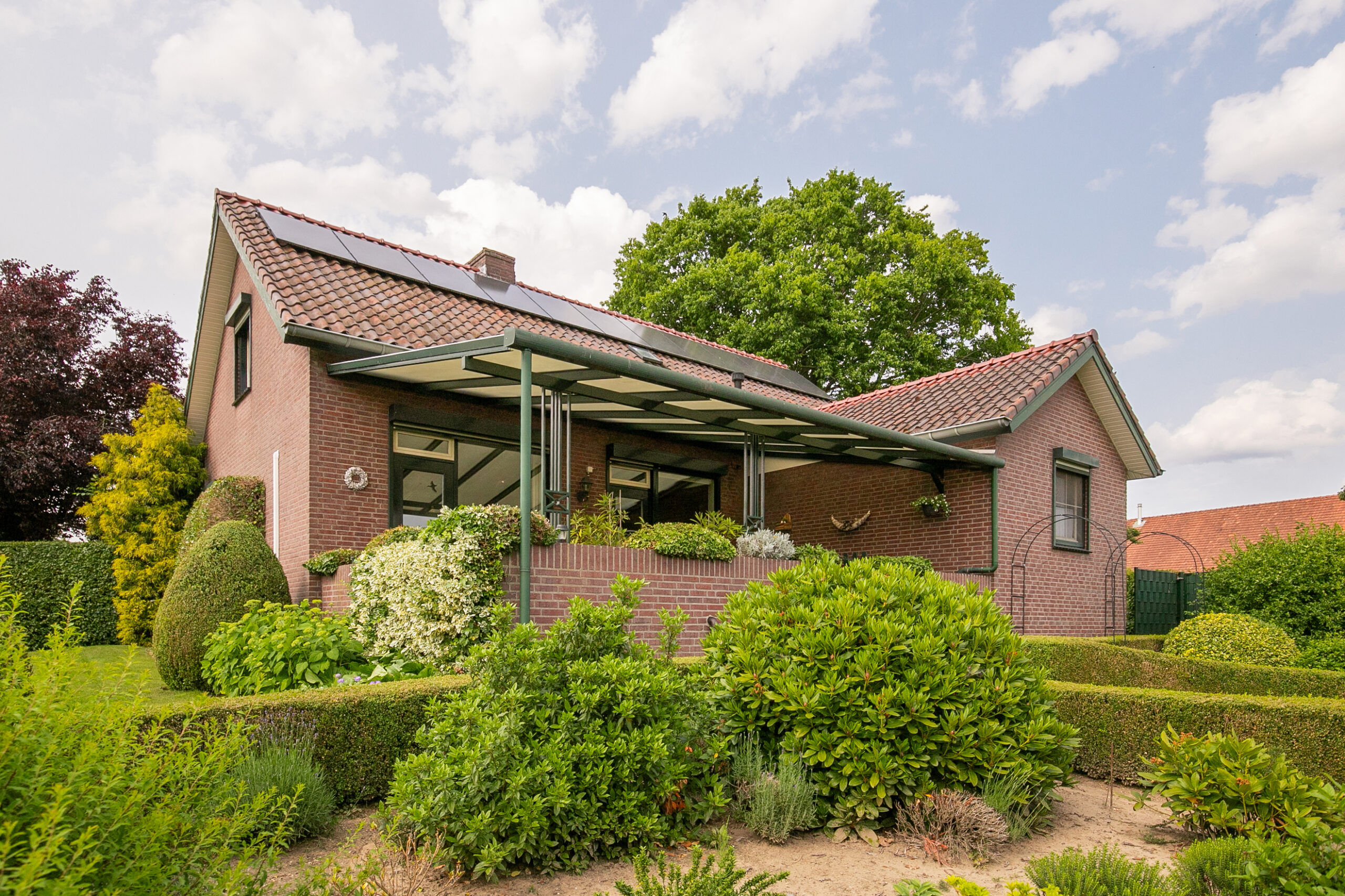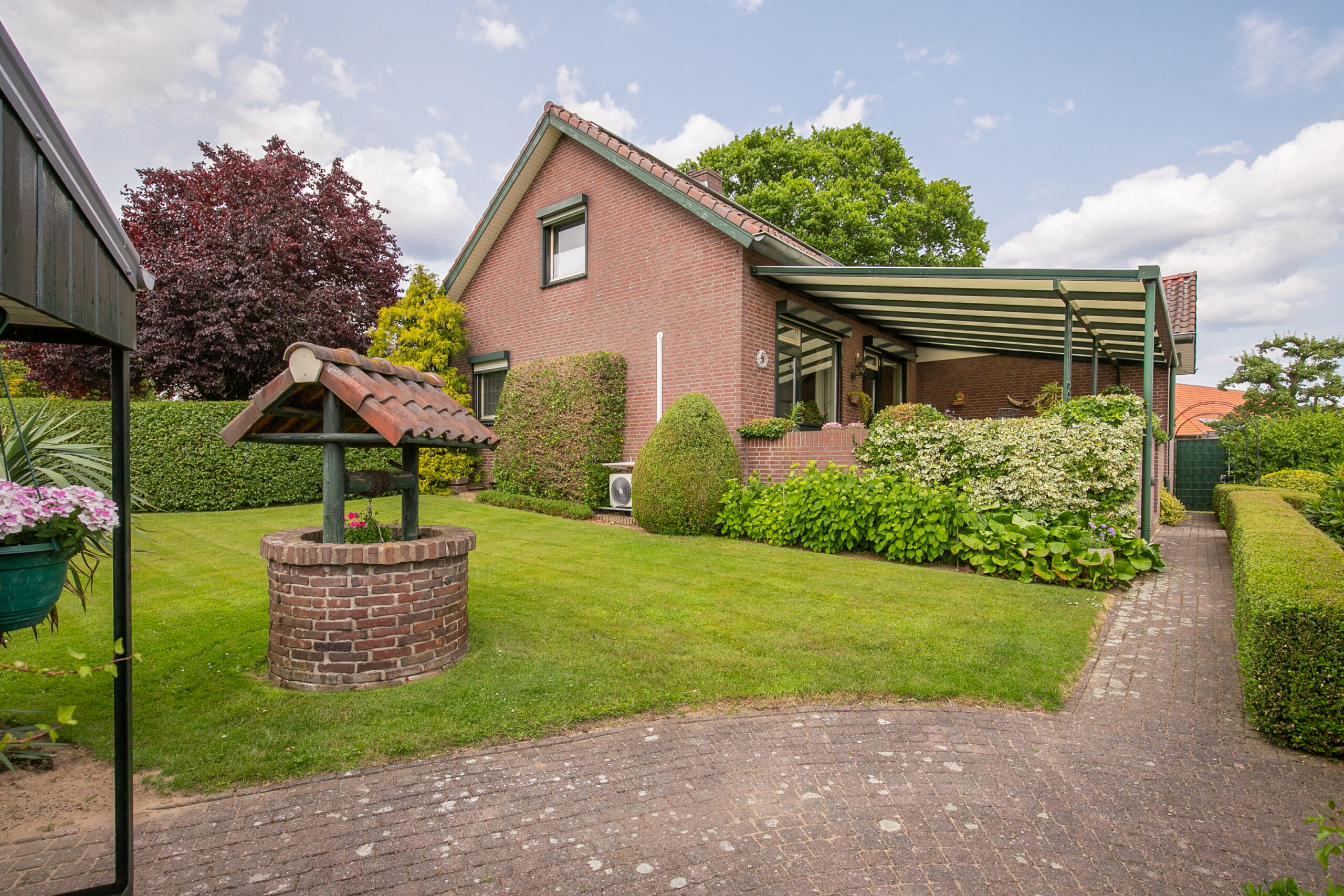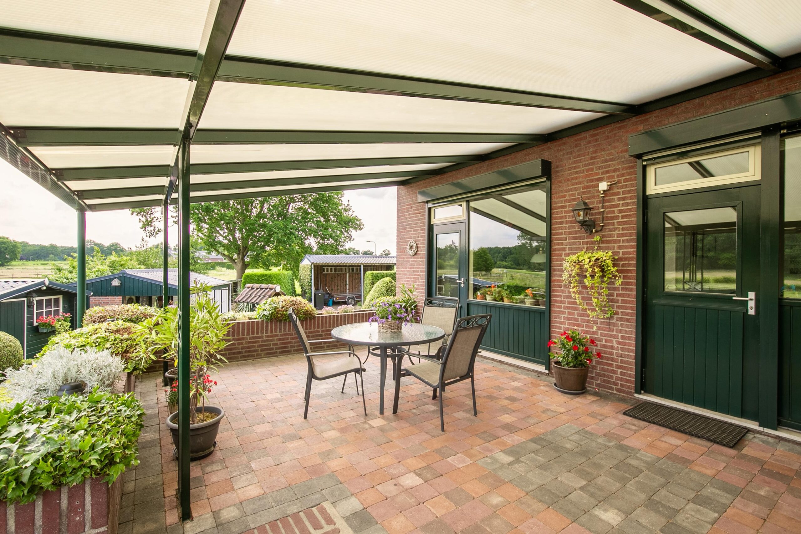 Rondom de woning ligt een heerlijke, grote tuin. Door het ruime overdekte terras, kun je fijn genieten van het buitenleven. De tuin is geheel omheind en biedt volledige privacy en vrijheid. Er zijn namelijk geen directe buren aan de achterkant en zijkant. De tuin is omringd door weilanden en bosgebied in de verte. Verder is de tuin grotendeels voorzien van gazon, gedeeltelijk betegeld en beklinkerd en heeft een verscheidenheid aan beplanting, bomen en groen. Er is een carport aanwezig met aan de rechterzijde een strookje tuin toegankelijk is die ideaal gebruikt kan worden als bijvoorbeeld moestuin of huisweide voor het houden van kleinvee. Ook zijn er twee praktische bergingen aanwezig als opslagruimte. Aan de voorzijde is een oprit aanwezig en de tuin is middels poortje toegankelijk.