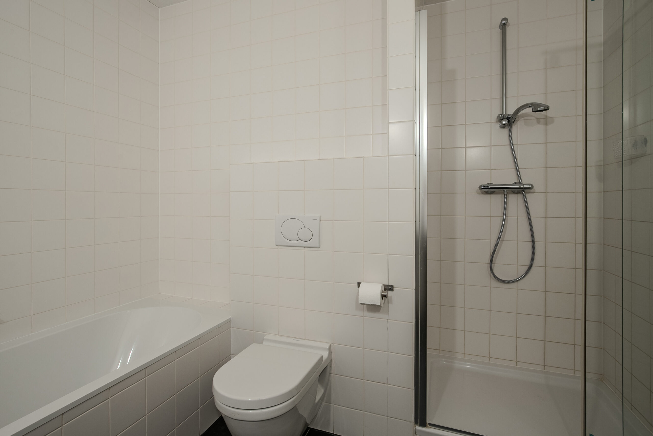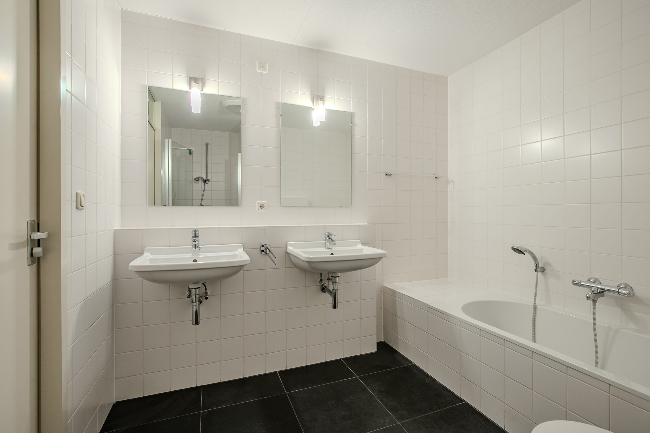 - Badkamervoorzieningen Ligbad, toilet, douche, dubbele wastafel