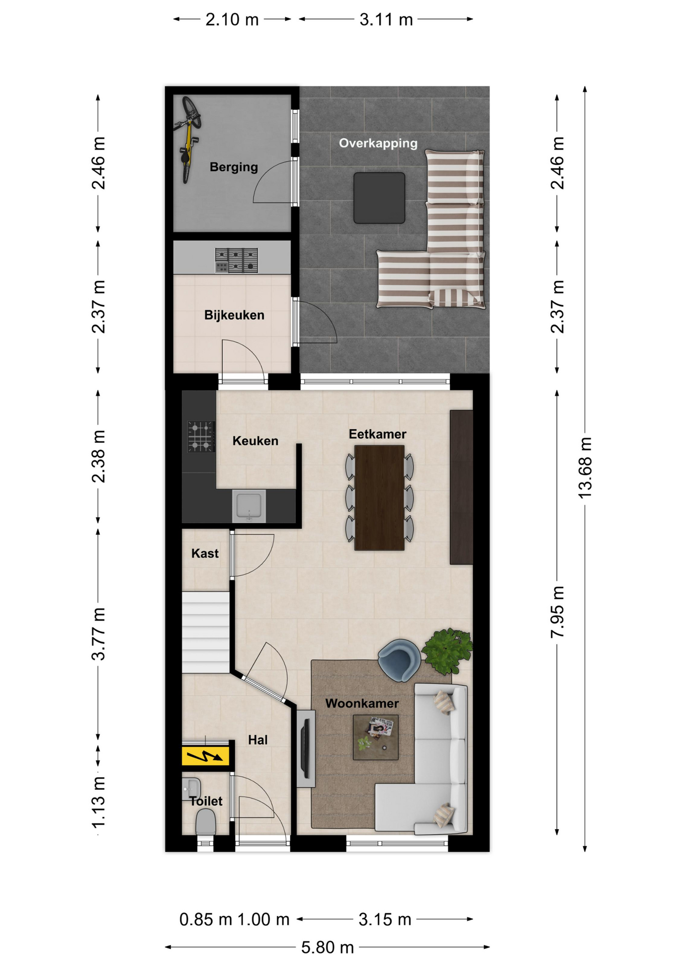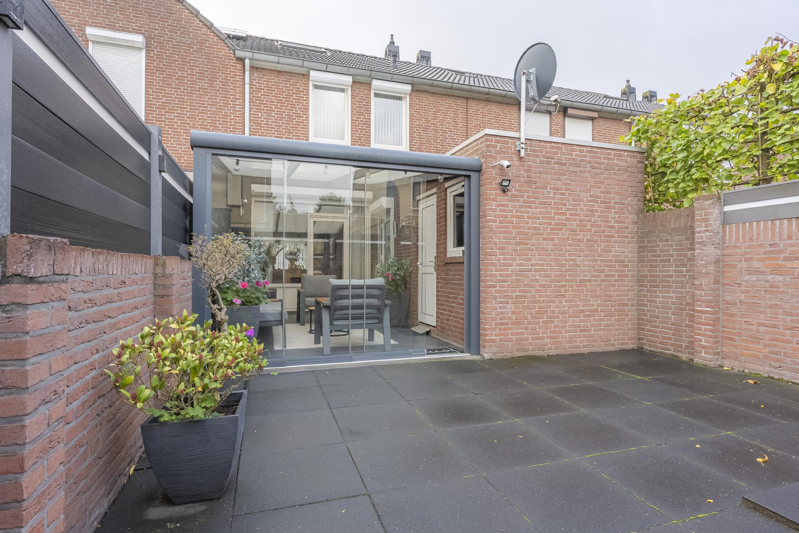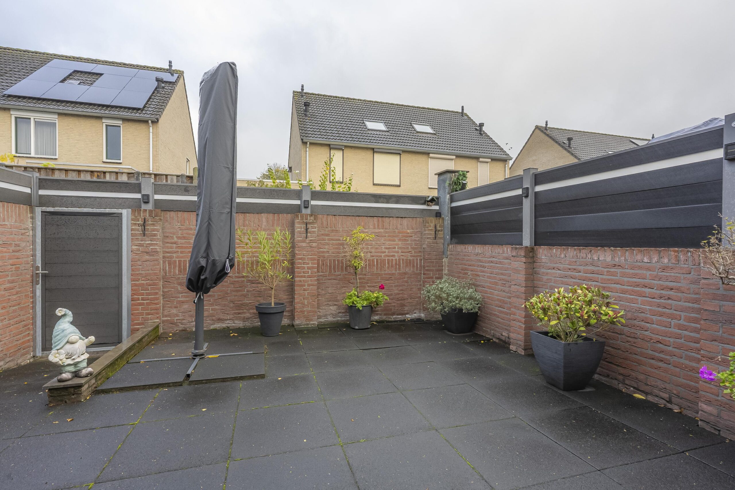 Goed omheinde tuin, onderhoudsvrij, voldoende privacy, parasol en achteringang.