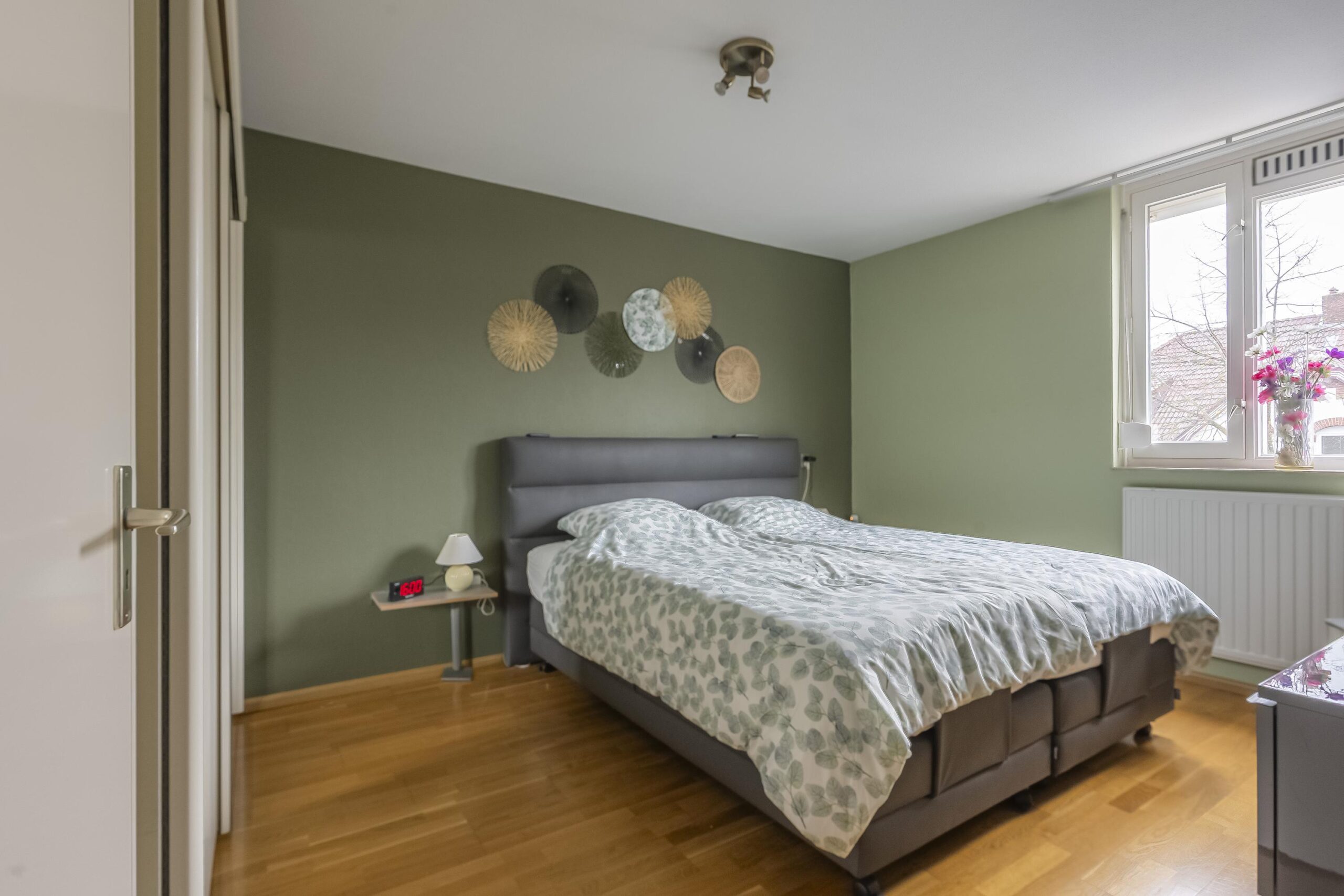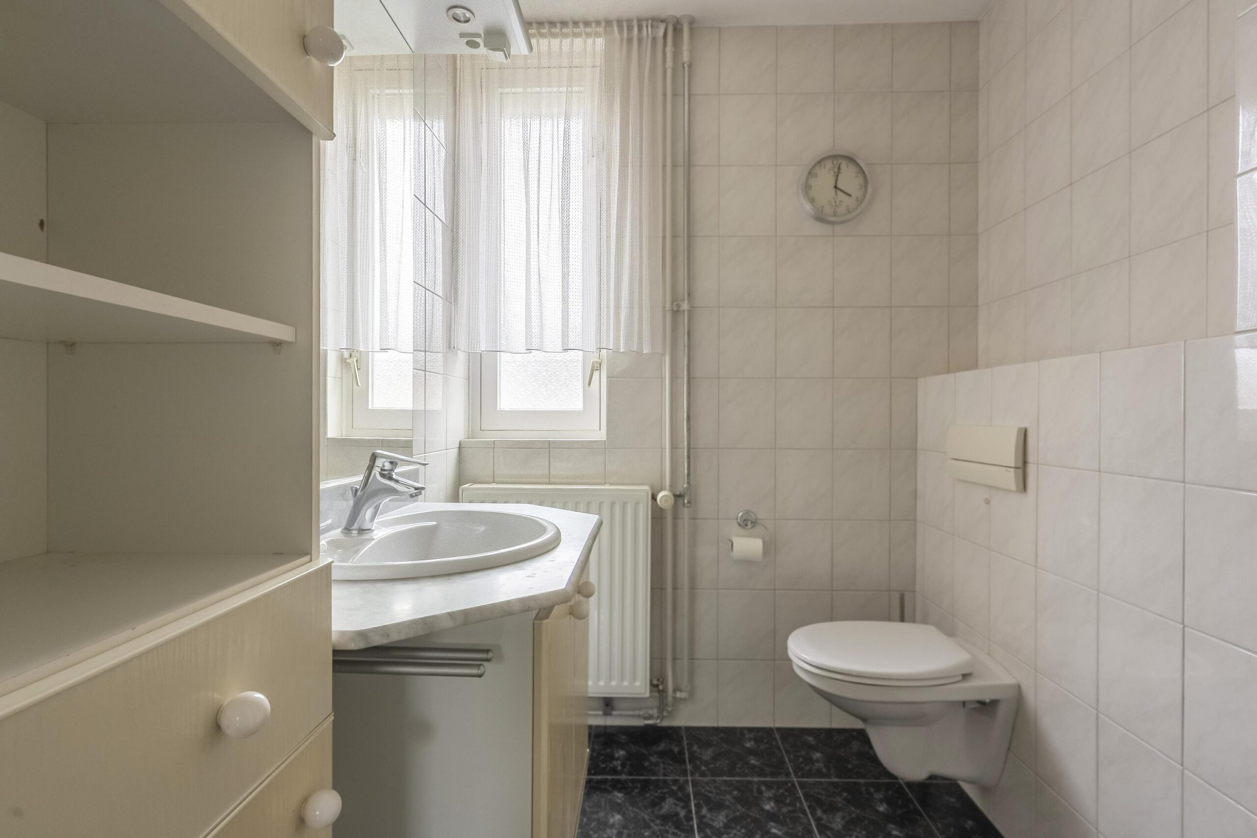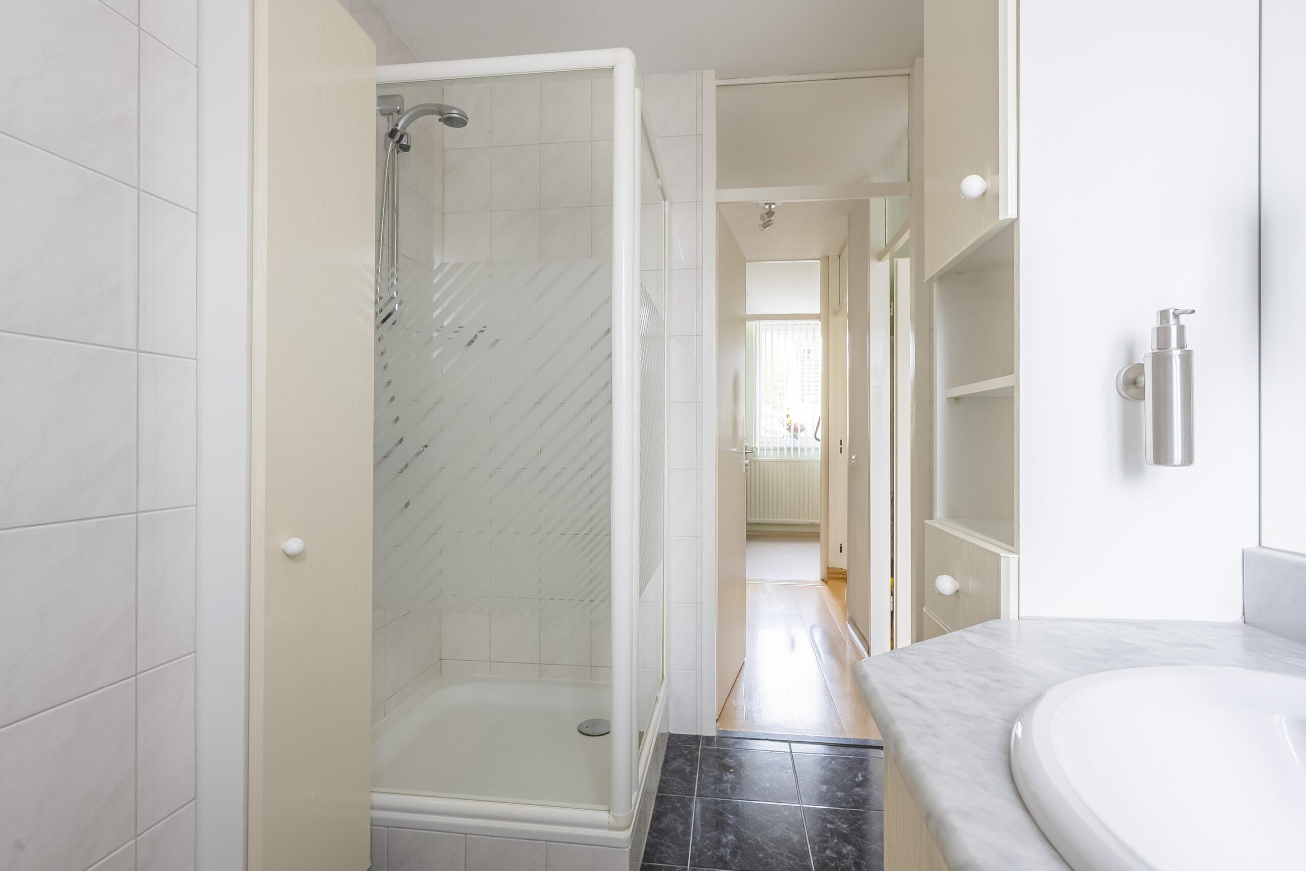 Overloop. 3 Slaapkamers allen voorzien van een parketvloer. Betegelde badkamer met douchecabine met thermosstaatkraan, 2e zwevend toilet, badmeubel met vaste wastafel en opbergkast.