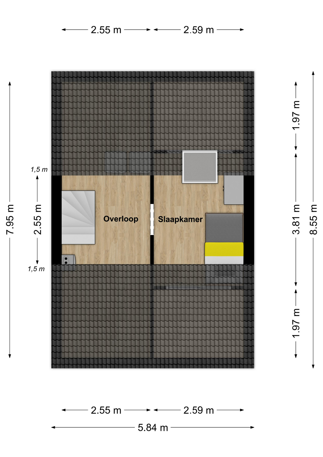 - Oppervlakte gebouwgebonden ca. 18 m2