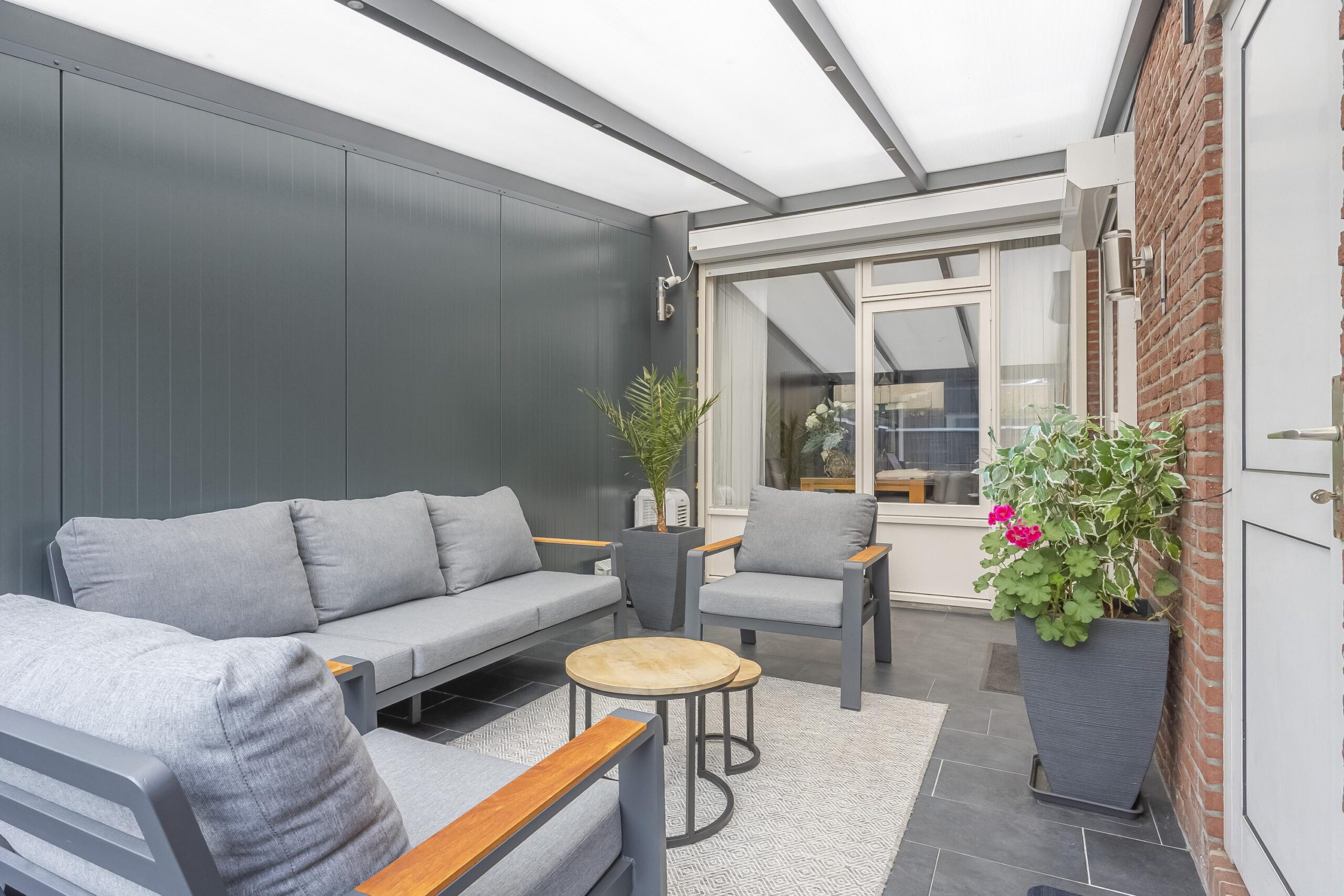 Via de bijkeuken toegang naar de tuin. Via de woonkamer toegang naar de prachtige serre met glaswanden.