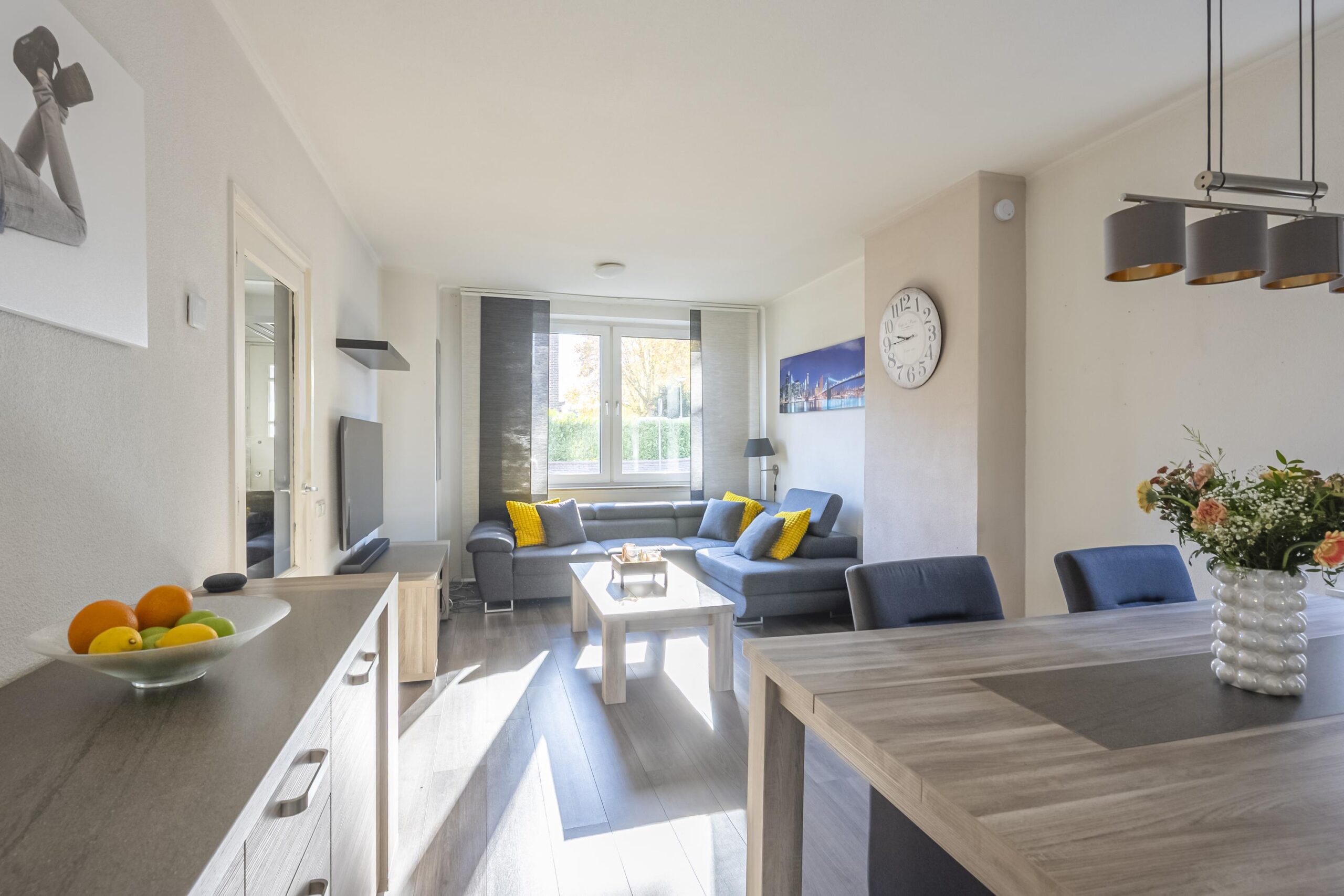 De woonkamer is groot ca. 23 m² en is voorzien van een laminaatvloer en openslaande deuren naar de overdekte buitenruimte.