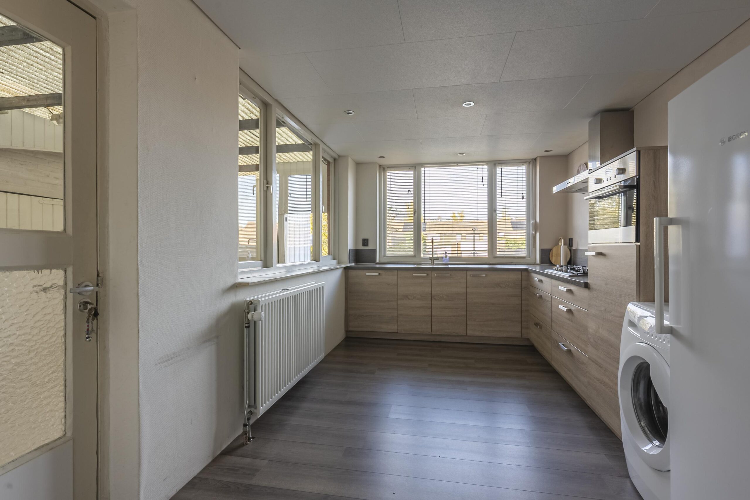 De gesloten keuken is groot ca. 18 m² en is voorzien van een moderne hoek opgestelde keuken met de navolgende apparatuur: gaskookplaat, afzuigkap, oven, koelkast en vaatwasser. Tevens is in de keuken de wasmachineaansluiting gesitueerd.