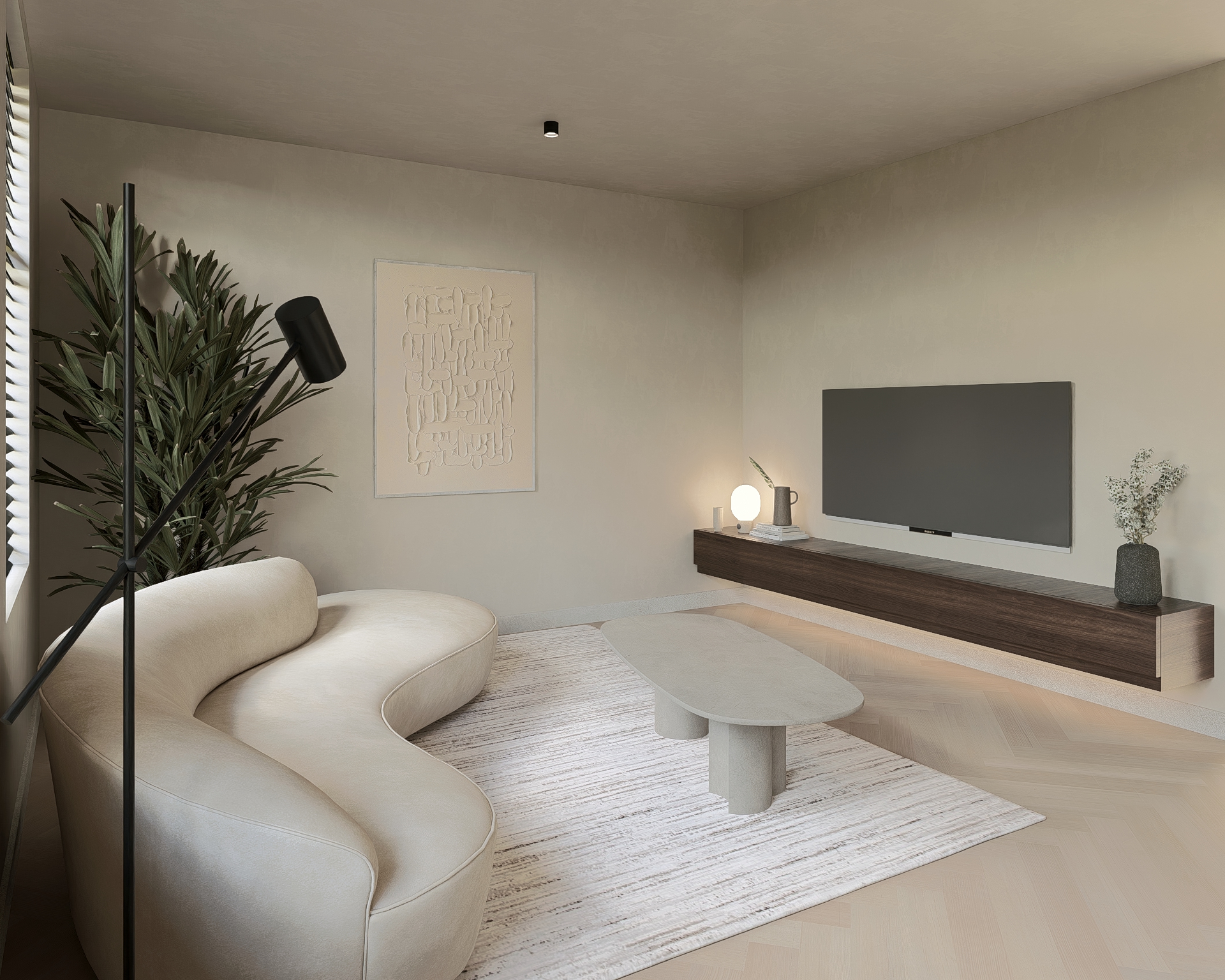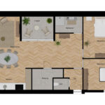 Dit appartement is heerlijk ruim met een woonoppervlakte van ongeveer 107 m² en ligt aan de achterzijde van het pand. De privé-hal biedt toegang tot de toiletruimte en de woonkamer. De woonkamer met open keuken is T-vormig en maar liefst ca. 61 m² groot en voorzien van een hoogwaardige PVC-vloer met een behaaglijke vloerverwarming.
