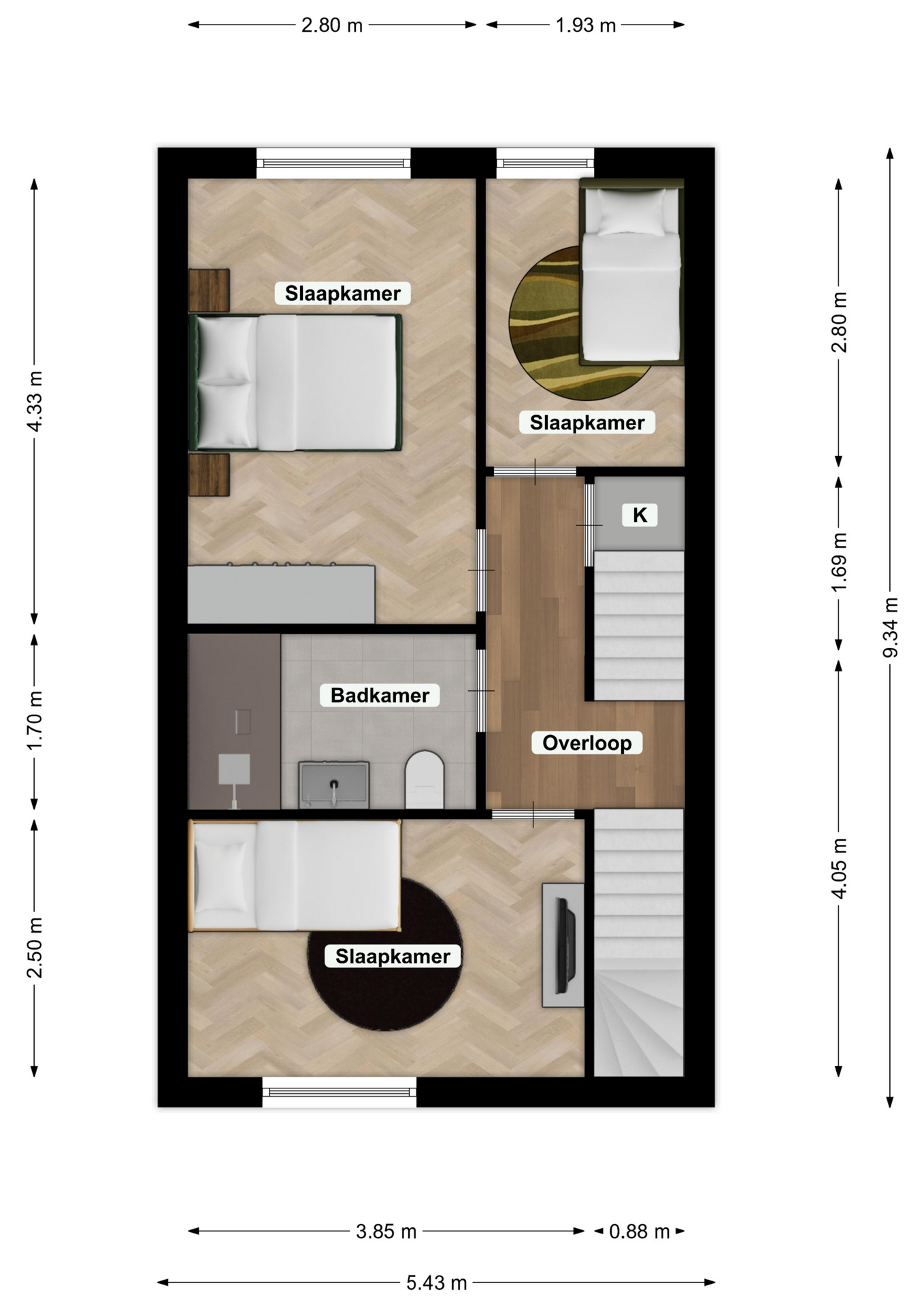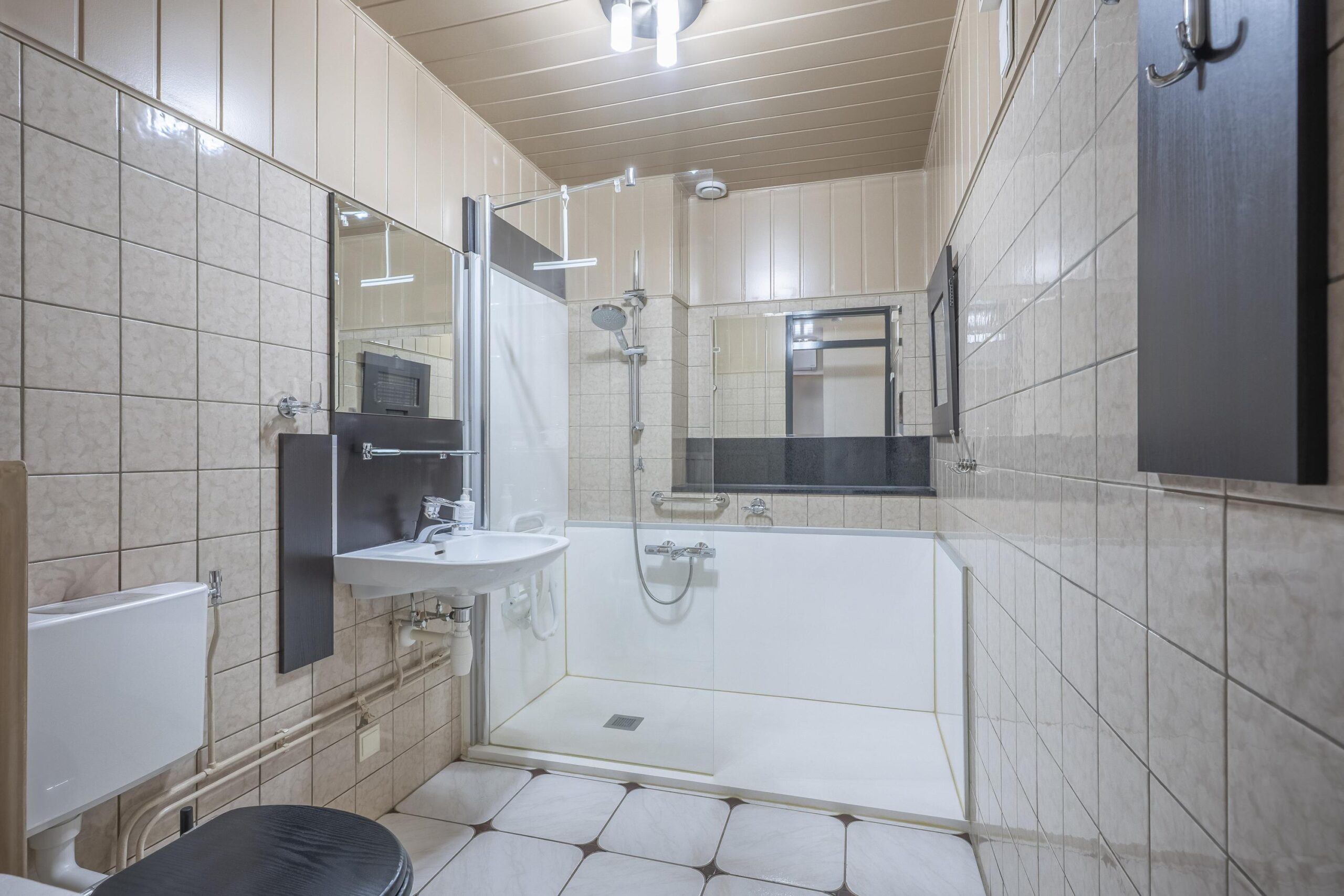 Alle slaapkamers zijn uitgerust met rolluiken. Daarnaast bevindt zich op de overloop een praktische bergkast onder de trap. De grotendeels betegelde badkamer is compleet ingericht met een inloopdouche, tweede toilet, wastafel, radiator en mechanische ventilatie.