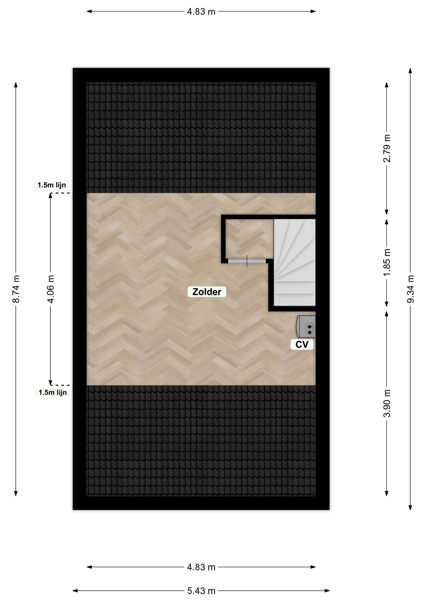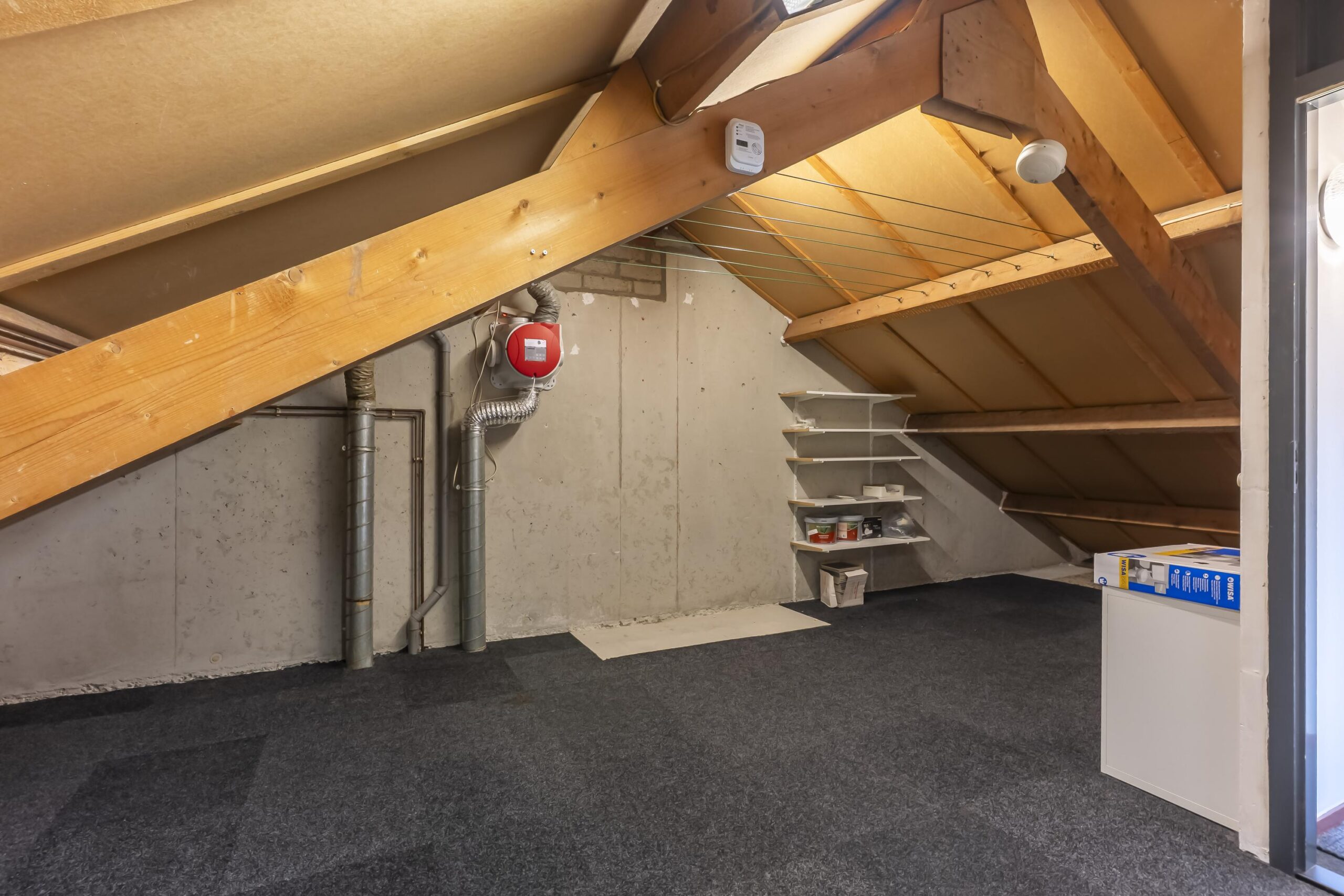 Middels een vaste trap bereik je de royale bergzolder. Hier bevinden zich de aansluitingen voor witgoed, de mechanische ventilatie-unit voor de badkamer, de omvormer ten behoeve van de 20 zonnepanelen en de opstelplaats van de cv-ketel.
