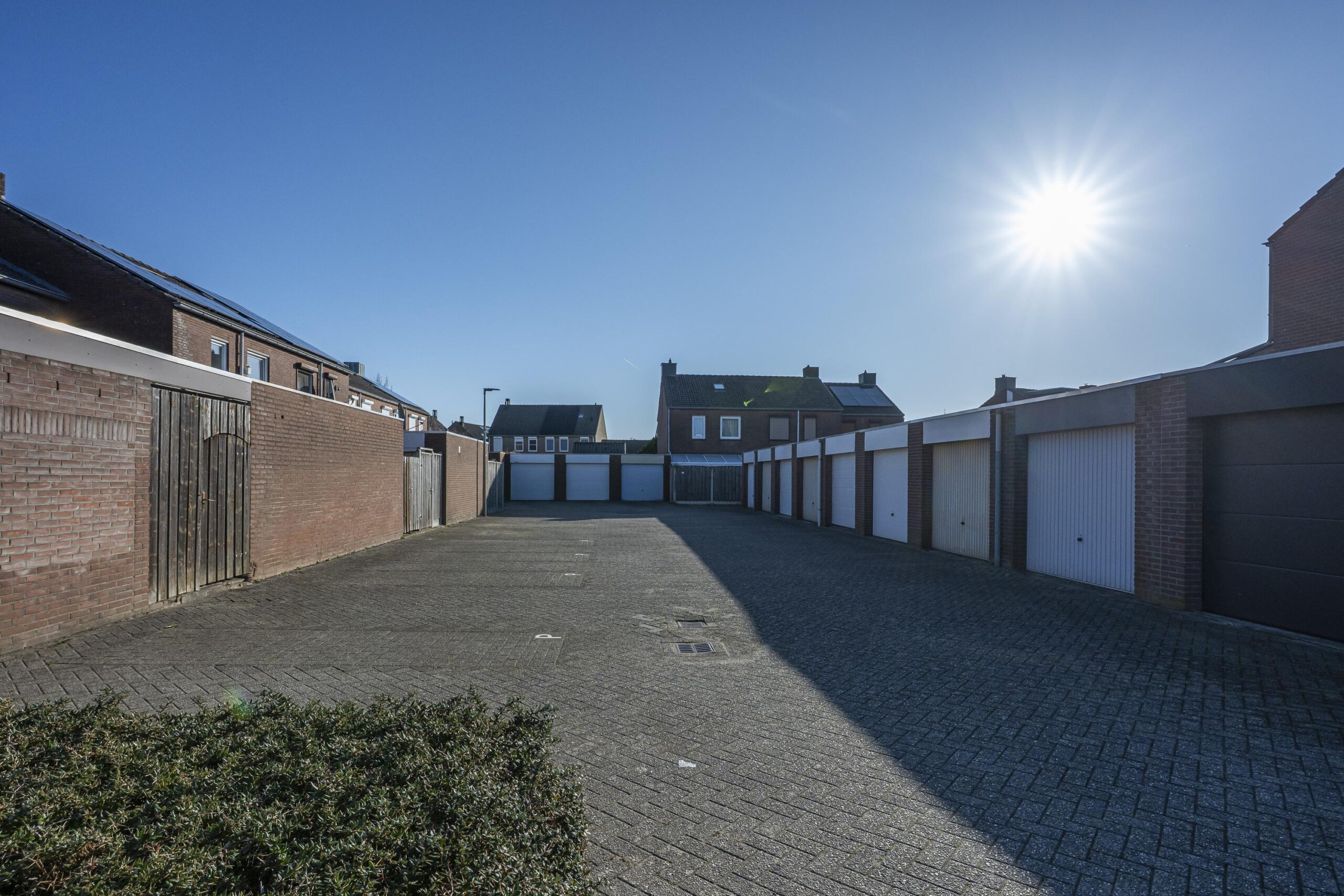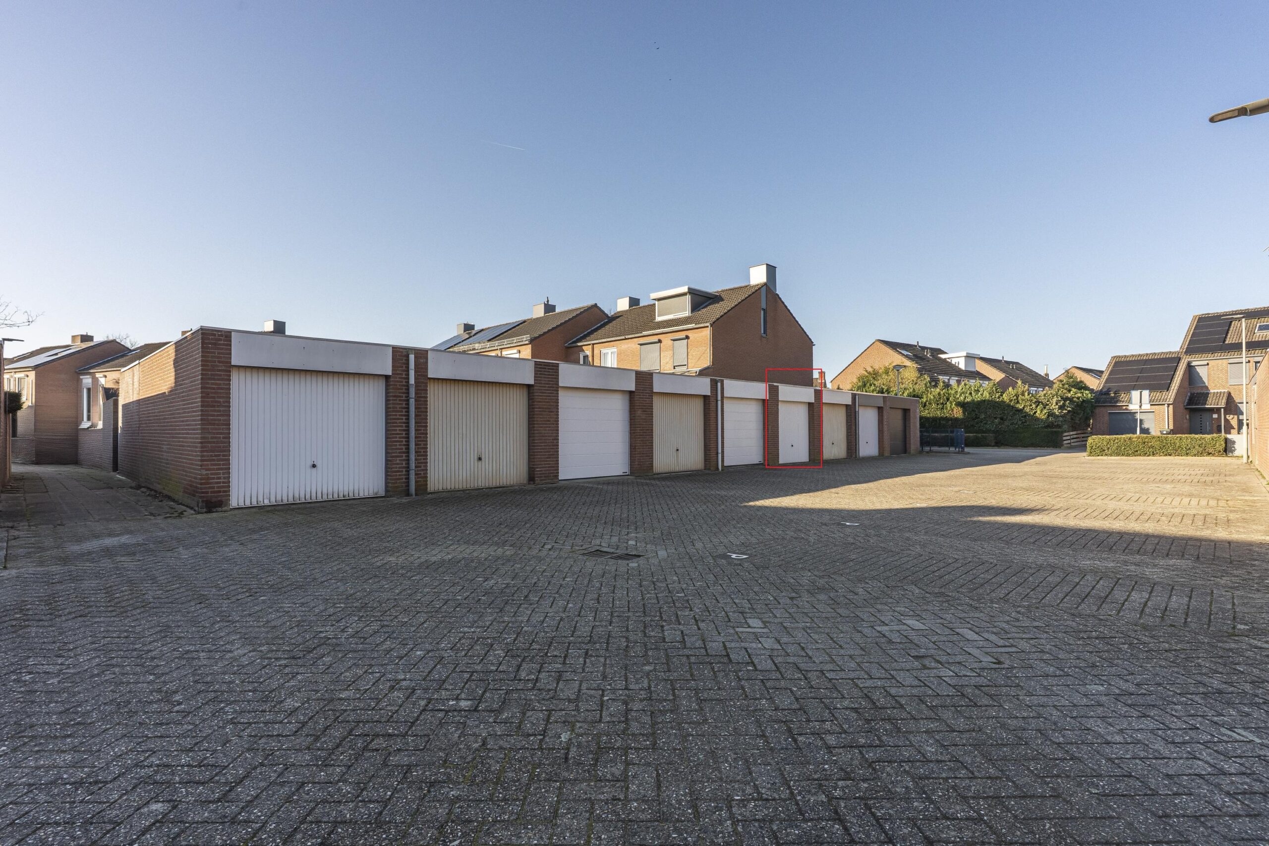 Op circa 30 meter loopafstand bevindt zich de garage met kantelpoort. Het garagedak is in 2025 volledig vernieuwd.