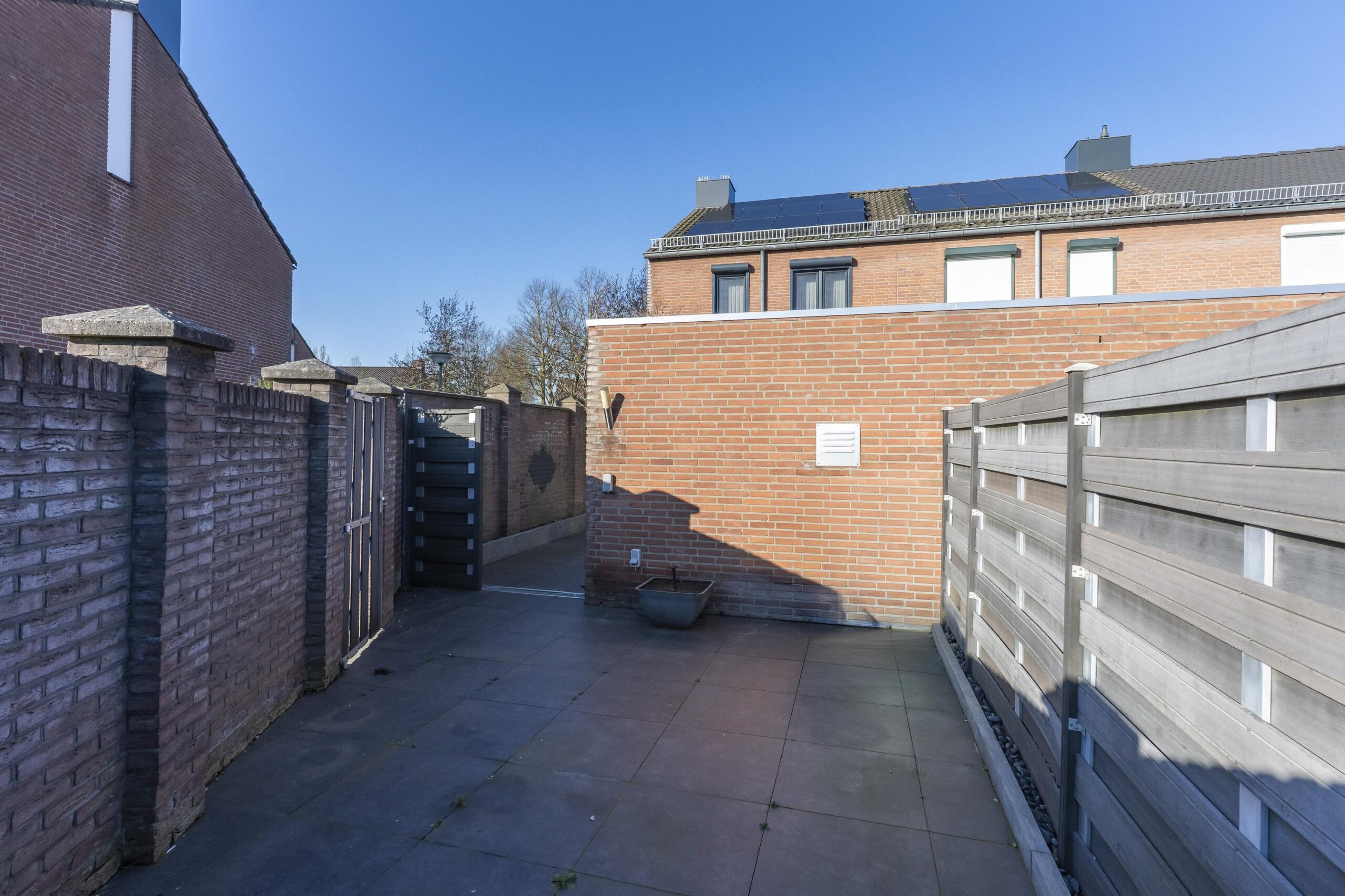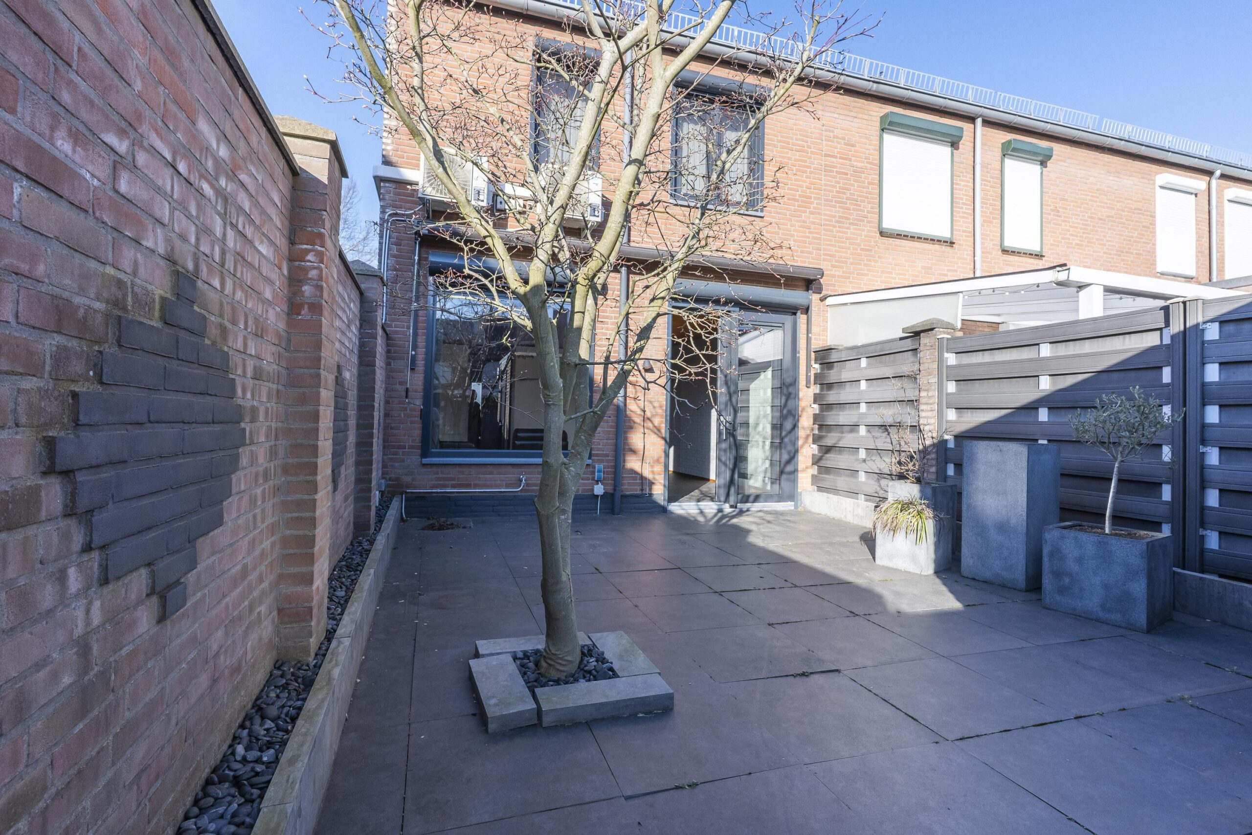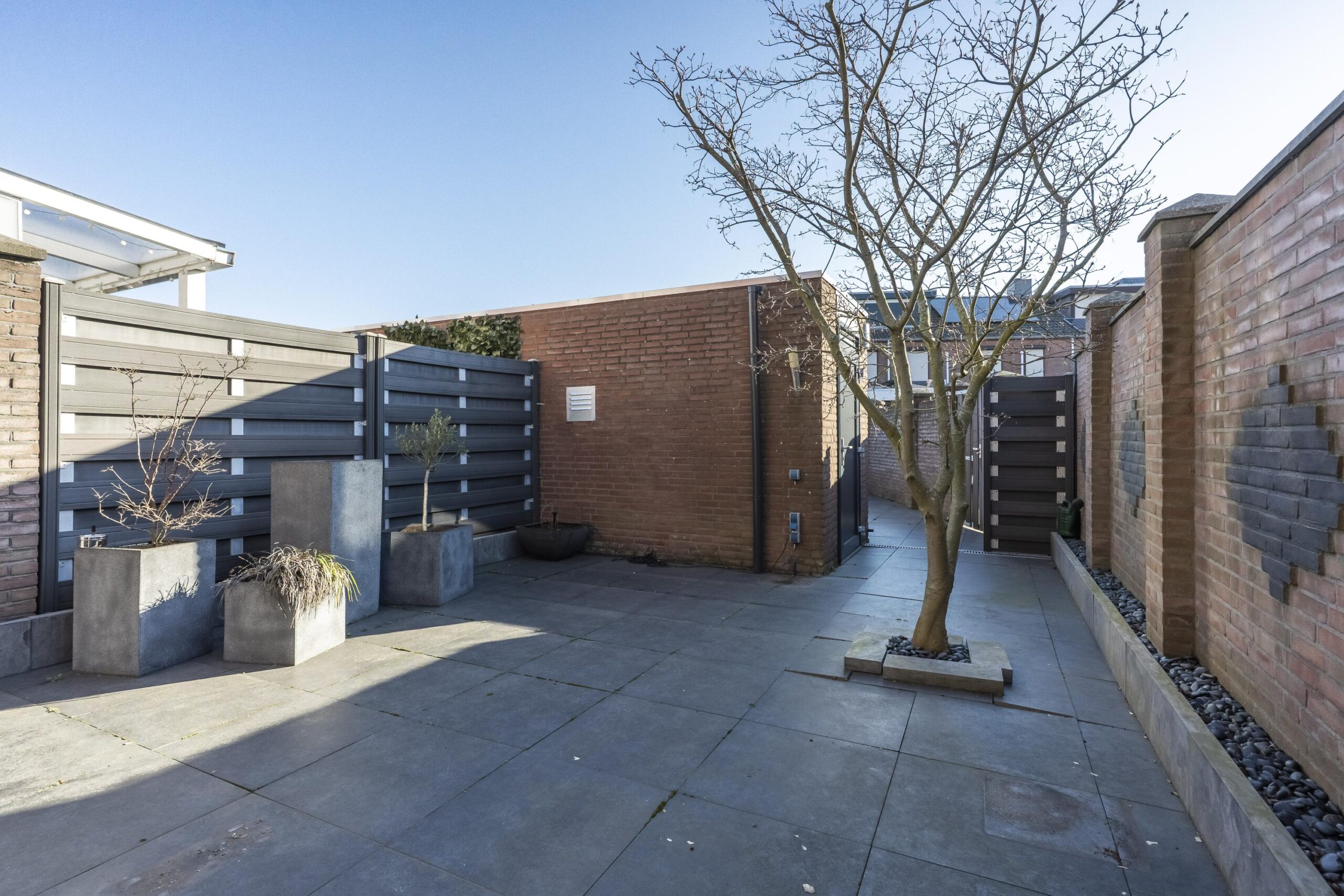 De geheel omsloten achtertuin is bereikbaar via de schuifpui in de woonkamer en via een poortje vanuit achterom. De tuin beschikt over een buitenkraan, zonnescherm en een gemetselde tuinberging. Dankzij het dubbele perceel is er extra ruimte en privacy.