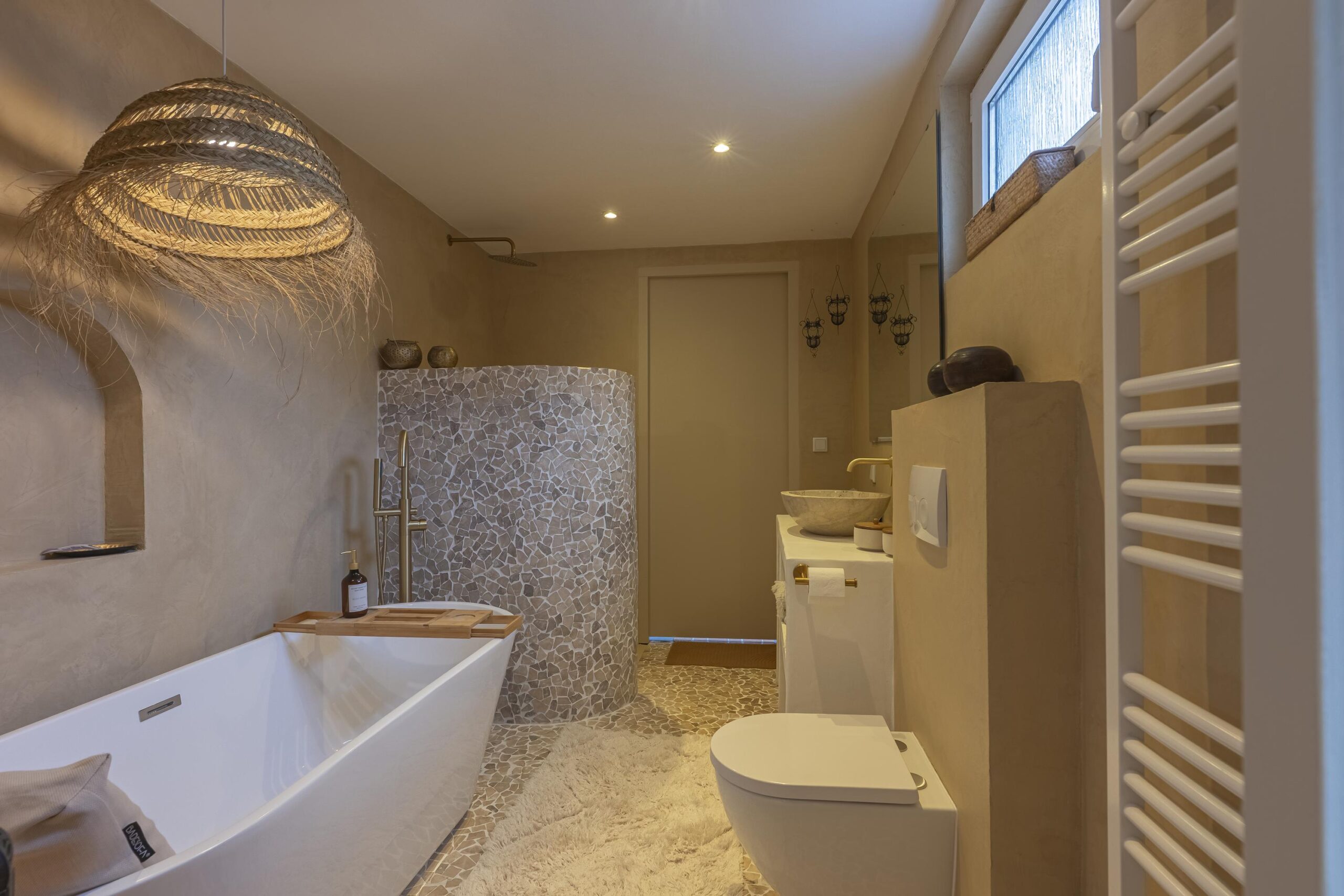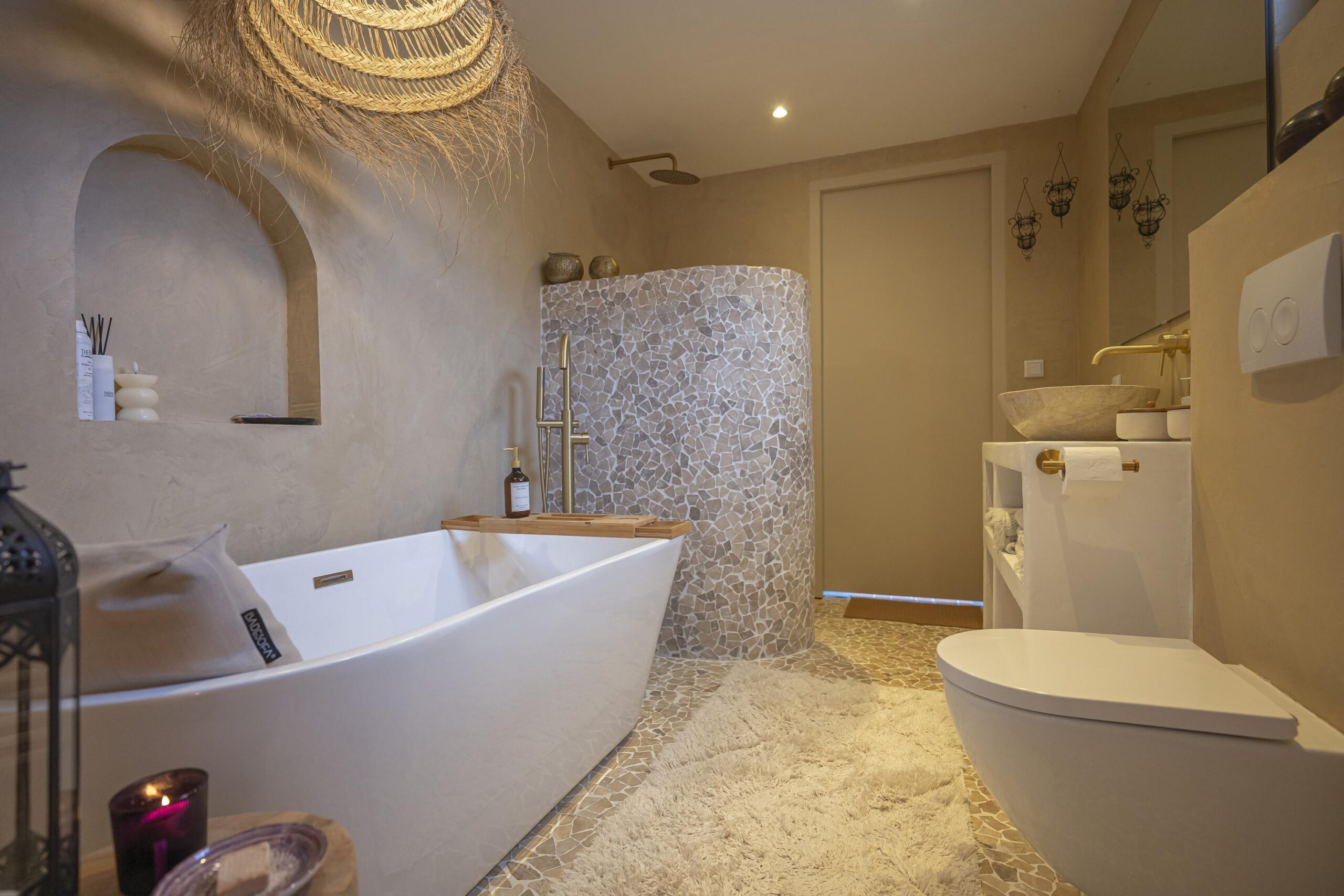 - Badkamervoorzieningen Ligbad, toilet, wastafelmeubel, inloopdouche