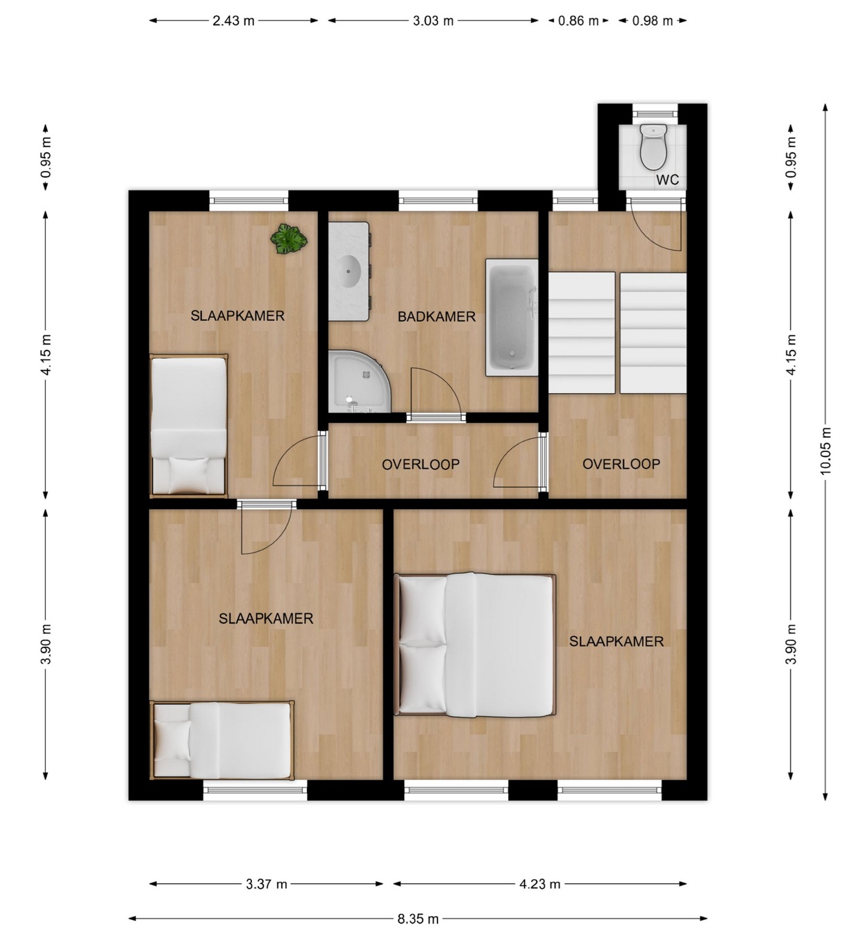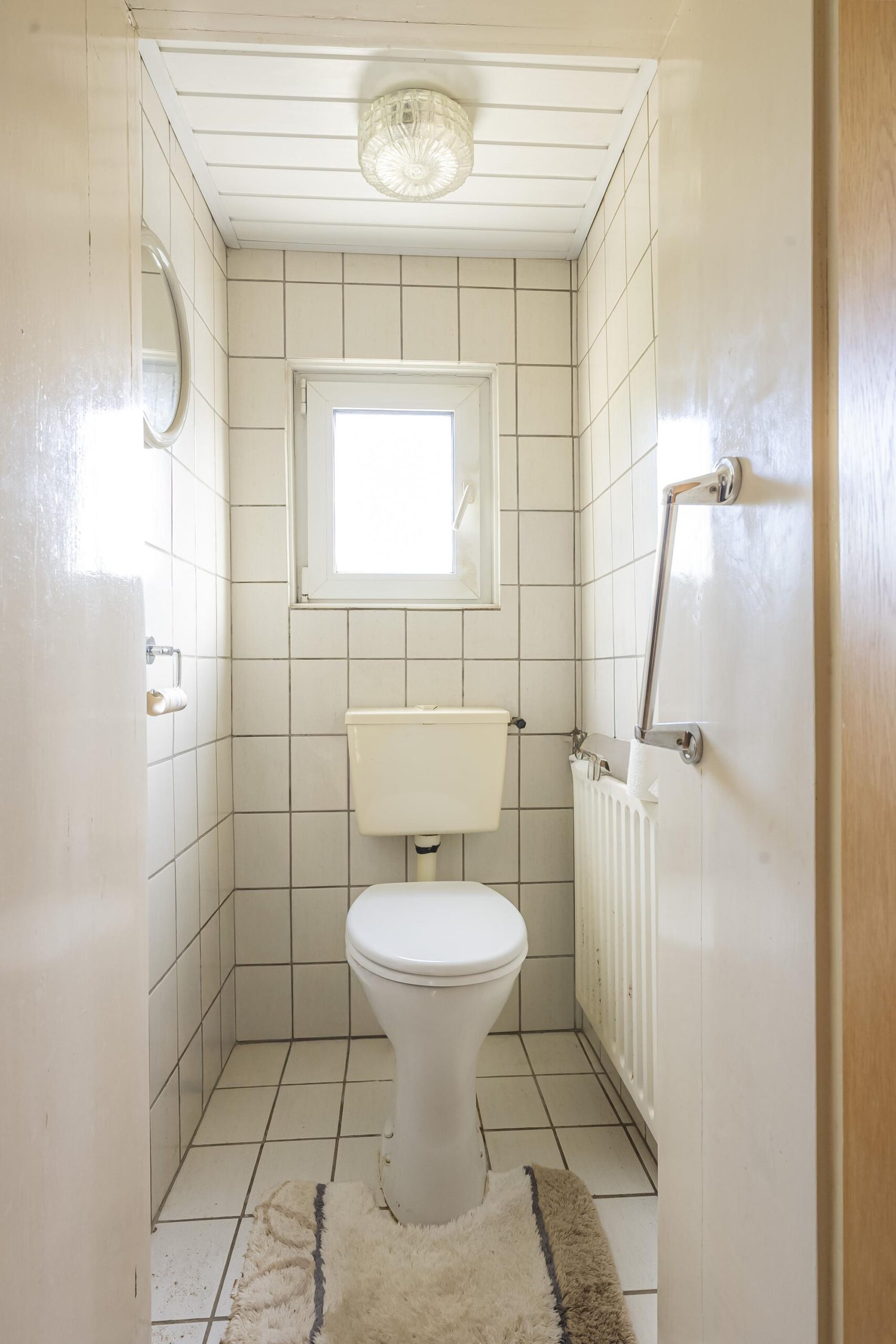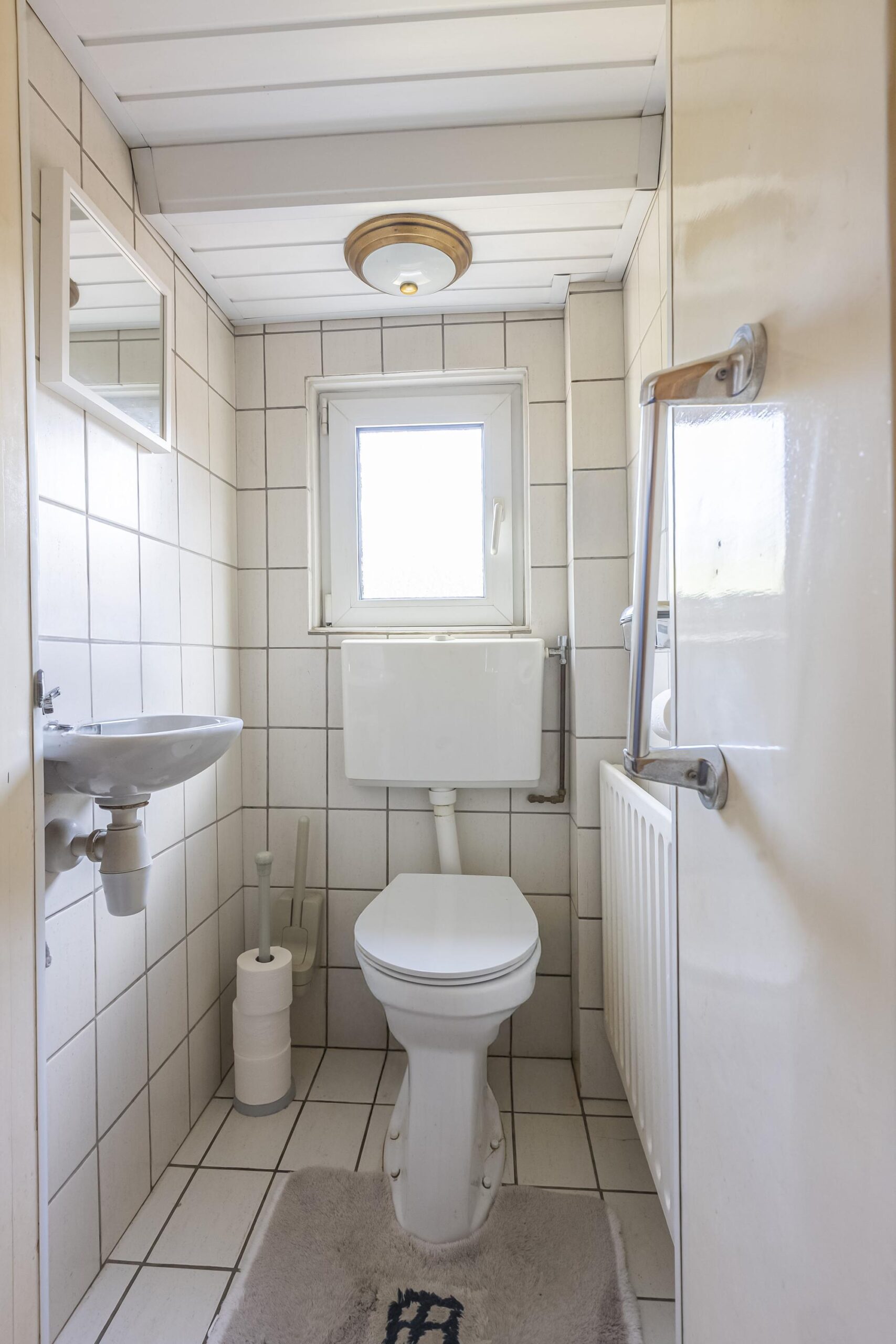 Eerste verdieping: halverwege de bordestrap bevindt zich een tweede toilet. Middels de overloop zijn de drie slaapkamers bereikbaar, allen met laminaatvloer, waarbij één slaapkamer toegankelijk is via de andere slaapkamer. De ruime badkamer is geheel betegeld en voorzien van een ligbad, separate douche-cabine en een badmeubel.