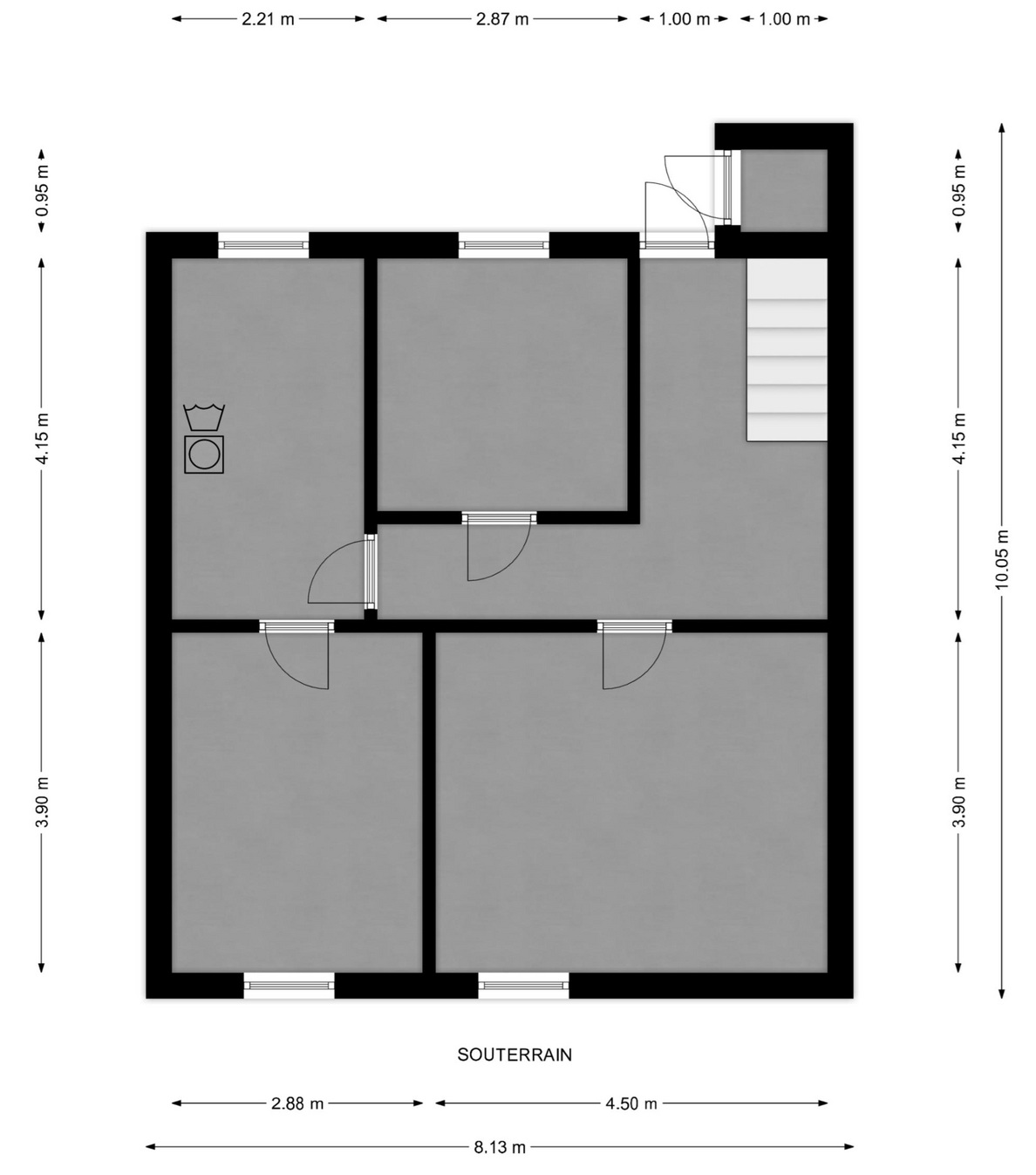 Souterrain: geheel onderkelderd en verdeeld in diverse ruimtes waaronder een provisiekelder, opslag, werkplaats, waskelder en voorzien van een keukenblok. Vanuit de kelder is de tuin toegankelijk. Deze is diep en voorzien van terras, grasveld, een berging en de een achterom-ingang. Ook is hier de ruime garage met twee kantelpoorten – elektrisch bedienbaar- gelegen die plaats biedt aan twee auto’s. Deze is te bereiken vanuit de achterom gelegen straat.