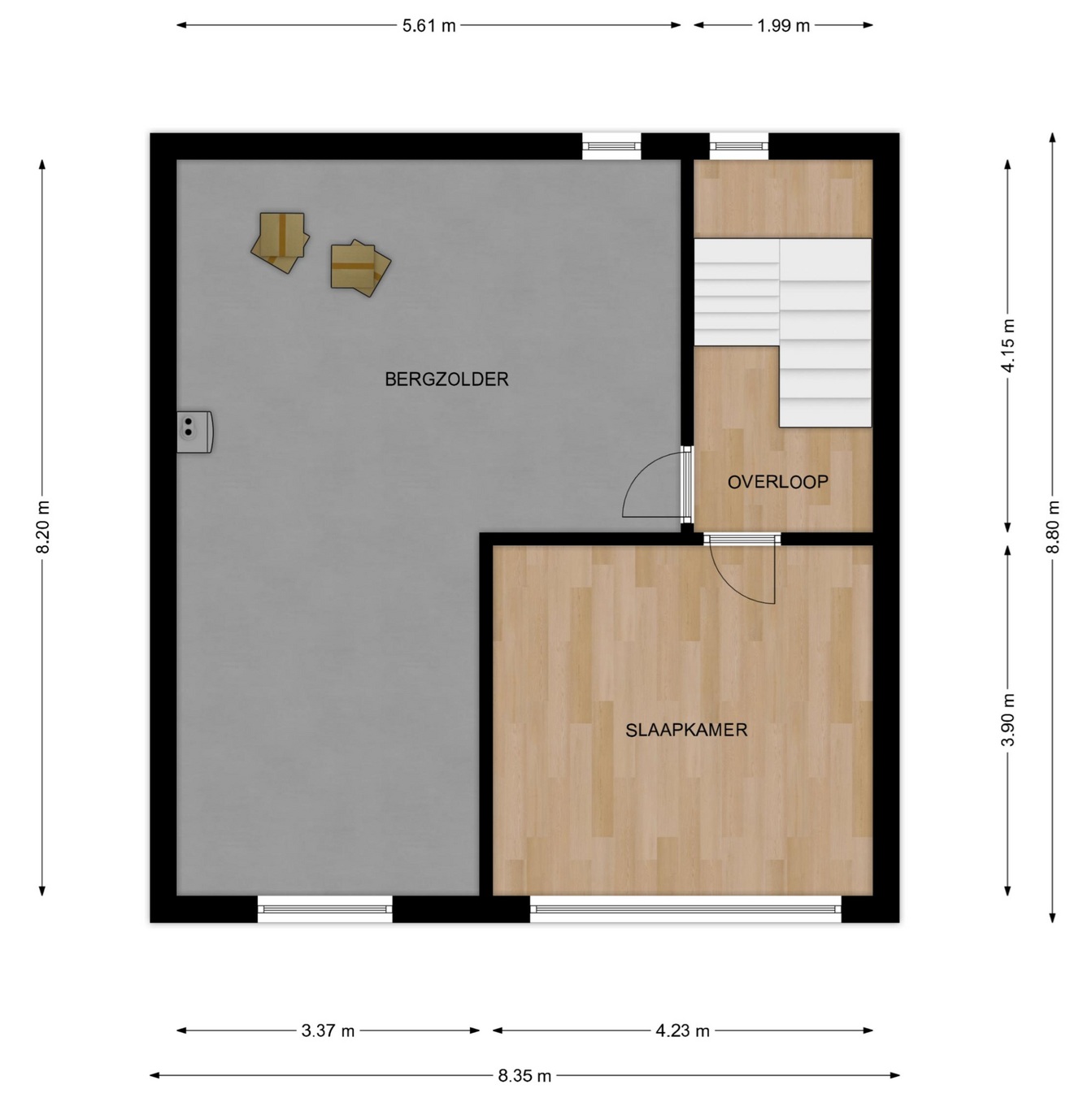 Tweede verdieping: vaste trap naar de de zolderverdieping waar een mansardeslaapkamer is gelegen en een riante bergzolder met legio mogelijkheden.