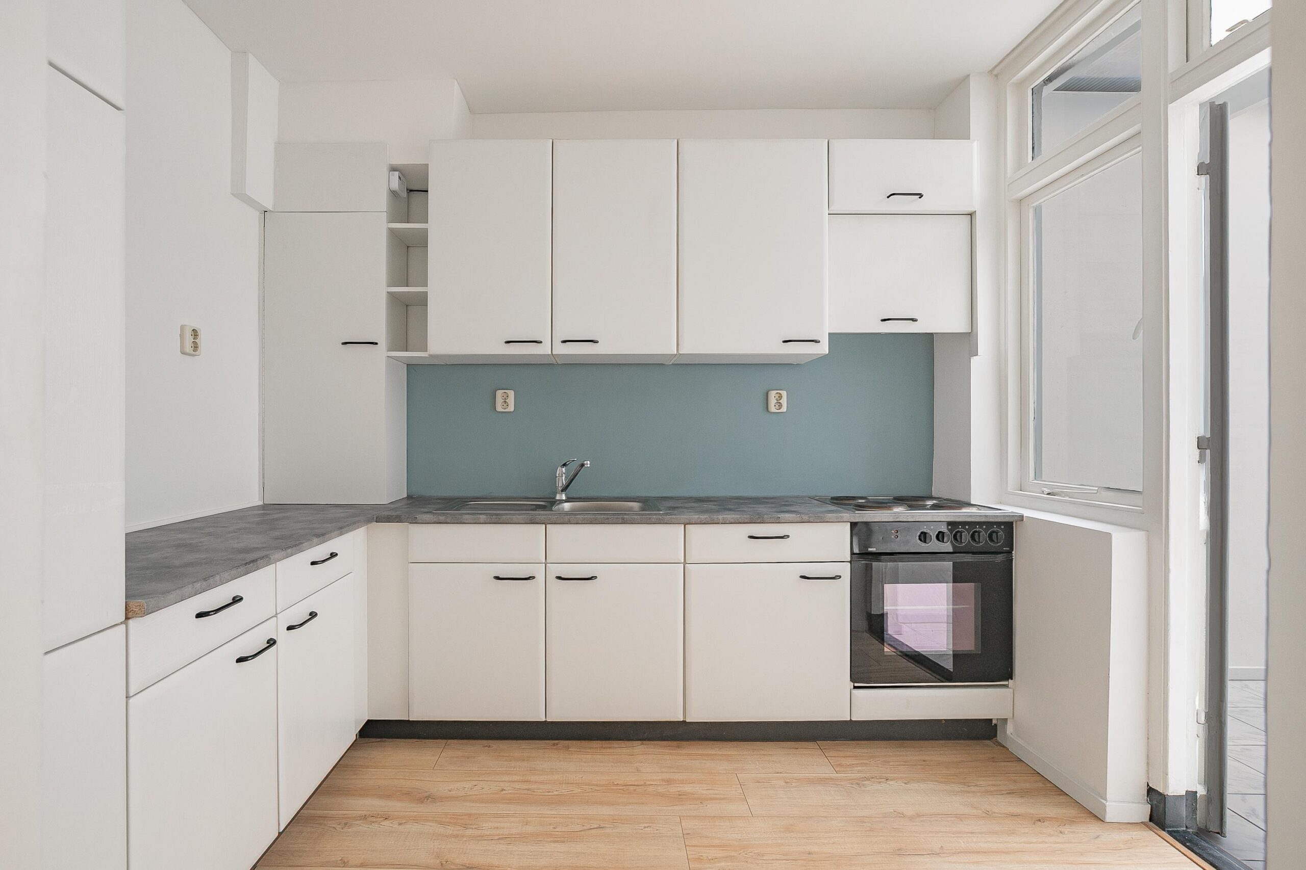 elektrische kookplaat, oven en koelkast. Tevens is hier de CV-ketel gesitueerd.