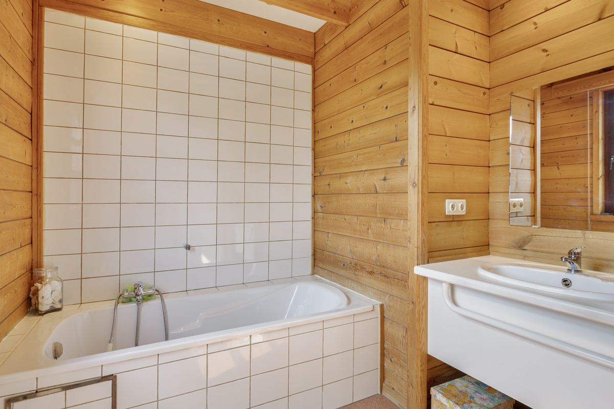 Badkamer met ligbad en wastafel