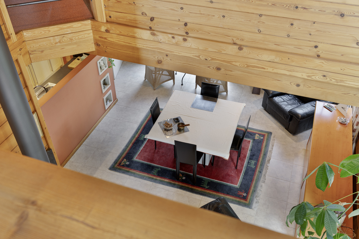 Overloop met vide en zicht op de woonkamer