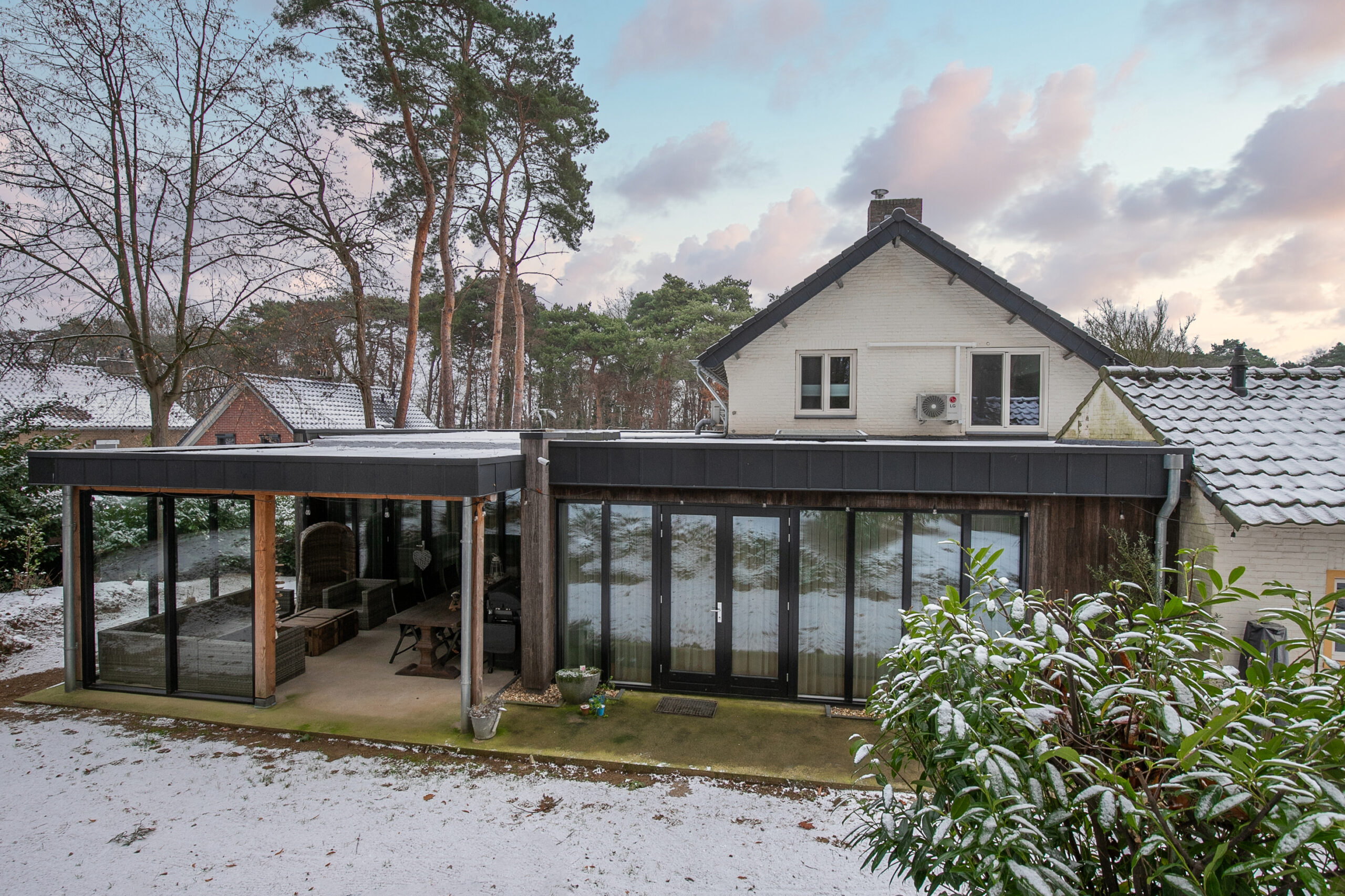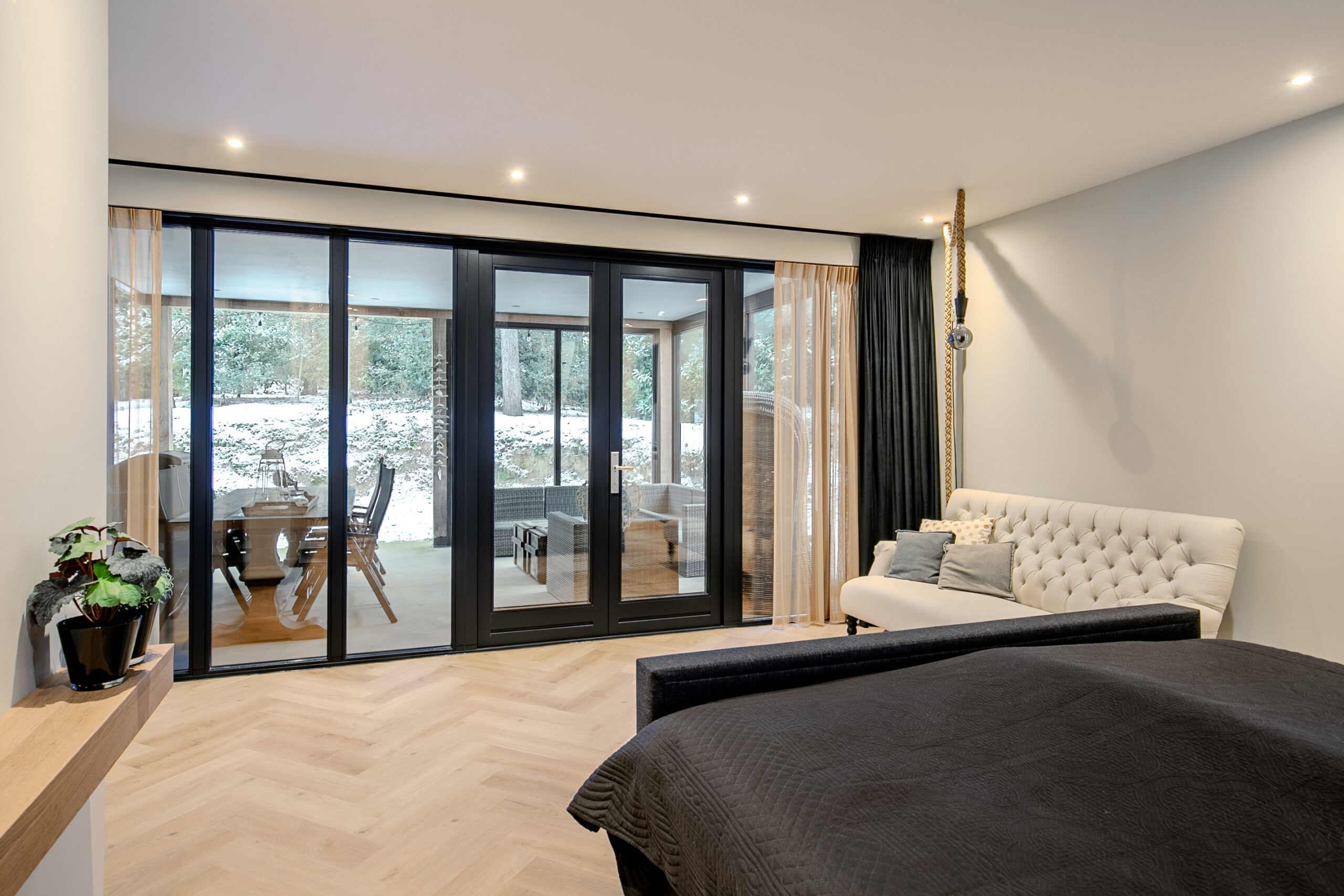 – (Nieuwe) aanbouw voorzien van hardhouten kozijnen met HR+++ glas
