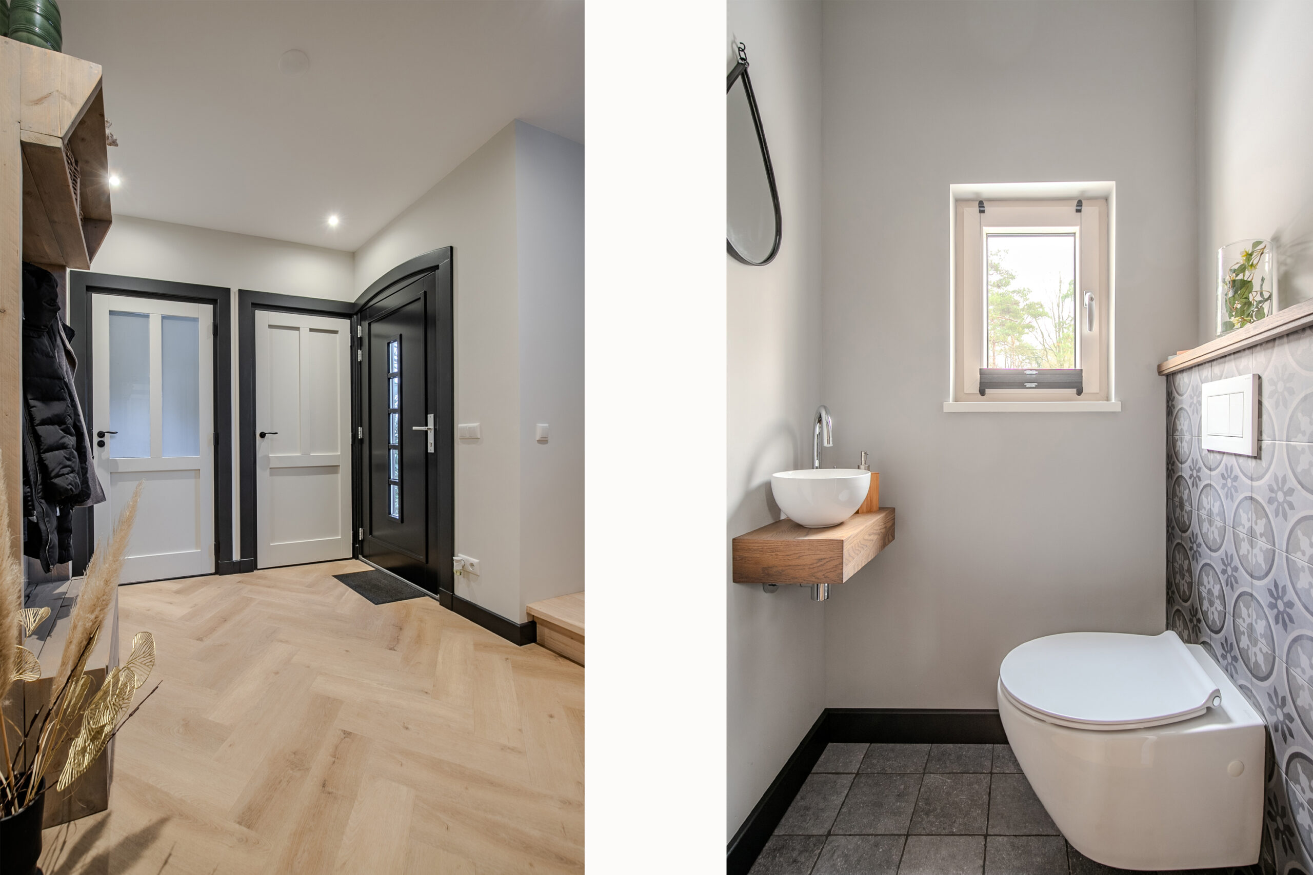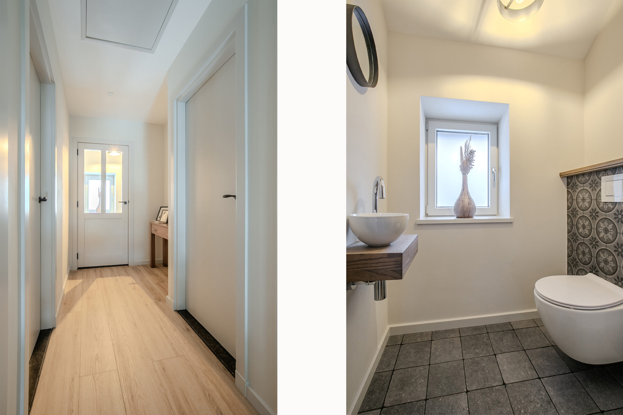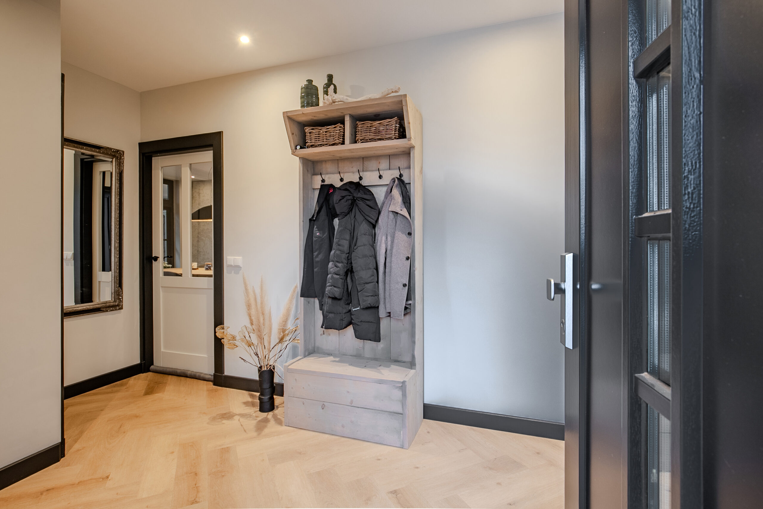 Bij binnenkomst wordt u verwelkomd in een ruime en stijlvolle hal, die direct de sfeer van de woning weerspiegelt: modern, warm en tot in detail verzorgd. Vanuit hier loopt u door naar de eetkamer, een centrale plek in huis waar ruimte, licht en functionaliteit samenkomen.