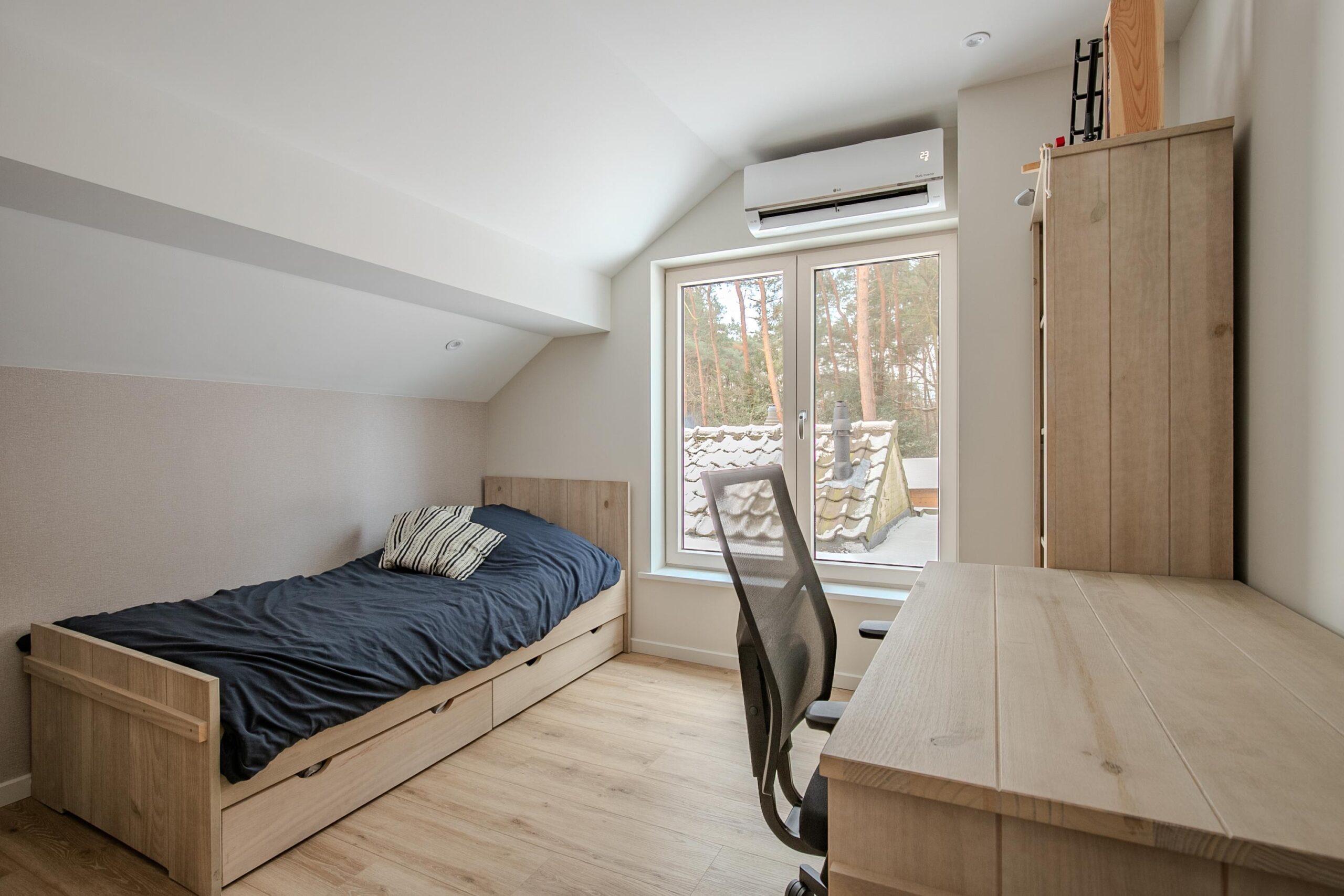 – Twee van de drie slaapkamers op de eerste verdieping zijn ook voorzien van airco
