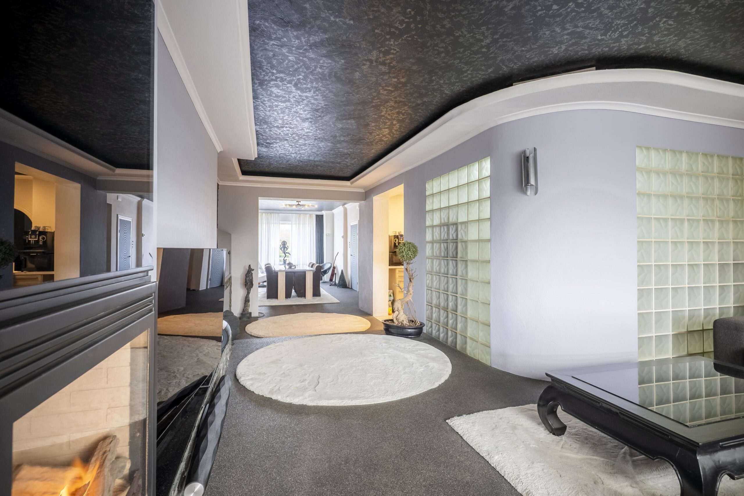 De ruime, uitgebouwde woonkamer/eetkamer met open keuken is groot ca. 66 m² en is voorzien van een grindvloer, convectorput, sierhaard, airconditioning en een schuifpui welke toegang biedt tot de achtertuin.