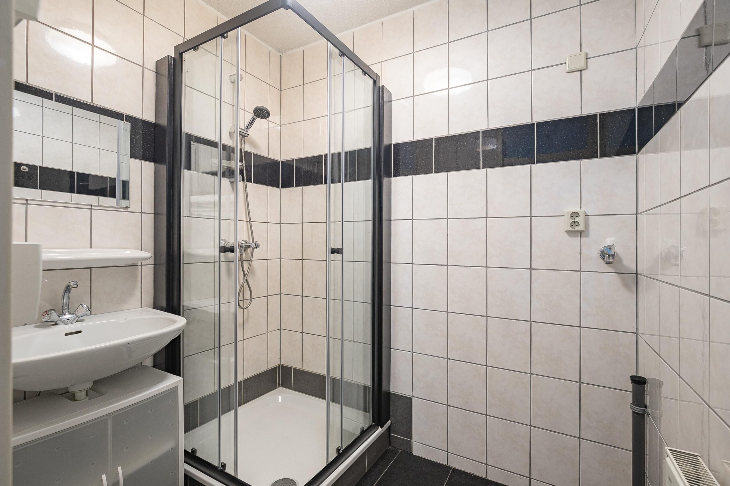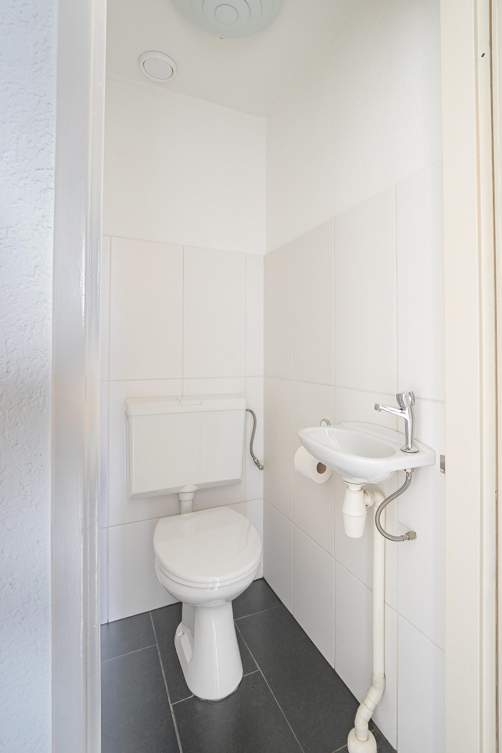 De geheel betegelde badkamer (ca. 4 m²) is uitgerust met een douche met douchedeuren, wastafel met ondermeubel en de witgoedaansluitingen. Het toilet is separaat gelegen naast de badkamer, dit is prettig wanneer u gasten ontvangt. Daarnaast beschikt het appartement over een meterkast met eigen aansluitingen voor gas, water en elektra en een eigen Nefit combi-CV/HR-ketel (2017, huur via Hesi, € 32,22 p/m).