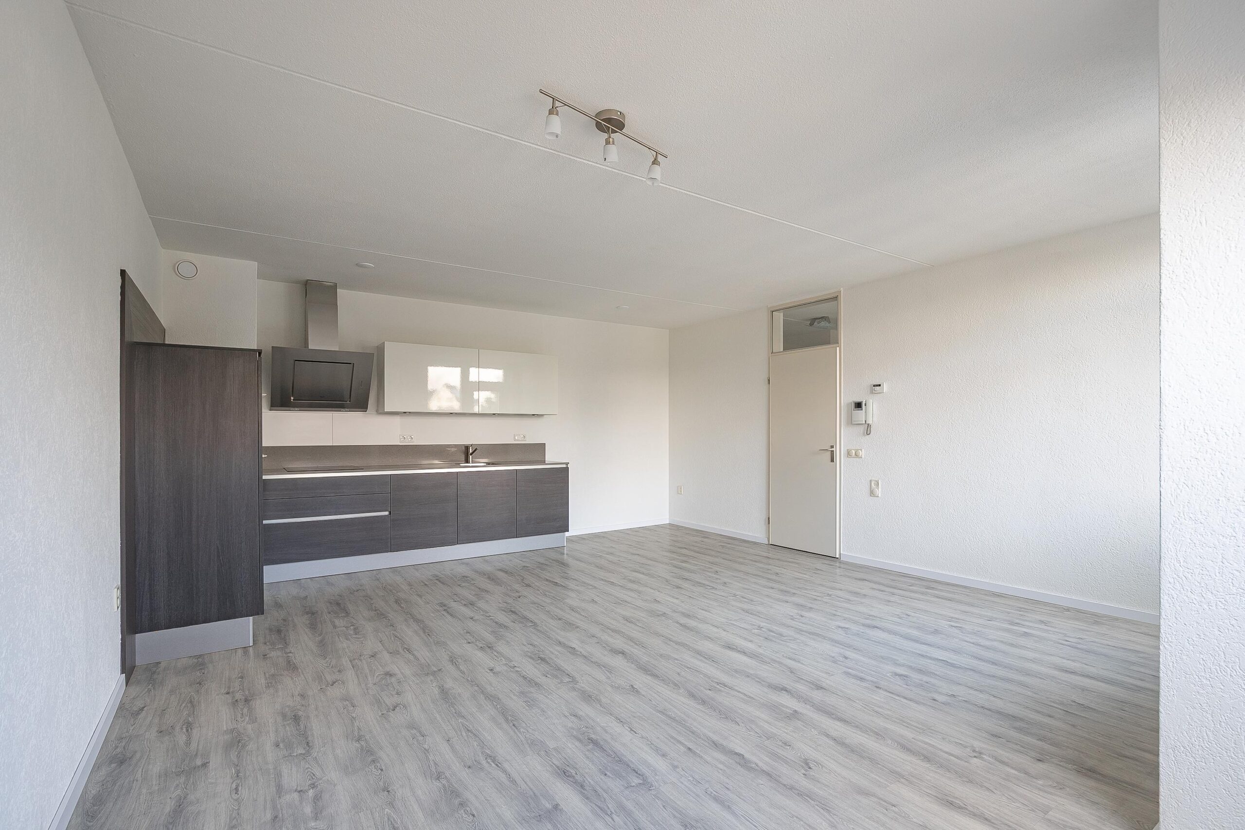 Ruime verdeelhal met toegang tot meerdere vertrekken, waaronder de lichte woonkamer met open leefkeuken (ca. 31 m²). De woonkamer biedt diverse indelingsmogelijkheden en is uitgerust met een moderne keuken voorzien van een granieten werkblad en Whirlpool-apparatuur: inductiekookplaat, design afzuigkap, oven, separate magnetron, vaatwasser en koelkast. Vanuit de woonkamer is tevens het balkon toegankelijk.