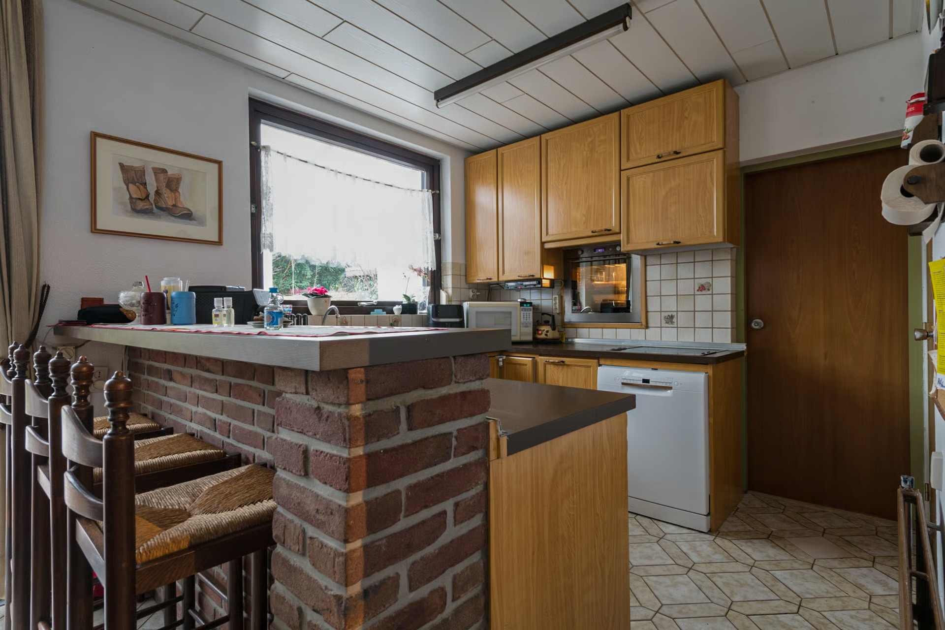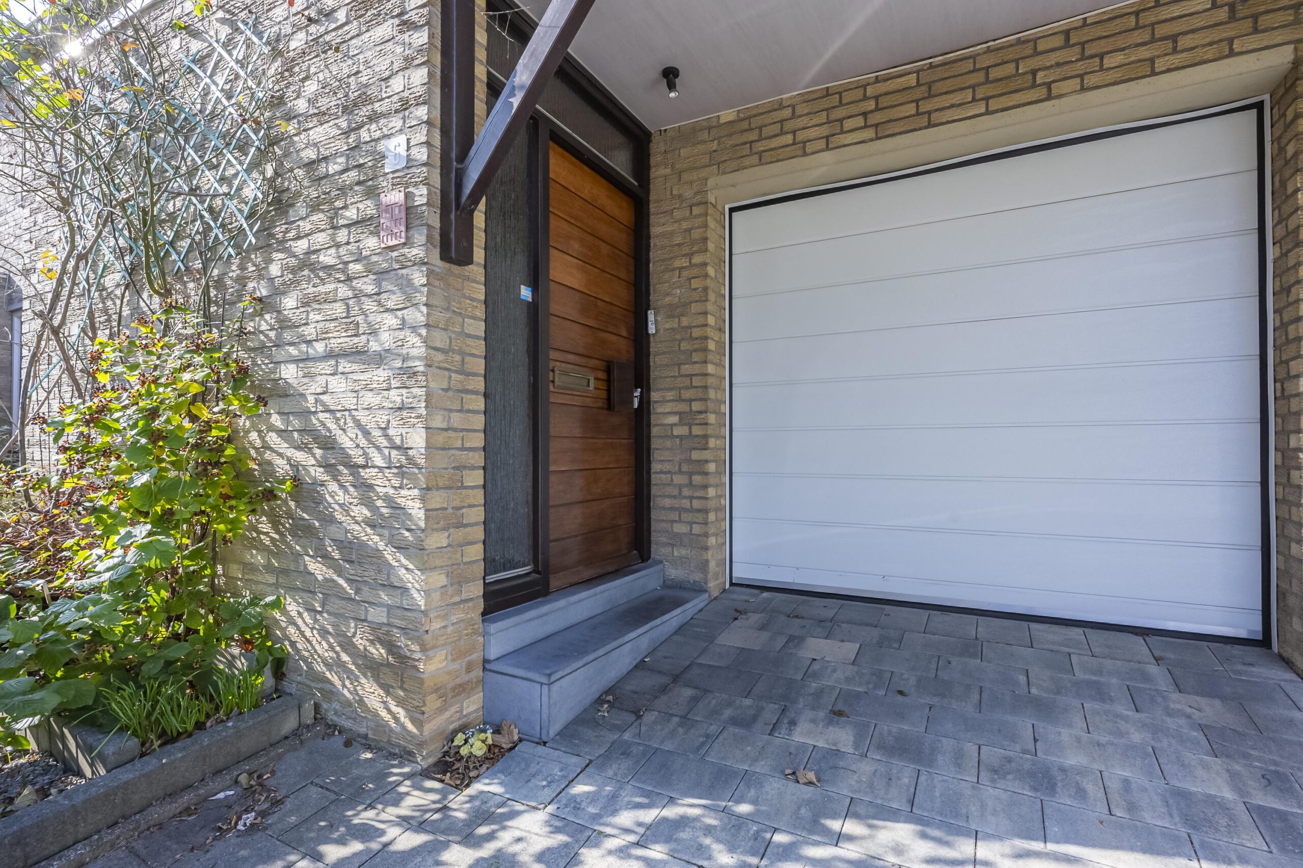 De halfopen keuken met bar en hoekopstelling is uitgerust met diverse inbouwapparatuur en biedt volop werk- en bergruimte. Vanuit de keuken is de praktische bijkeuken bereikbaar, met een wasbak, aansluitingen voor wasmachine en droger en de opstelling van de cv-installatie (huur). Aansluitend bevindt zich de inpandige garage met elektrische sectionaalpoort.