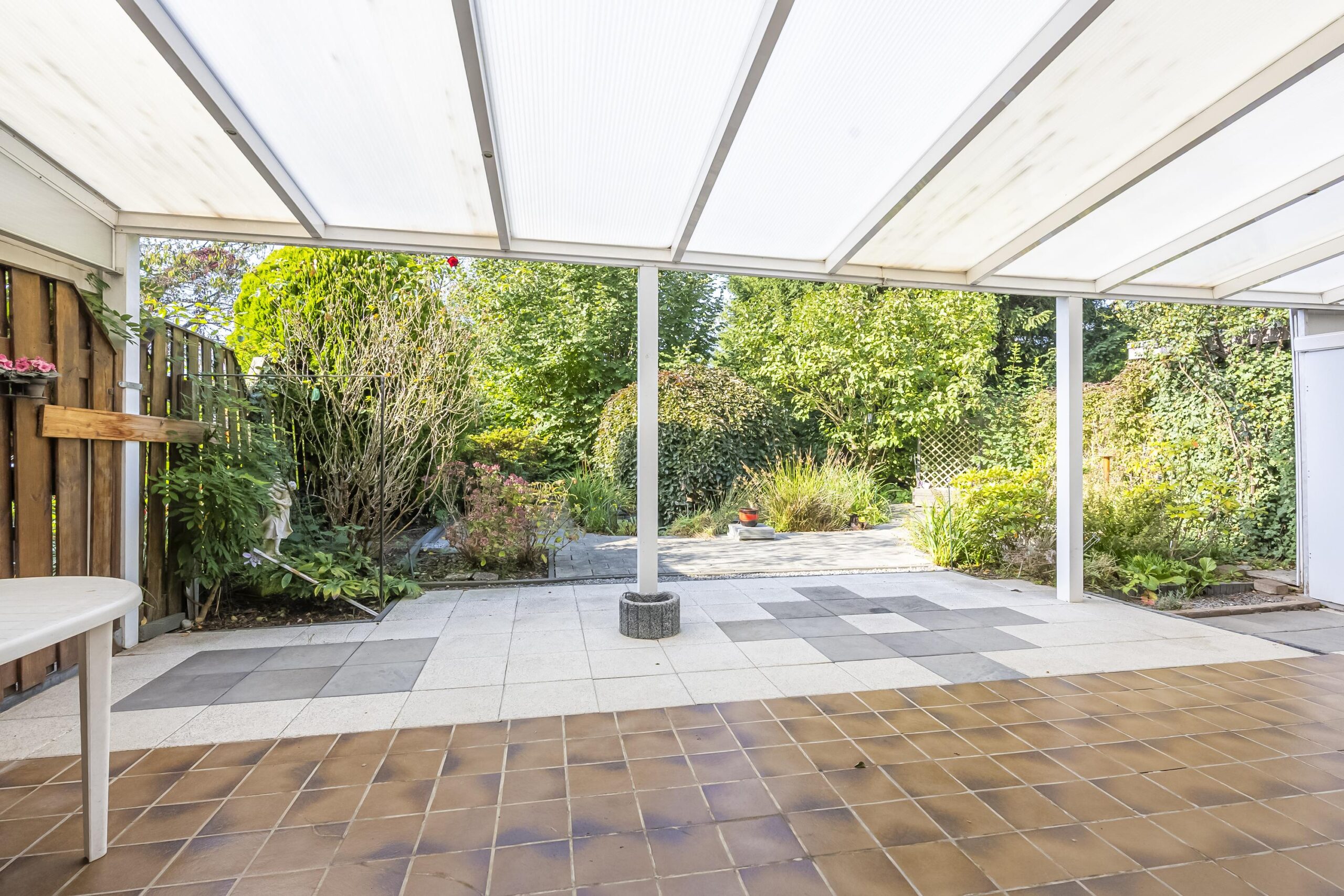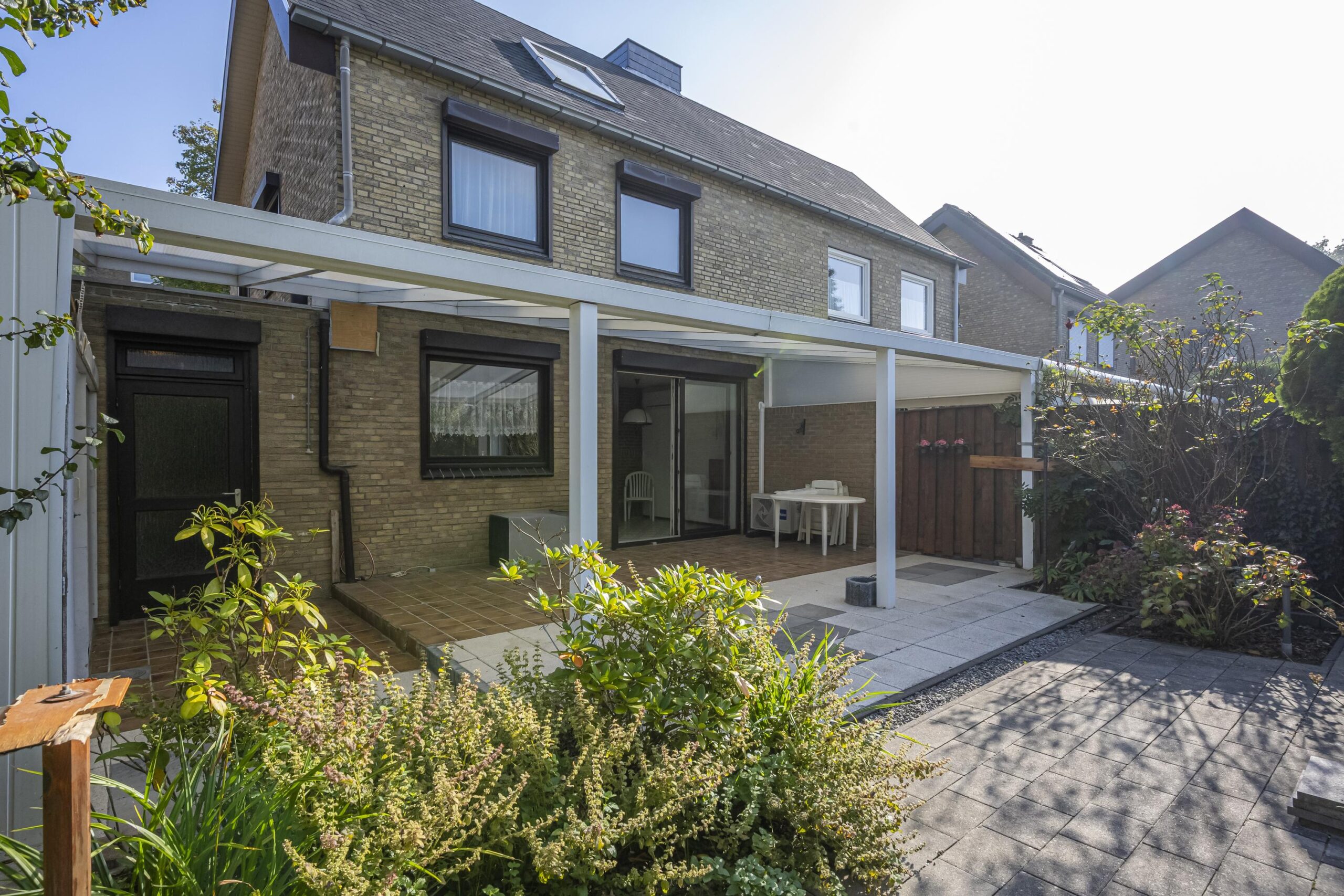 Zowel vanuit de woonkamer als via de bijkeuken is de achtertuin te bereiken. De tuin is op het westen gelegen, grotendeels beklinkerd, onderhoudsvriendelijk aangelegd en biedt veel privacy. Aansluitend aan de woning ligt een royaal, overdekt terras – een heerlijke plek om van het buitenleven te genieten.