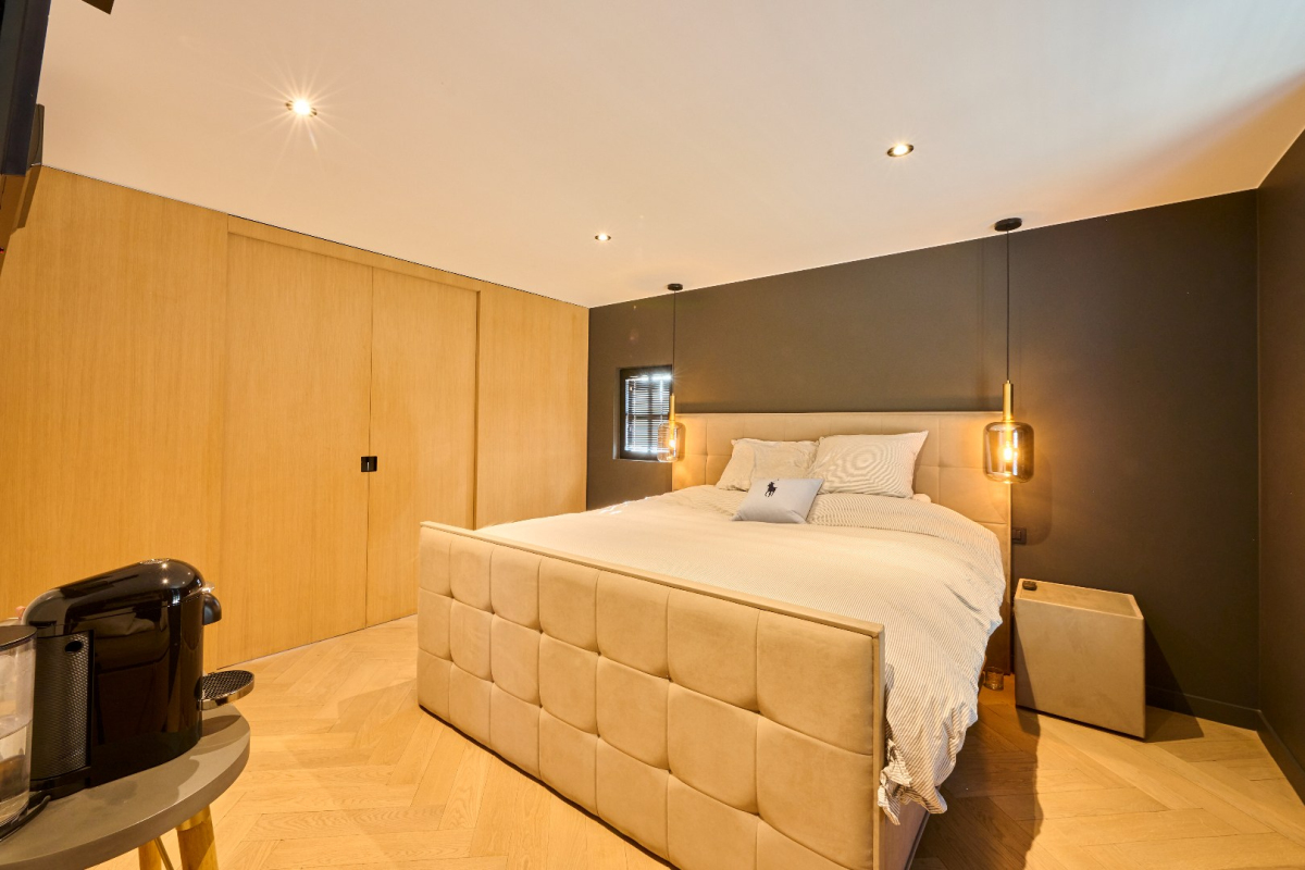 – Master bedroom met ruime dressing en apart toilet, volledig af te sluiten met stijlvolle schuifwanden