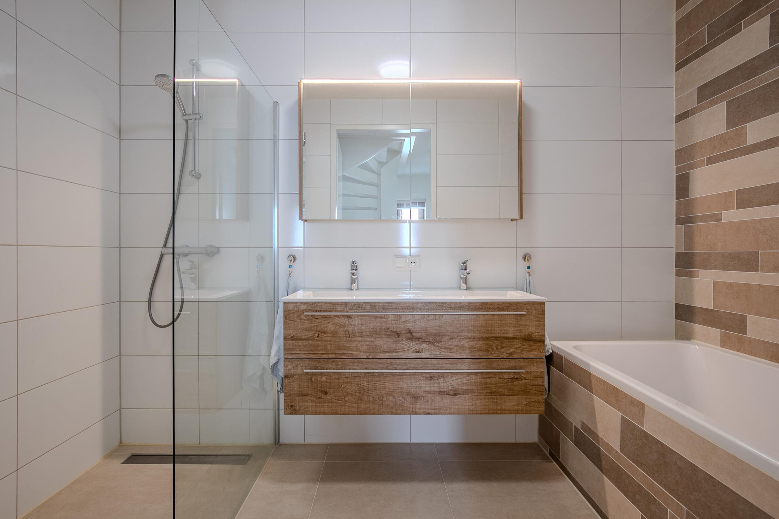 - Badkamervoorzieningen Ligbad, douche, dubbele wastafel