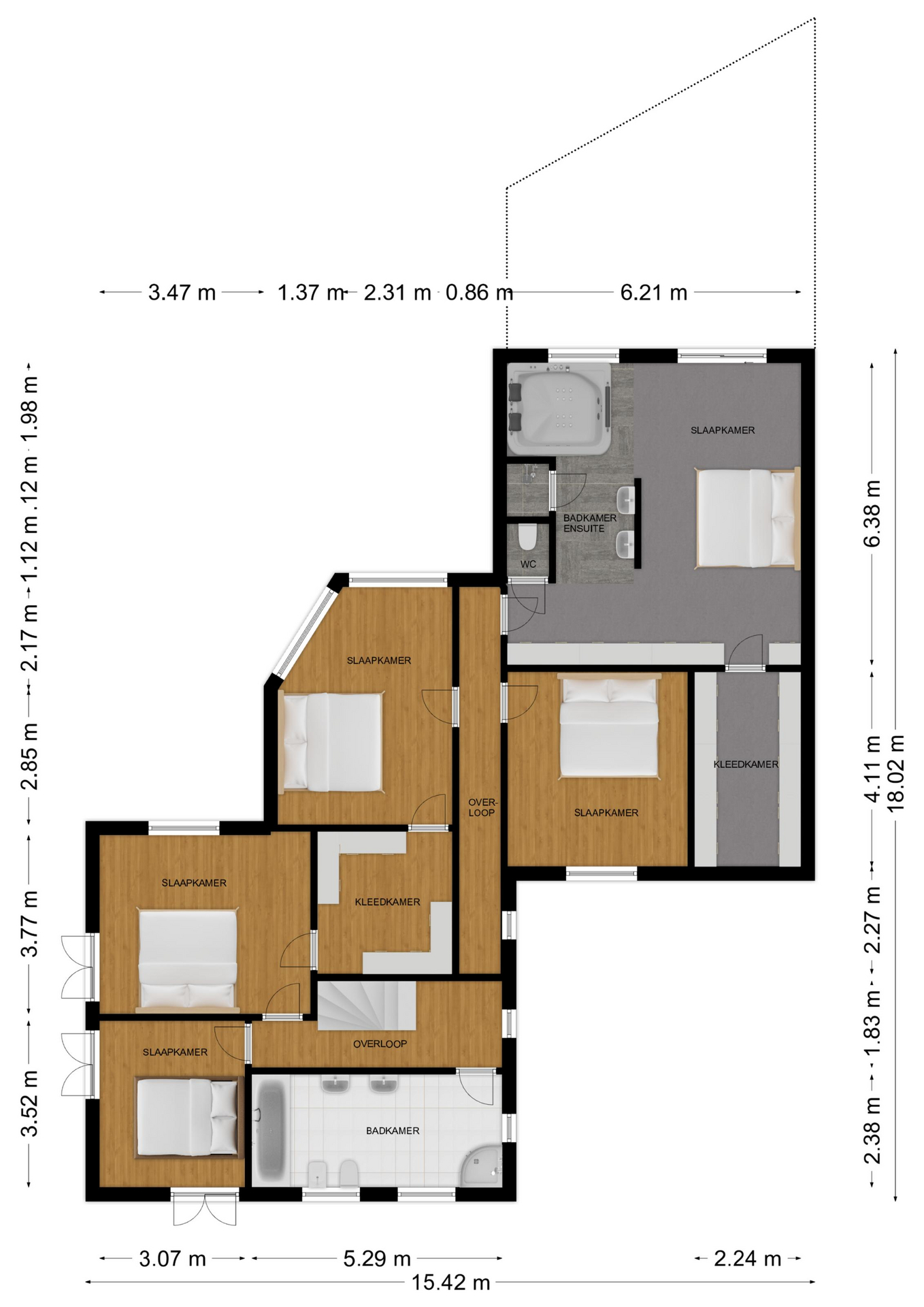 De grootst slaapkamer biedt toegang tot een ruime kleedkamer.