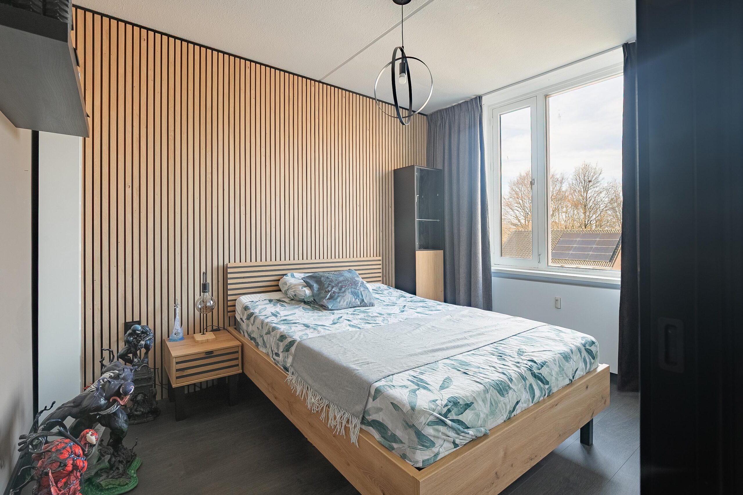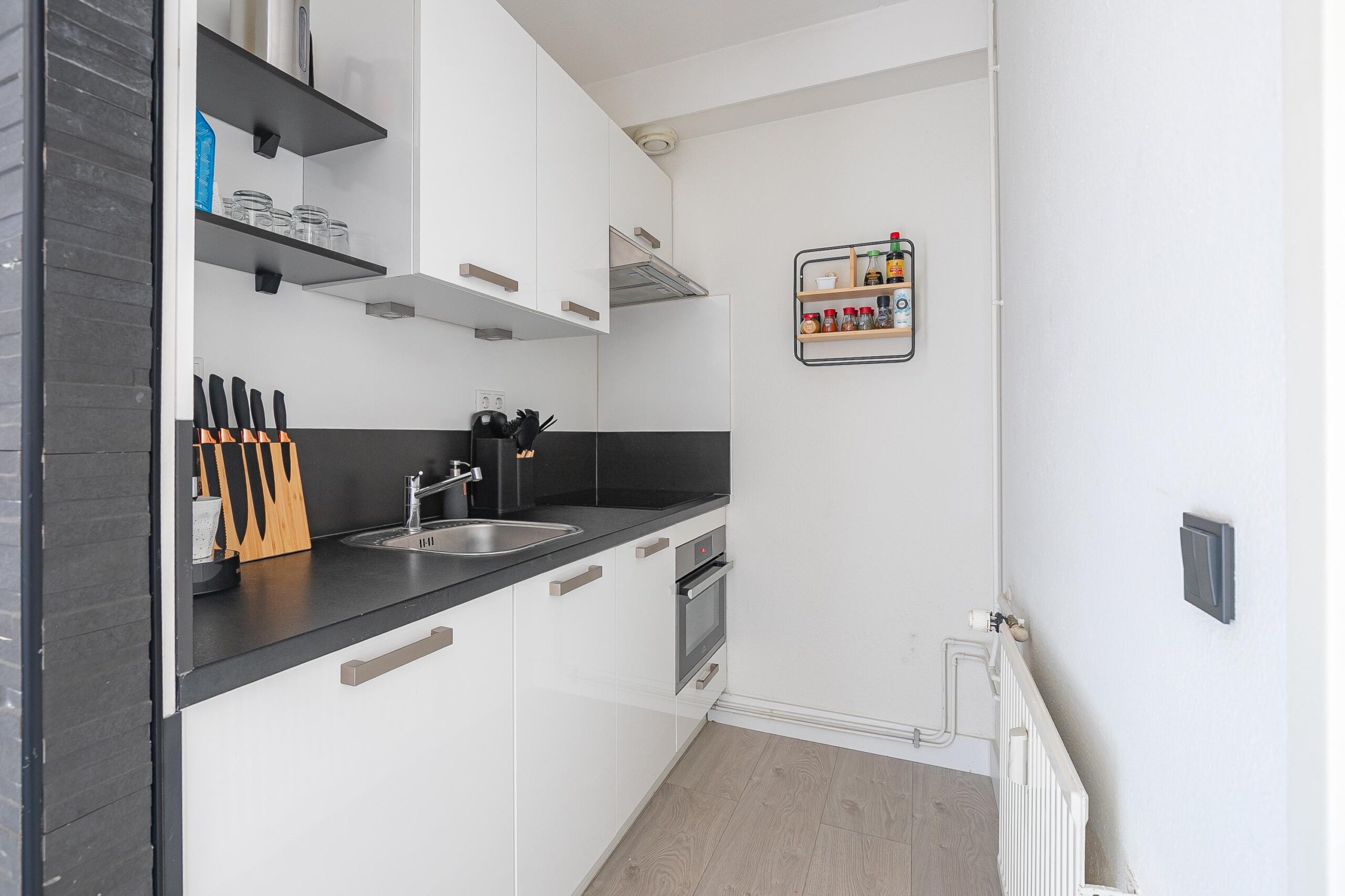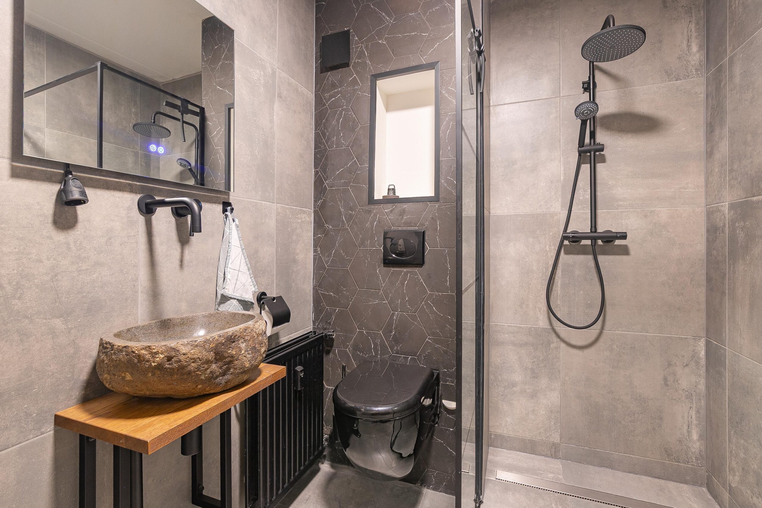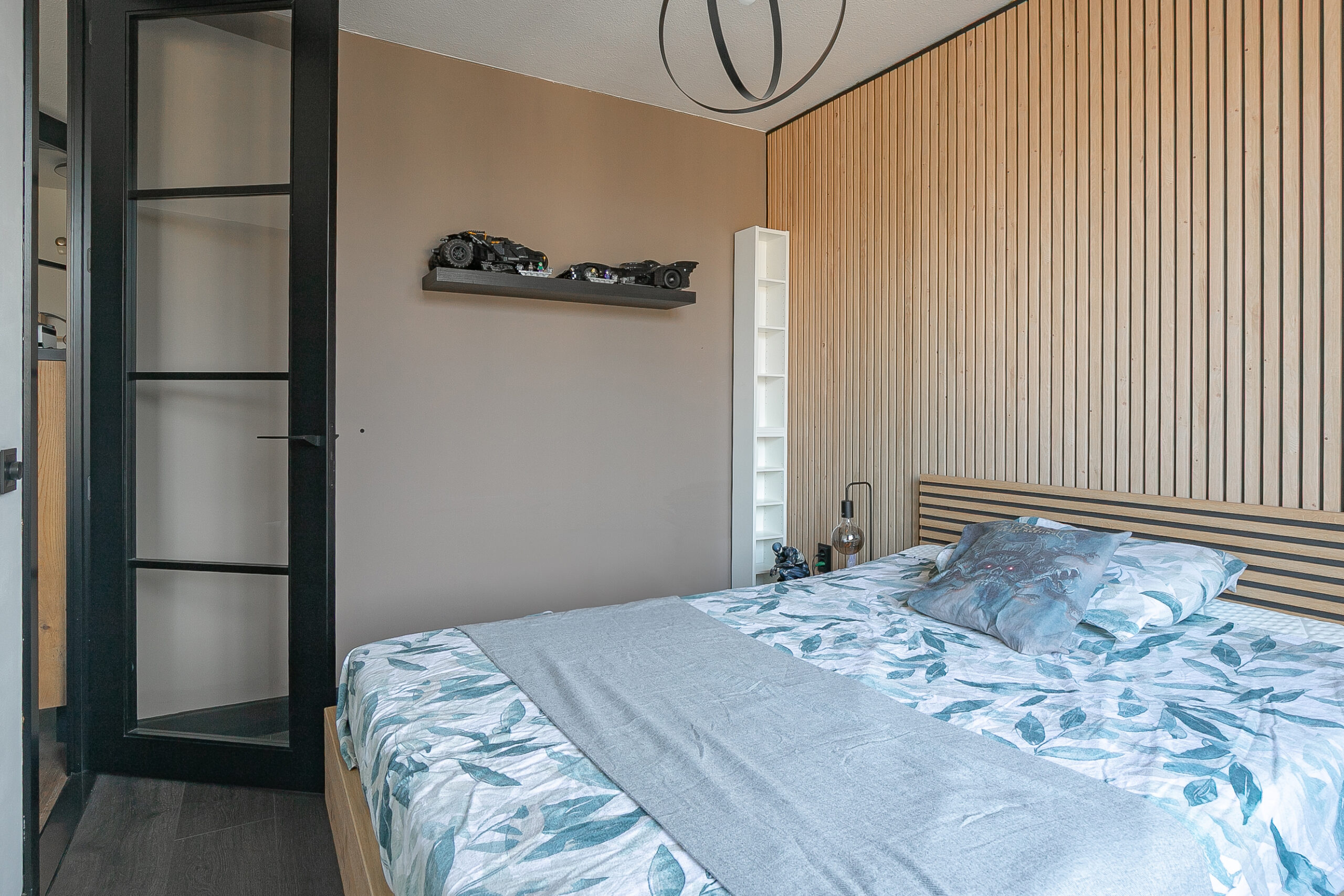 De slaapkamer grenst direct aan de woonkamer en is ruim van opzet. De volledig betegelde badkamer is in 2022 vernieuwd en uitgerust met een douche en een wastafelmeubel. Het toilet bevindt zich eveneens in de badkamer en is modern uitgevoerd. Hier is tevens de boiler opgesteld.