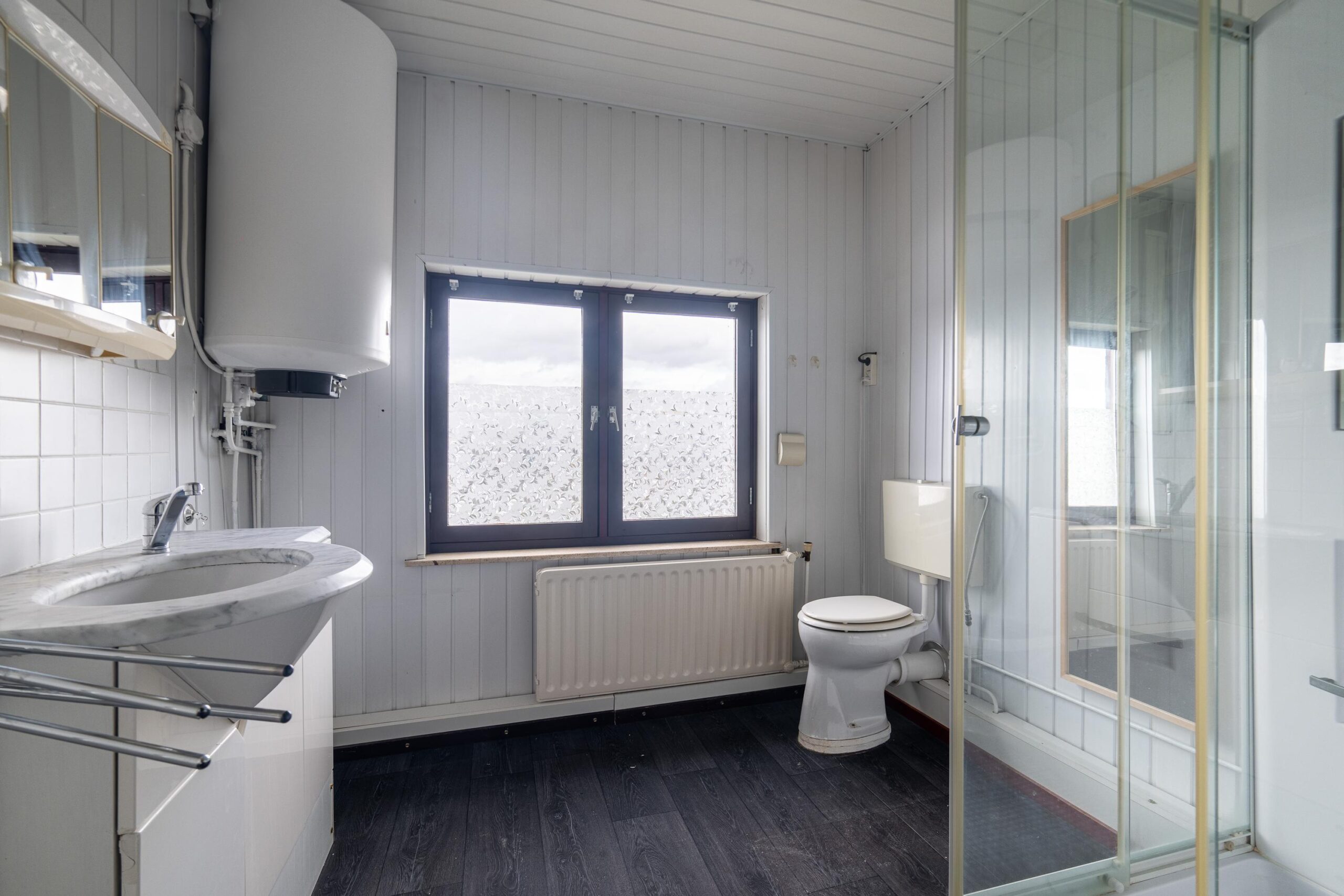 De badkamer is uitgevoerd met een tweede toilet, douchecabine, wastafel, radiator en elektrische boiler (120 liter, huur via Volta). Daarnaast bestaat de mogelijkheid om vanaf de overloop een vaste trap te realiseren naar de zolderverdieping, waarmee eenvoudig een extra (derde) slaapkamer kan worden gecreëerd.
