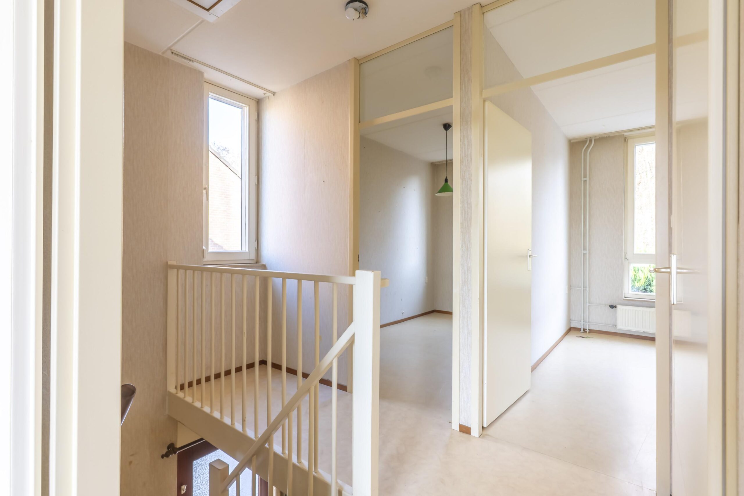 Eerste verdieping: overloop, drie slaapkamers voorzien van novilon en de betegelde badkamer met hoekdouche, vaste wastafel en wasmachine-aansluiting.