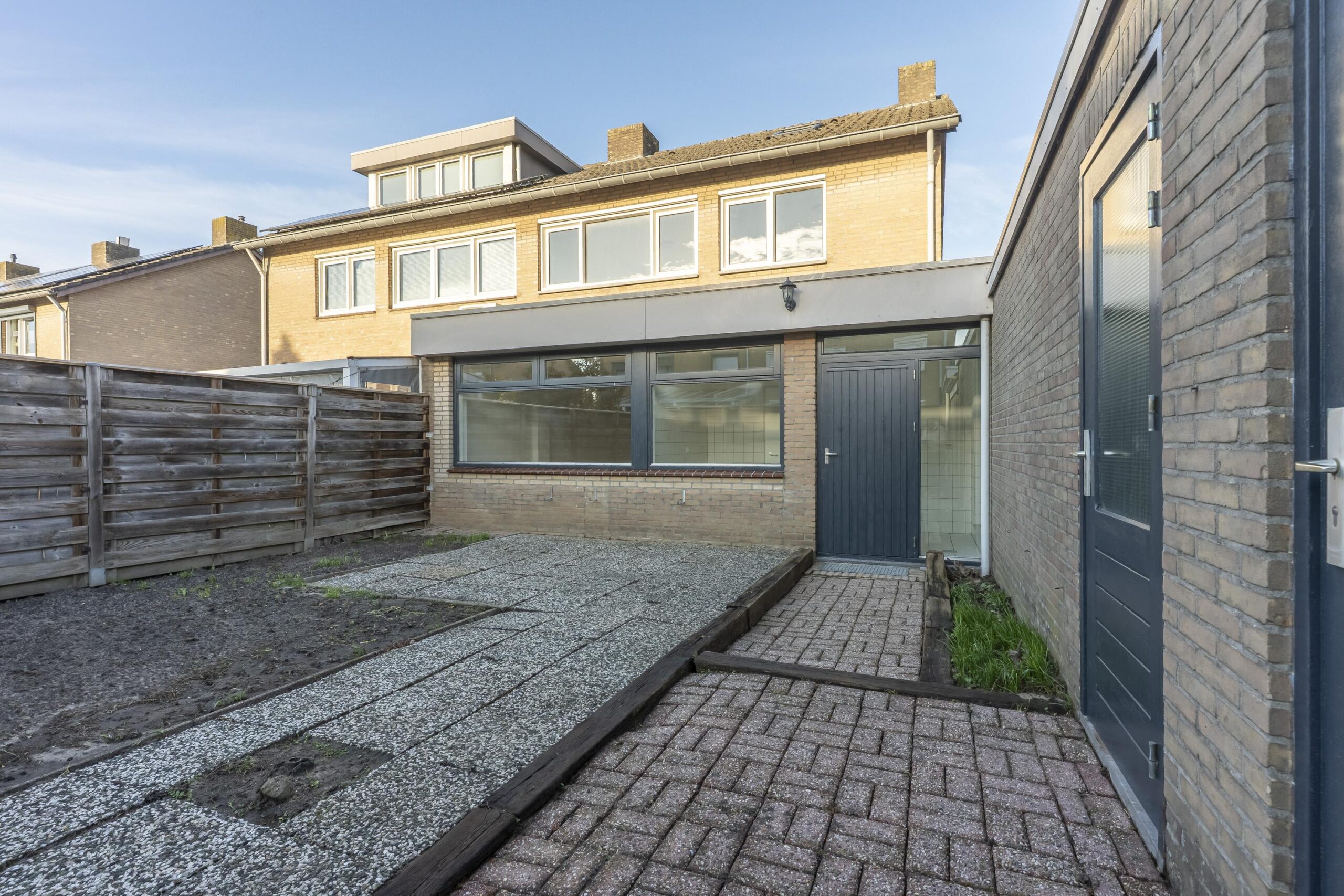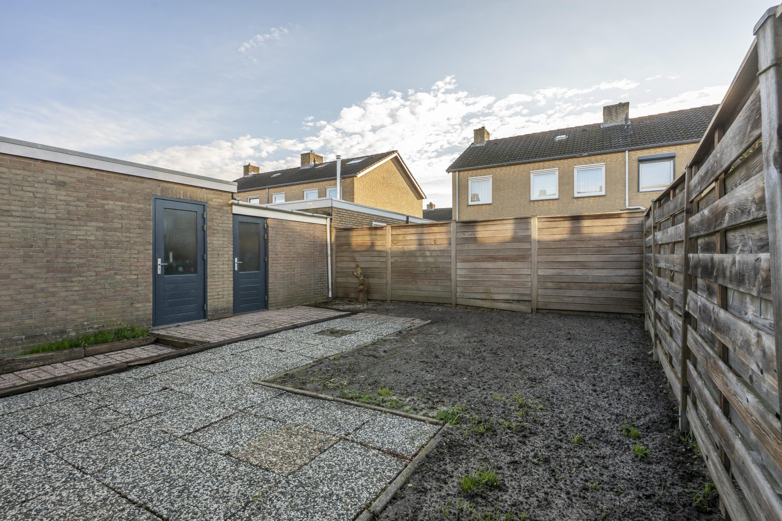 De achtertuin is gelegen op het zuiden en beschikt over een ruim terras. Tevens biedt de achtertuin toegang tot een berging en de garage.