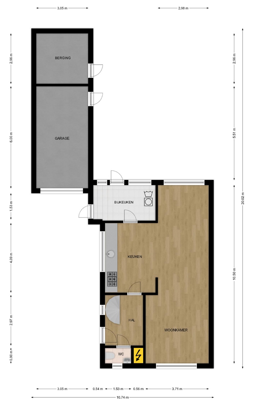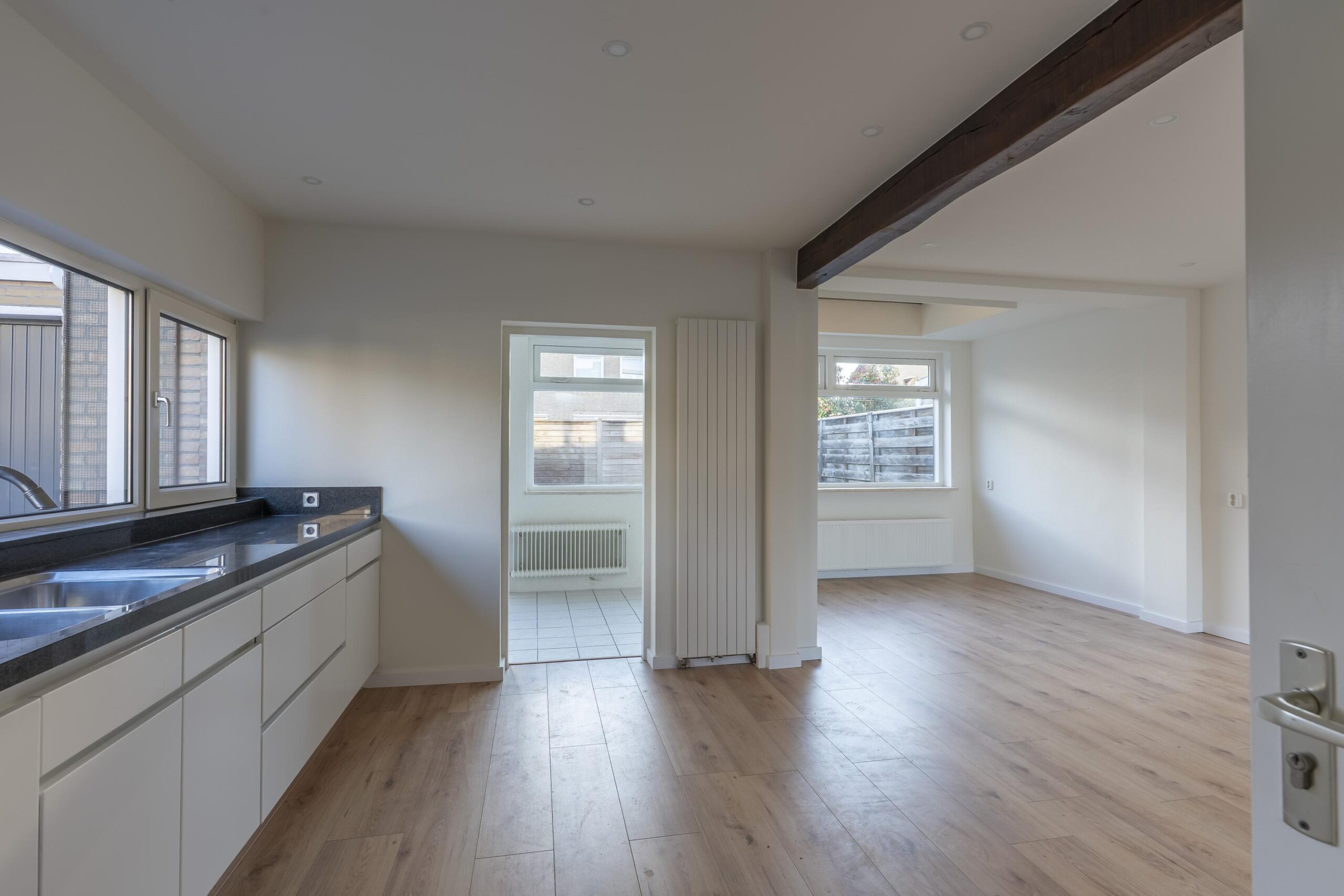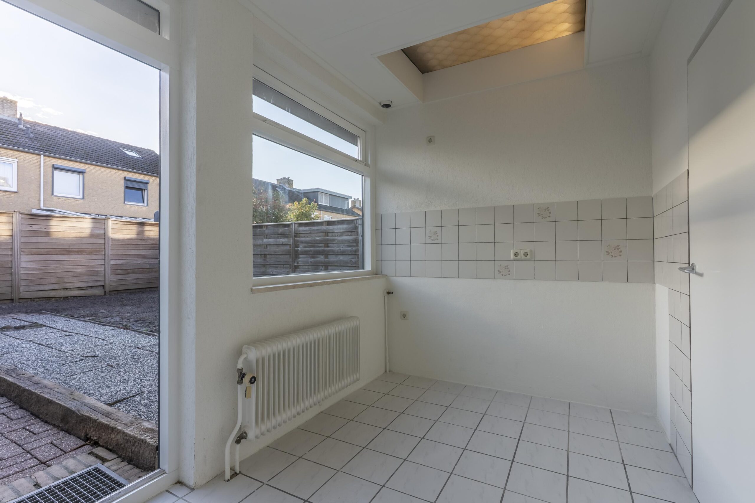Vanuit de keuken is de bijkeuken bereikbaar, alwaar de witgoedaansluitingen zijn gesitueerd. De bijkeuken biedt toegang tot de achtertuin.