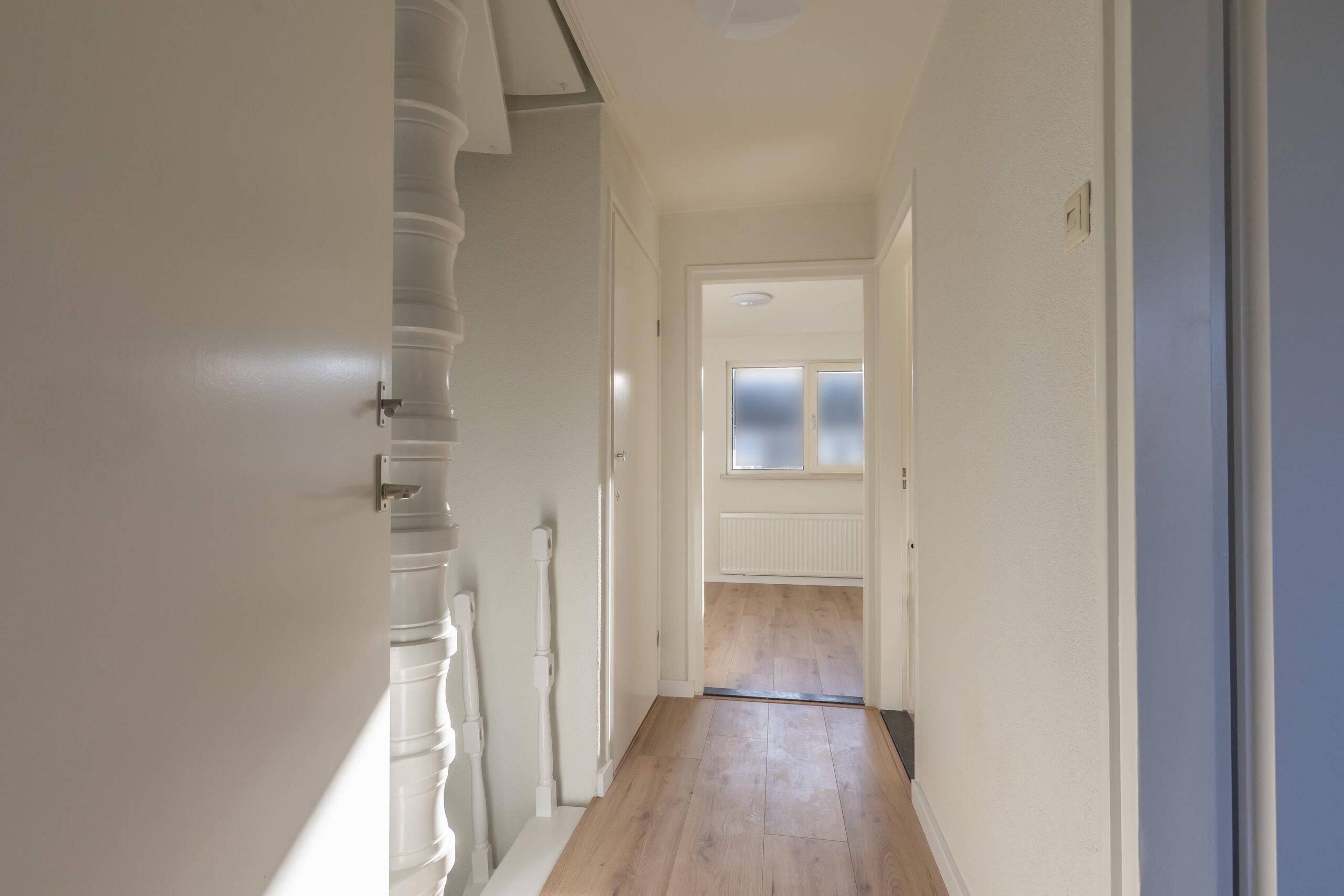 De overloop biedt toegang tot 3 slaapkamers en de badkamer.