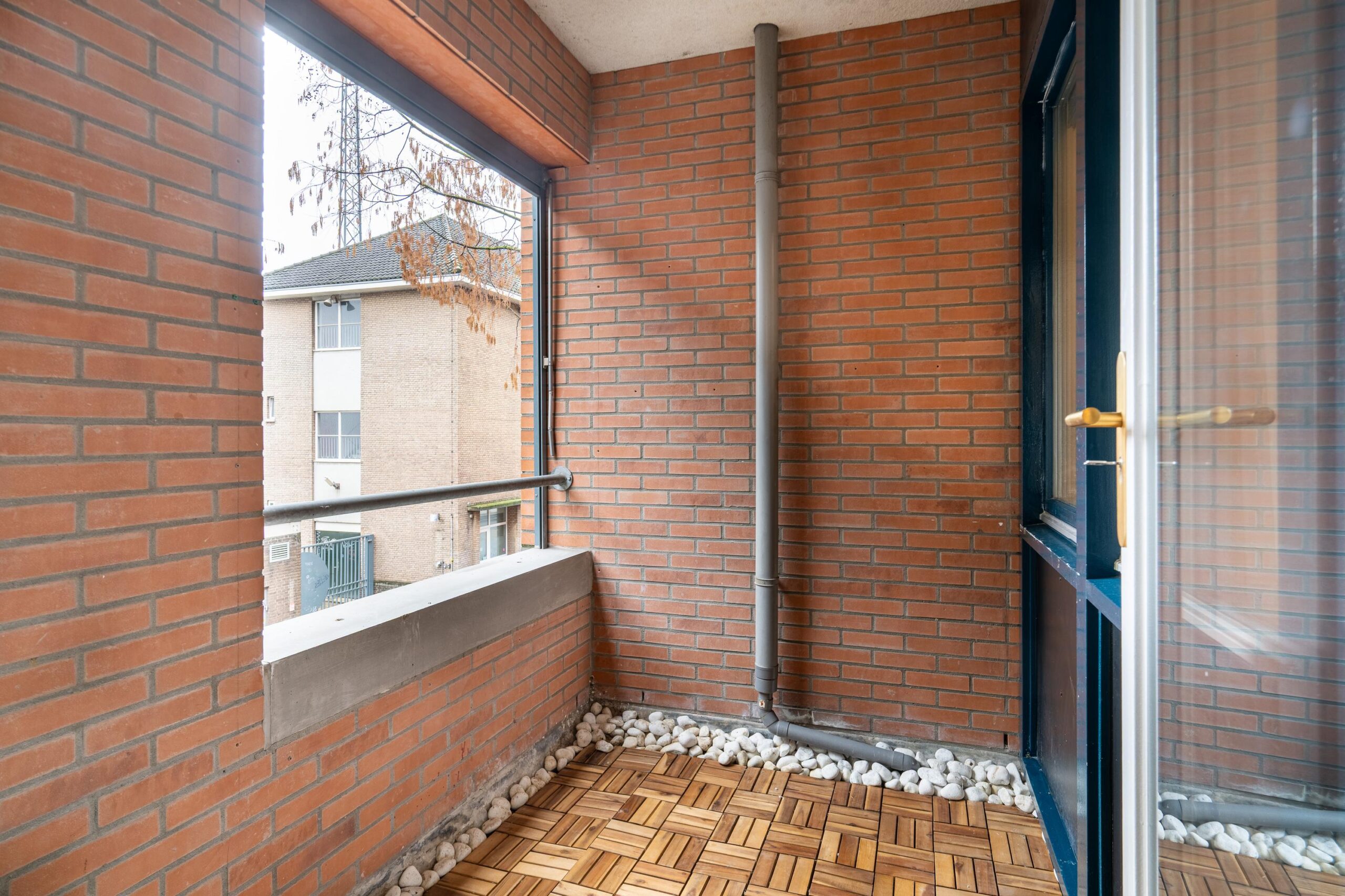 Het balkon is via de woonkamer bereikbaar en is inpandig, waardoor men altijd droog kan zitten.