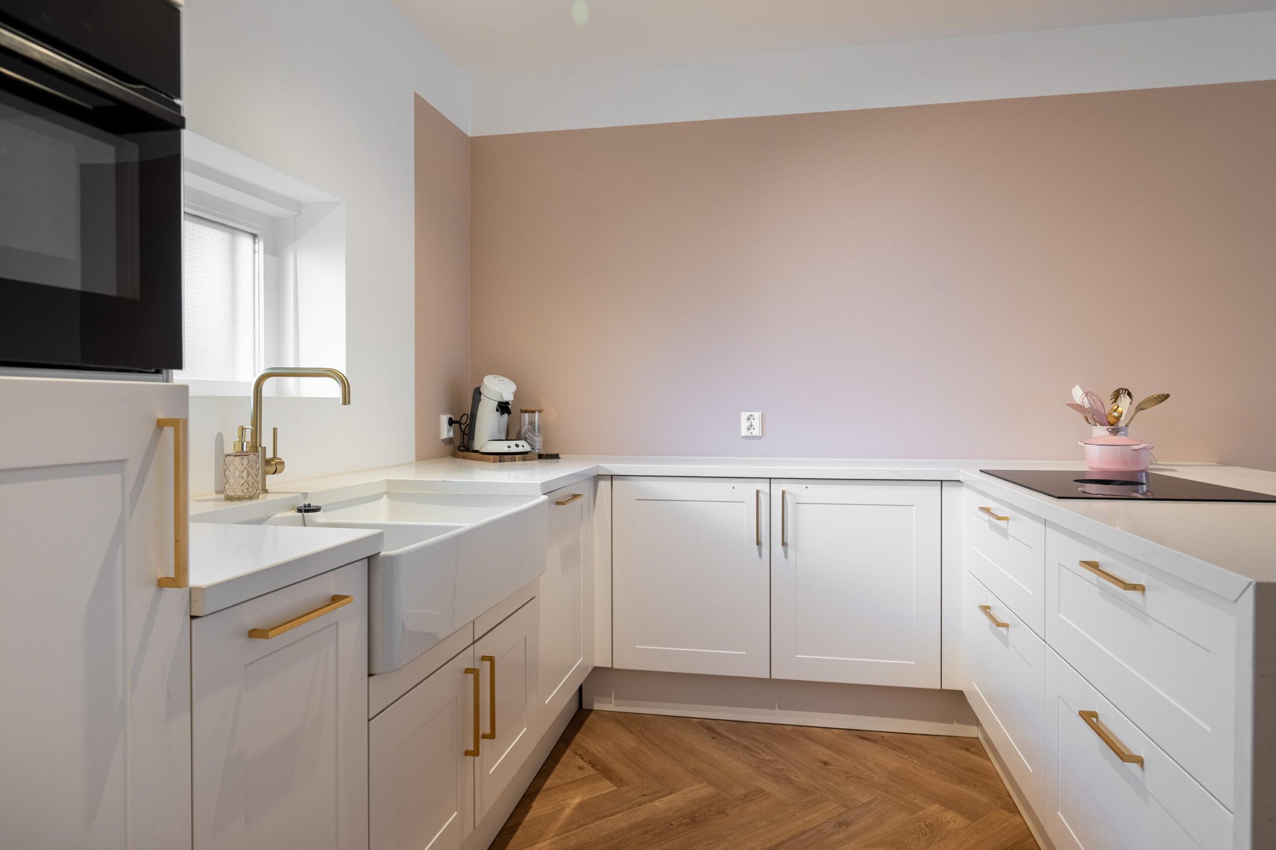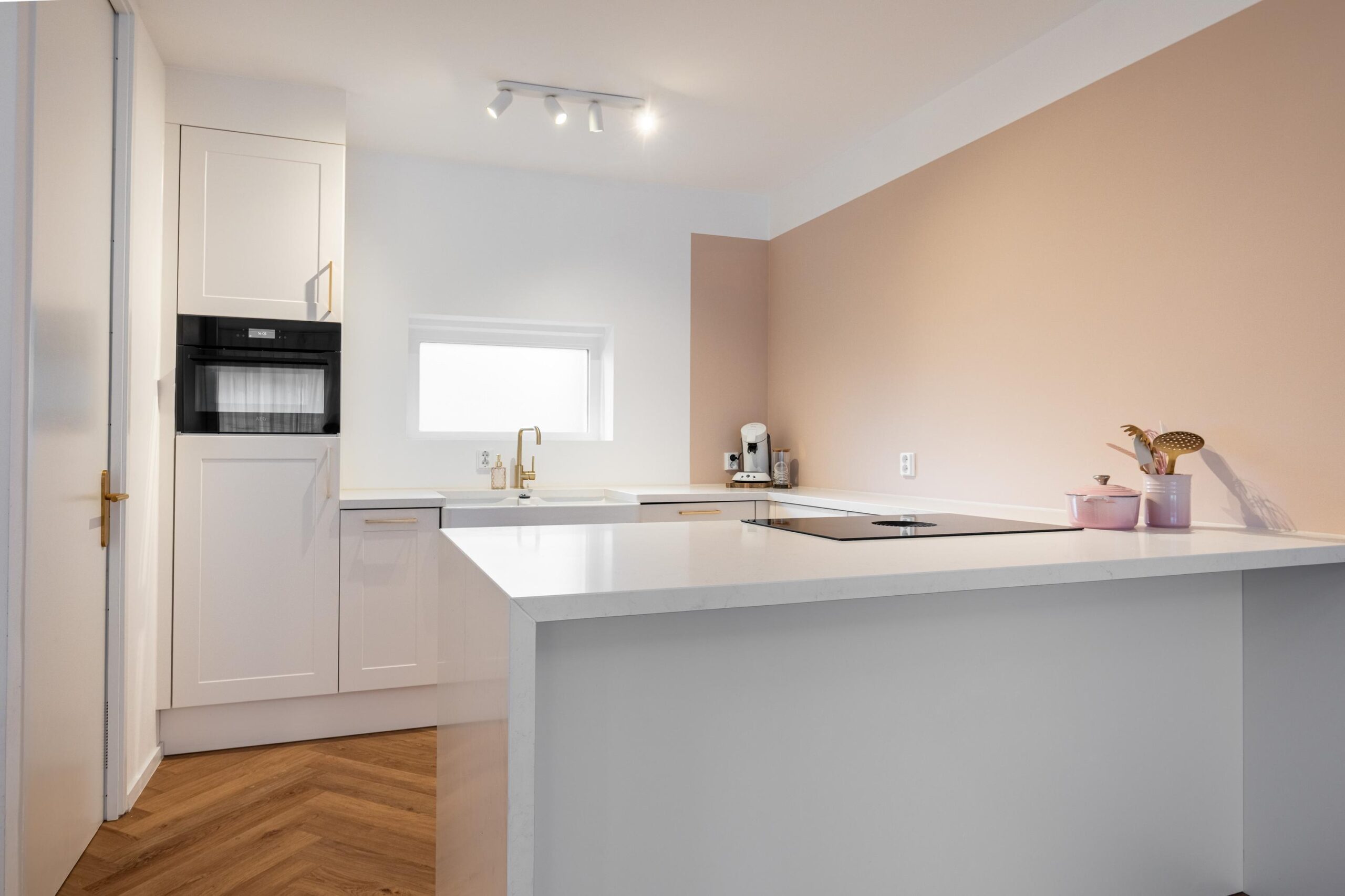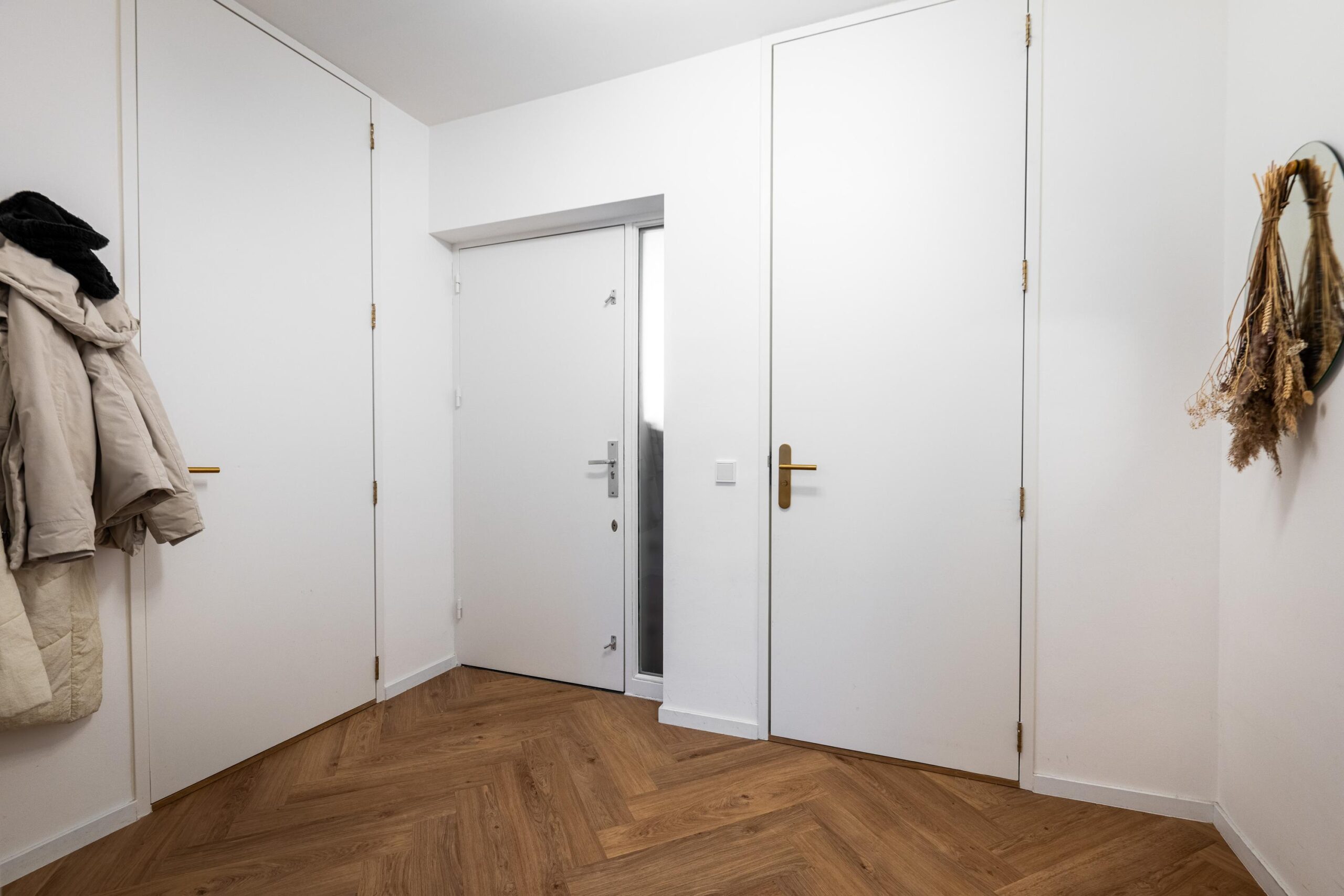 Ruime entree/hal met toegang tot alle vertrekken. De woonkamer staat in verbinding met de open keuken waardoor er een perfecte ruimte is ontstaan met meerdere mogelijkheden voor meubelopstellingen. De sfeervolle woonkamer is voorzien van een pvc-visgraatvloer en biedt middels een deur toegang naar het balkon. De perfecte keuken is opgesteld in een U-opstelling en voorzien van de navolgende apparatuur: keramische kookplaat met geïntegreerd afzuigsysteem van Bora, oven, koelkast en vaatwasser. Vanuit de keuken is de inpandige berg c.q. wasruimte te bereiken. Hier zijn de aansluitingen voor wasapparatuur aanwezig en de opstelplaats van de stadsverwarming en mechanische ventilatie.