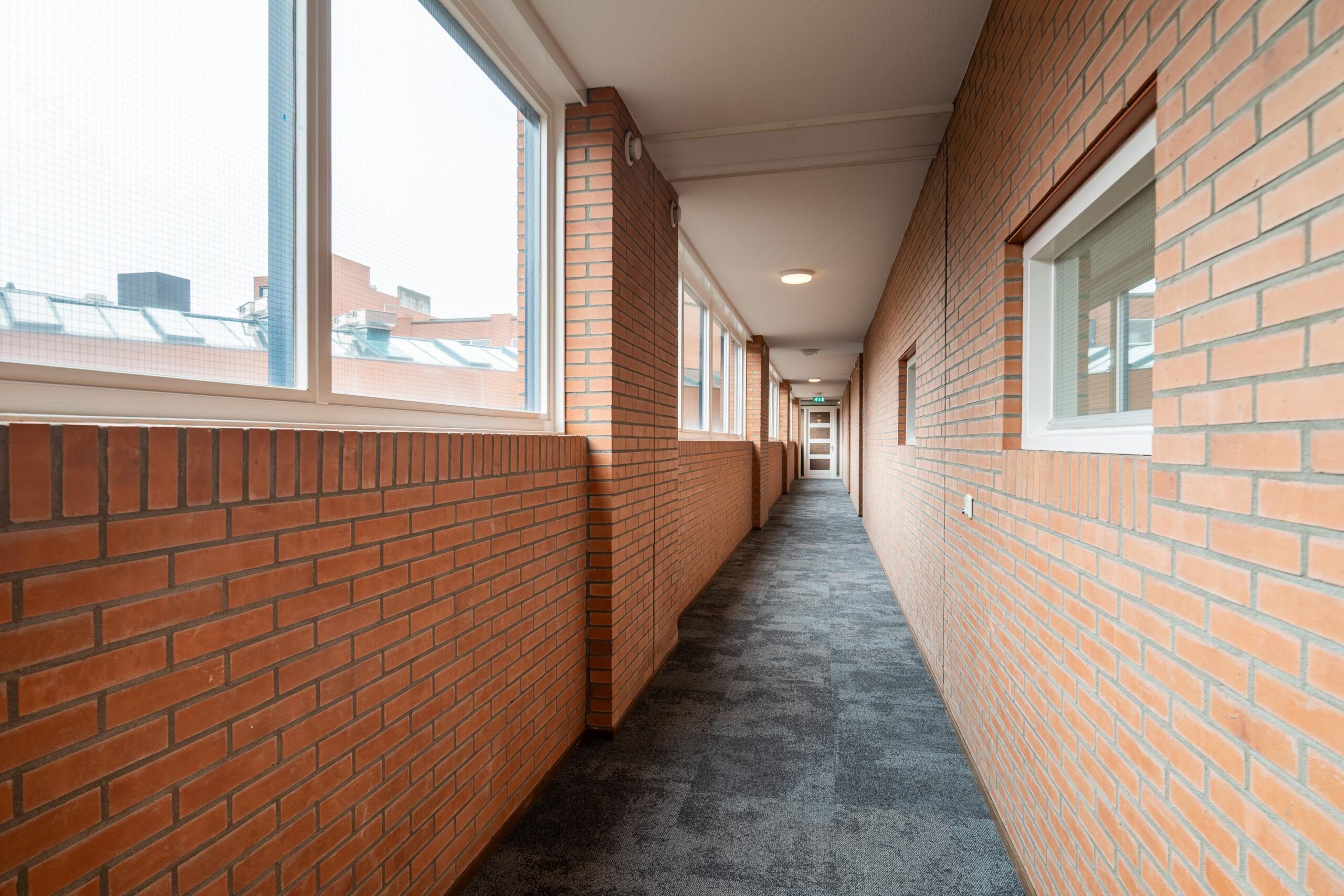Corridor alwaar de meterkast en entree van het appartement zijn gesitueerd.